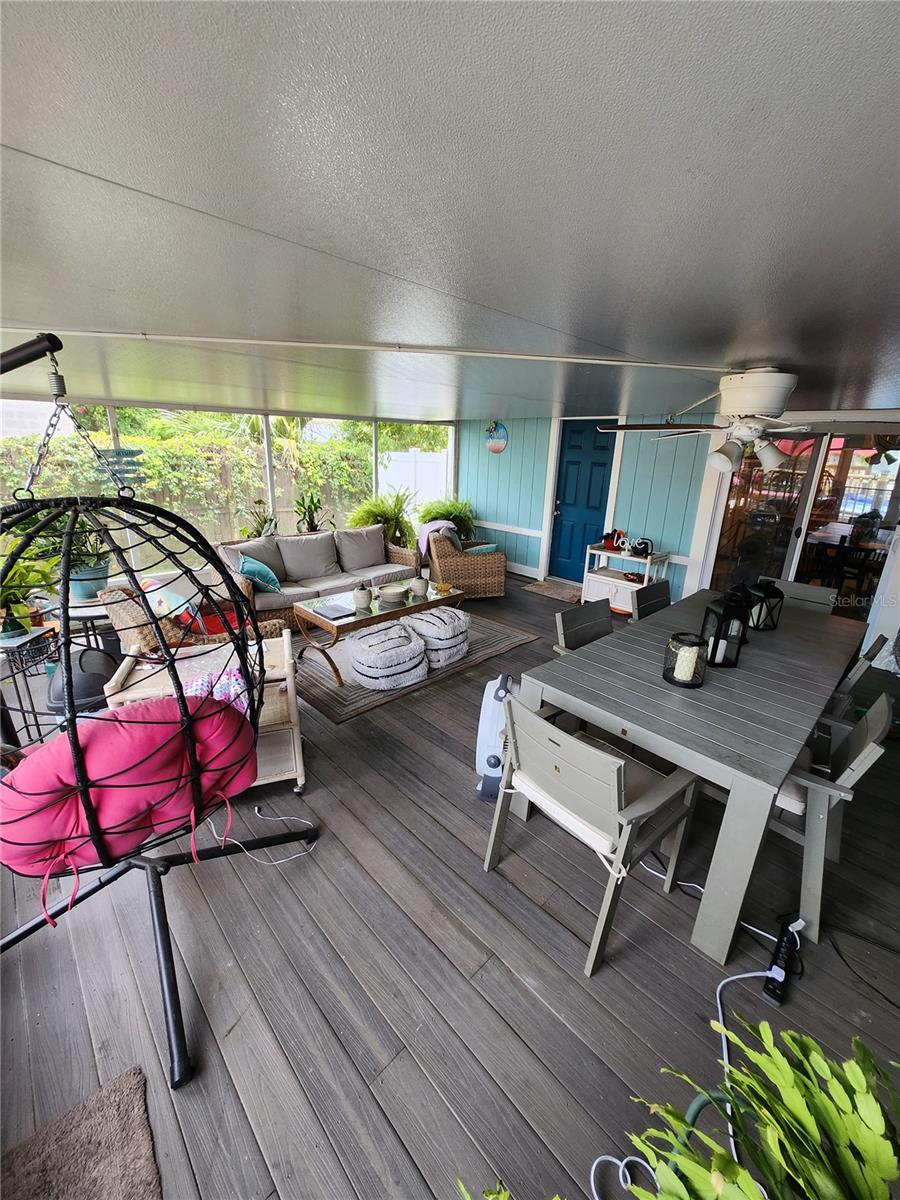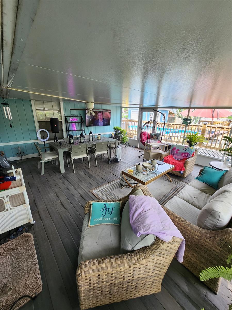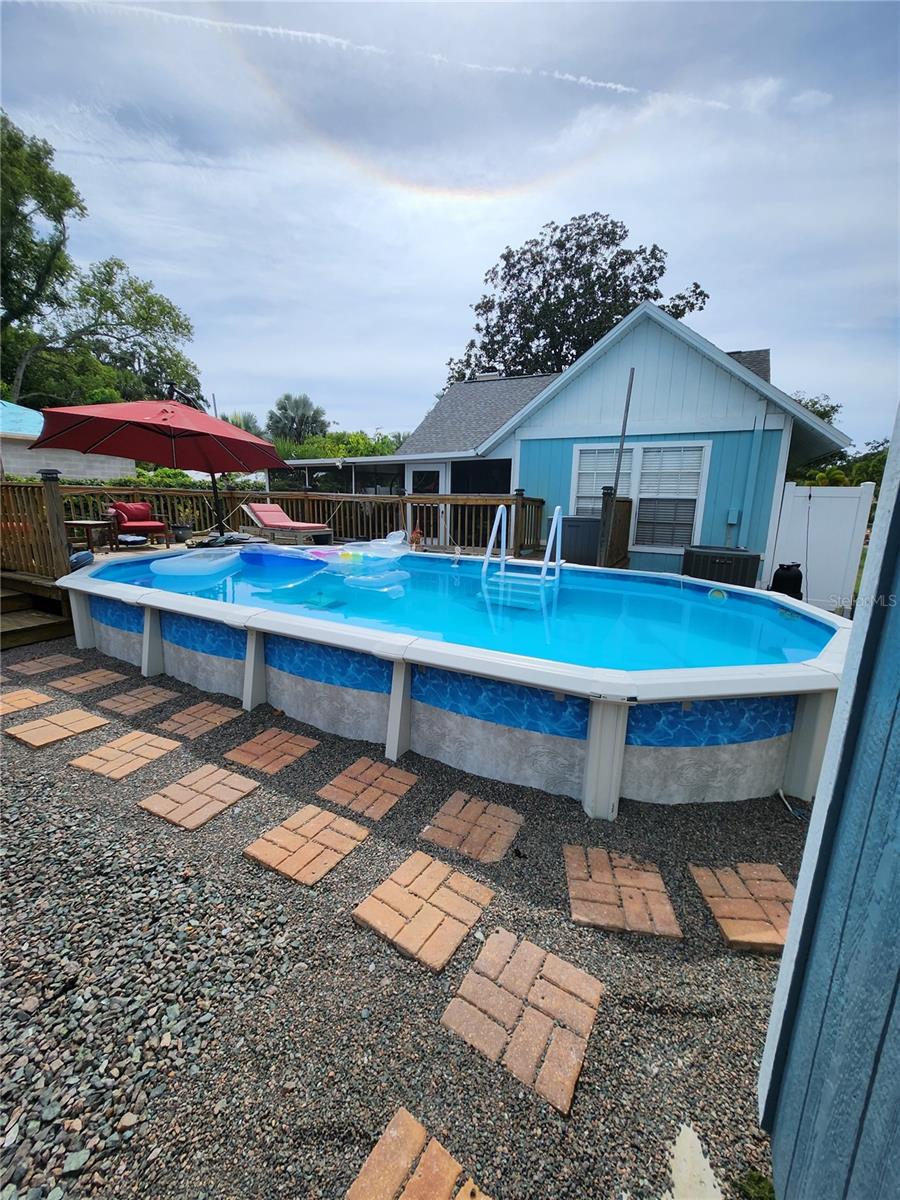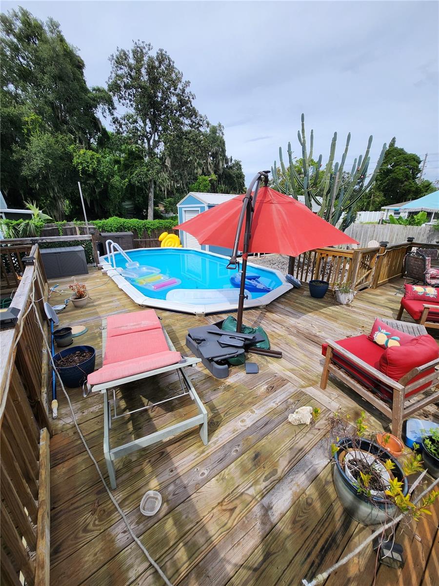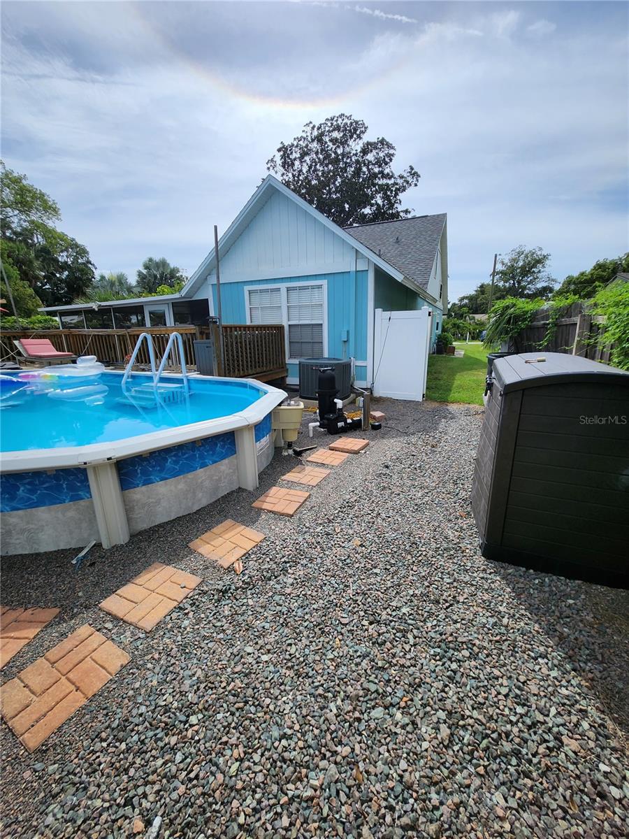 Huge Price Reduction!!!! Priced below comps! Motivated Seller! This charming 2-bedroom, 2-bath home is perfectly situated just off the Cotee River and minutes from downtown New Port Richey. The open-concept dining and kitchen area features stainless steel appliances, including a gas stove. An upgraded dual-pane all-weather slider leads to a spacious, enclosed lanai, and beyond that, a newer swimming pool surrounded by a large wood deck. The backyard is an entertainer's dream, complete with beautiful trees, a fire pit, and a striking cactus, all within a fenced area for added privacy. A newer custom shed provides ample storage and could easily be transformed into a she shed. Inside, tile floors grace the first level, and the living room boasts a cozy wood-burning fireplace. The master suite is conveniently located on the first floor and includes a recently remodeled bathroom with quartz countertops, upgraded vanities, and a large walk-in closet with shelves. The luxurious shower features floor-to-ceiling tile. Upstairs, you'll find a spacious second bedroom and a full, remodeled bathroom with granite countertops and upgraded cabinets. There's also a partially finished room that could serve as a den, study, or additional storage. The roof was replaced 1 year ago. The AC is approx. 4 yrs old w/ UV light, water tank under 2 yrs old! This home has a ring doorbell with added cameras and lights. Located just a block from the Cotee River and a half mile from the public boat ramp, this home offers both convenience and charm. With no deed restrictions, public water and sewer, and downtown New Port Richey just a short stroll away, this property is ideal for a vibrant lifestyle. The seller says her home has never flooded!