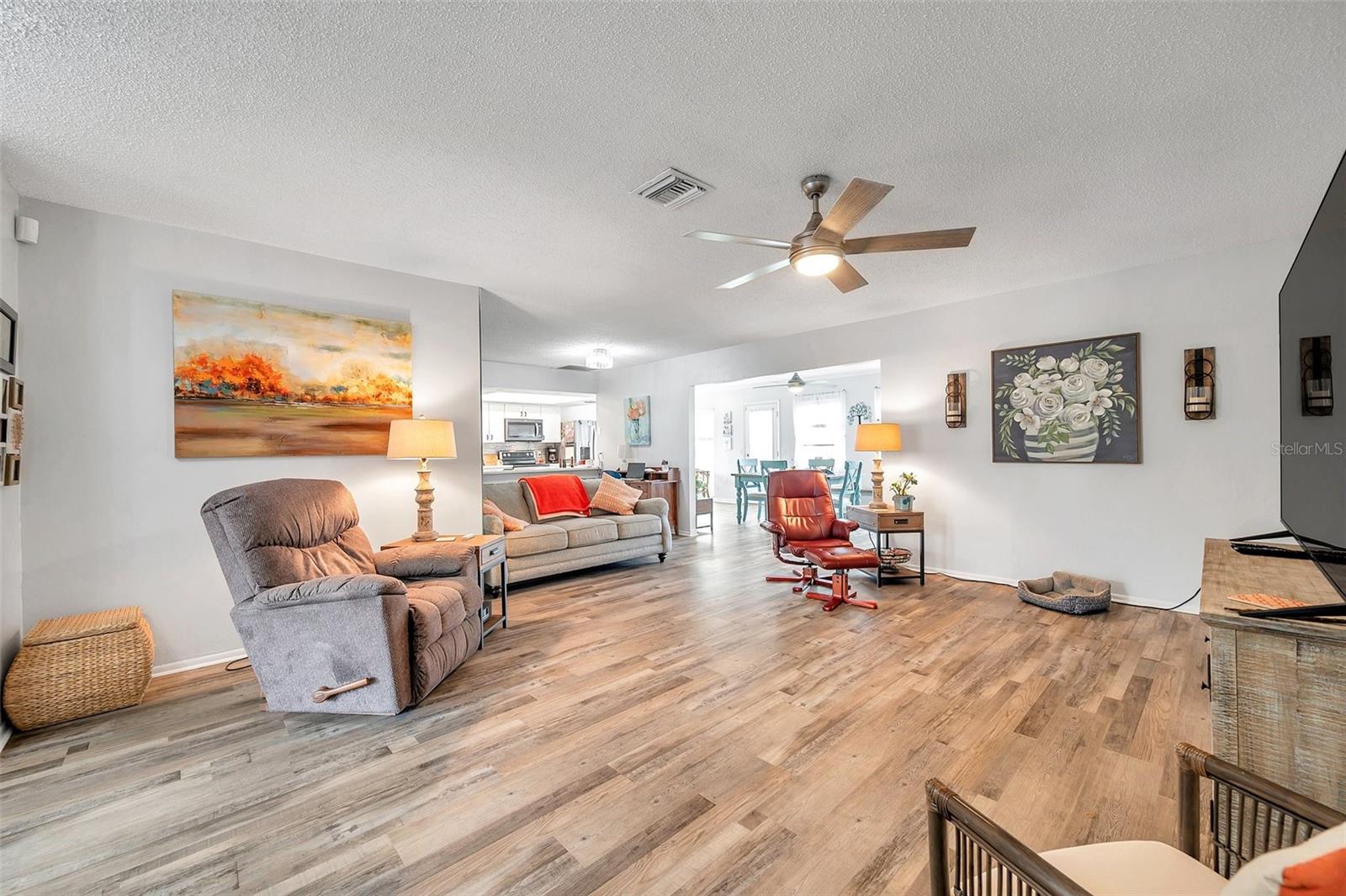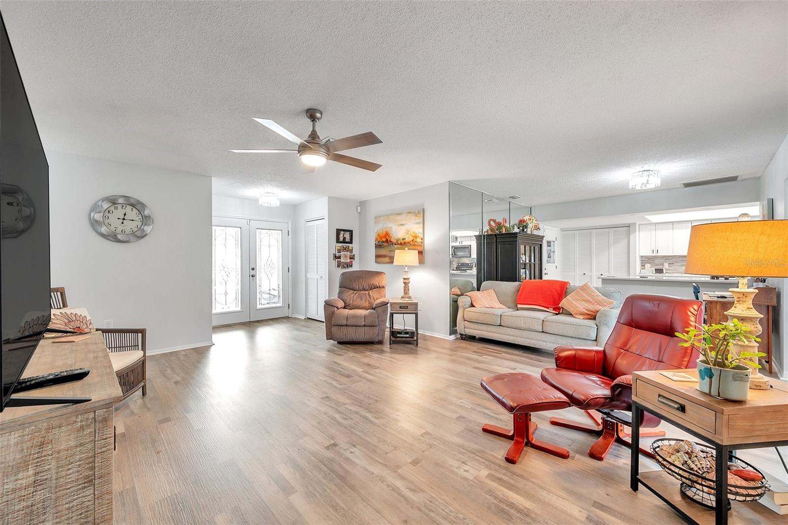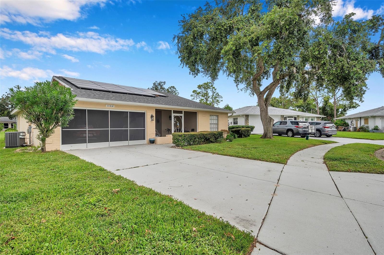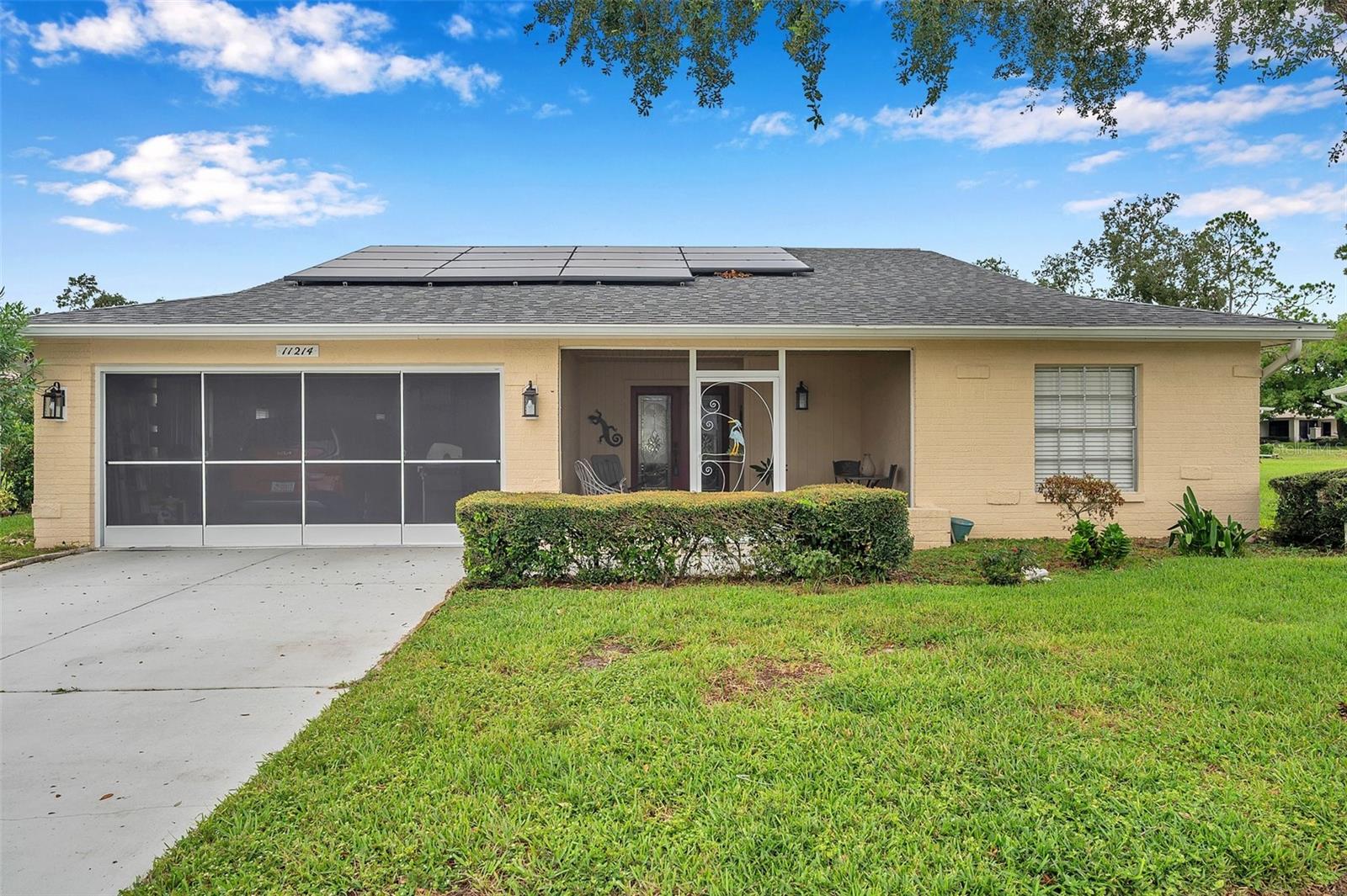 Welcome to this Updated beautiful 2 bedroom 2 bath open floorplan, screened in front porch, and garage, new flooring throughout. Two car garage. Quartz counters in kitchen and baths, new stainless appliances in kitchen, home has leased solar $117.00 monthly, can assume lease. This is a lease, not a loan so there is no balance owed, service and labor is included and all acts of God. Rated for 165 mph winds Roof installed in 2021,HVAC 2021. Timber Oaks has an active clubhouse and pool, there is a library, pool table and activities. Come make this lifestyle home!!!