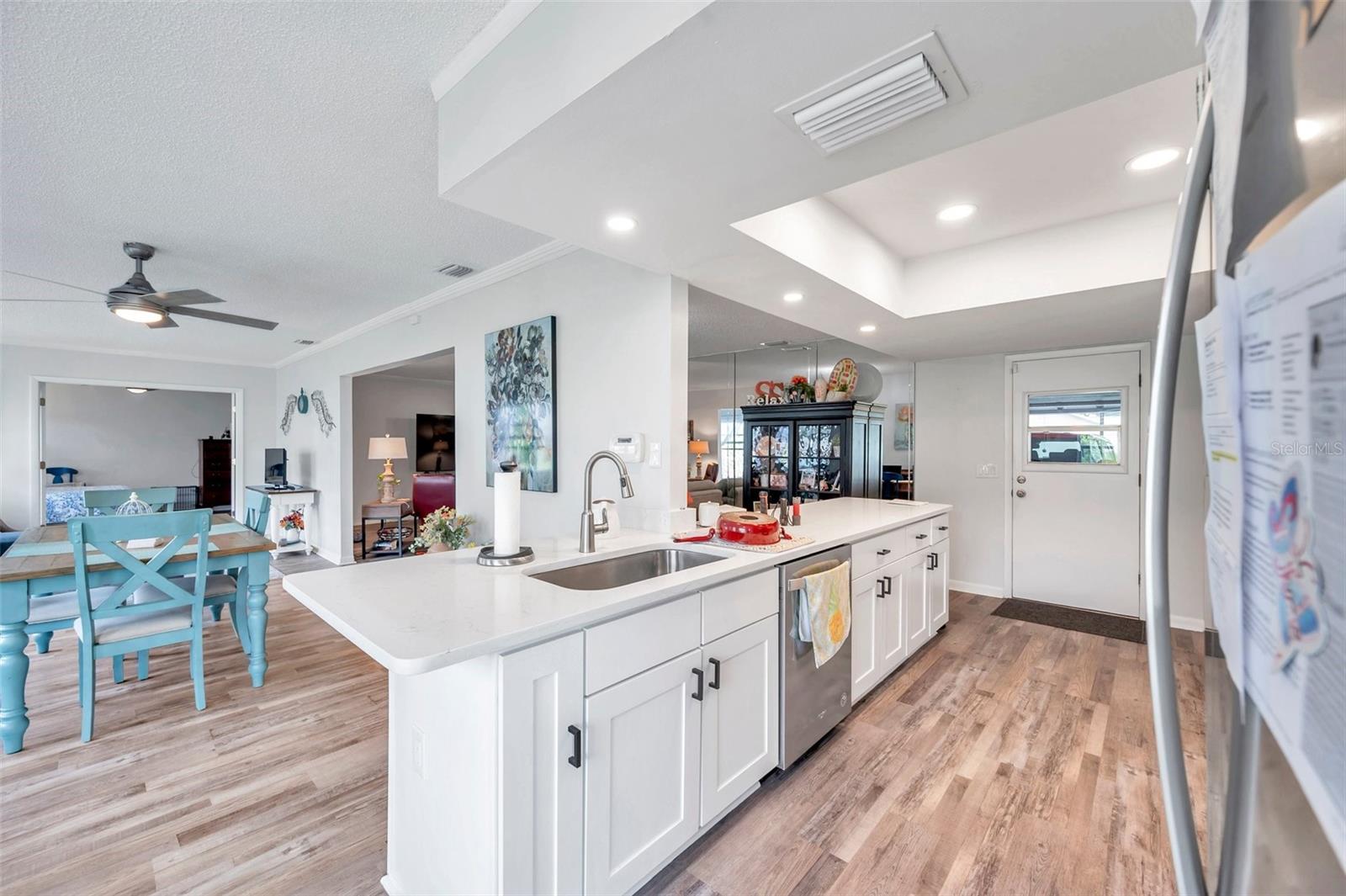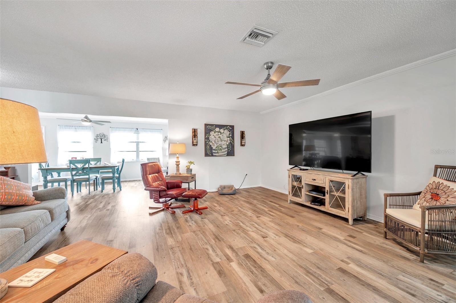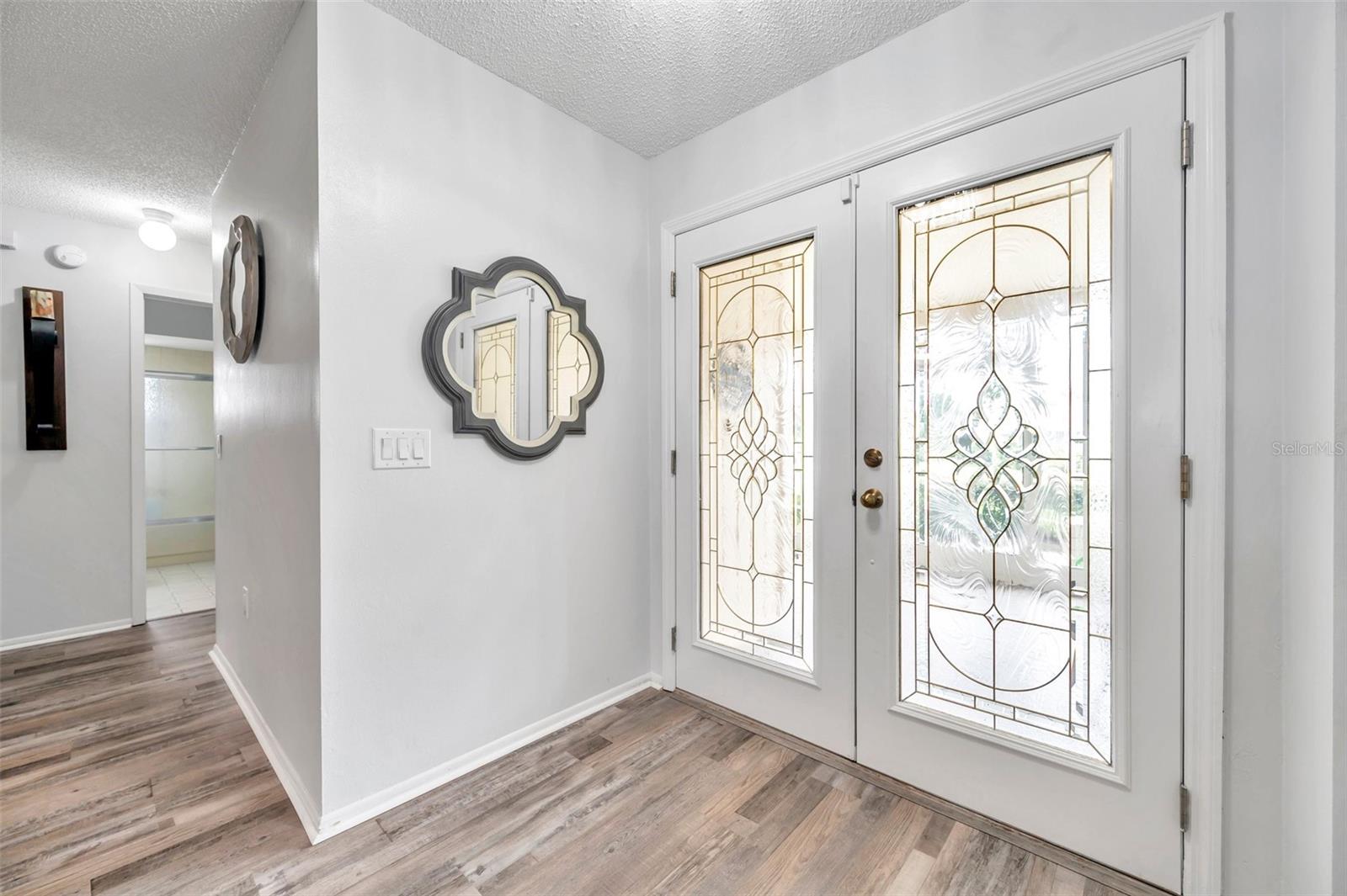 Welcome to this Updated beautiful 2 bedroom 2 bath open floorplan, screened in front porch, and garage, new flooring throughout. Two car garage. Quartz counters in kitchen and baths, new stainless appliances in kitchen, home has leased solar $117.00 monthly, can assume lease. This is a lease, not a loan so there is no balance owed, service and labor is included and all acts of God. Rated for 165 mph winds Roof installed in 2021,HVAC 2021. Timber Oaks has an active clubhouse and pool, there is a library, pool table and activities. Come make this lifestyle home!!!