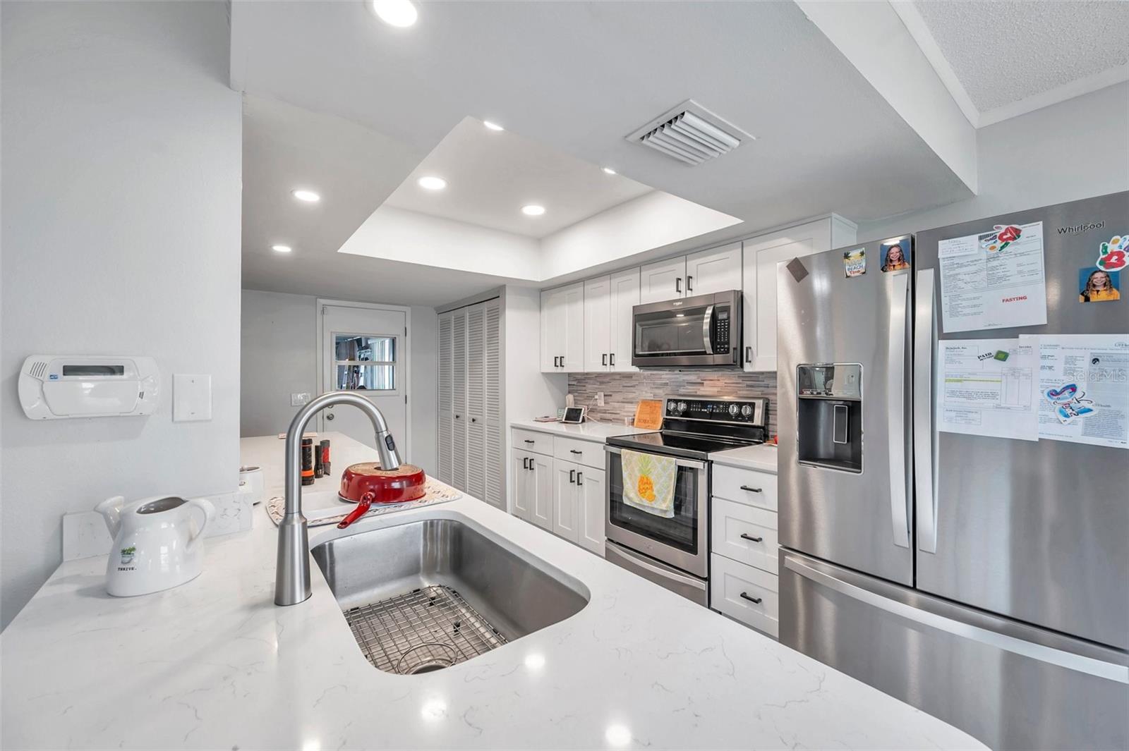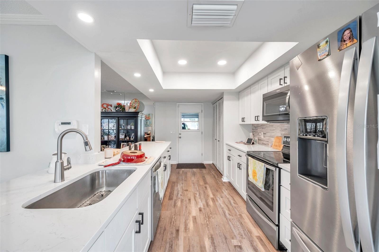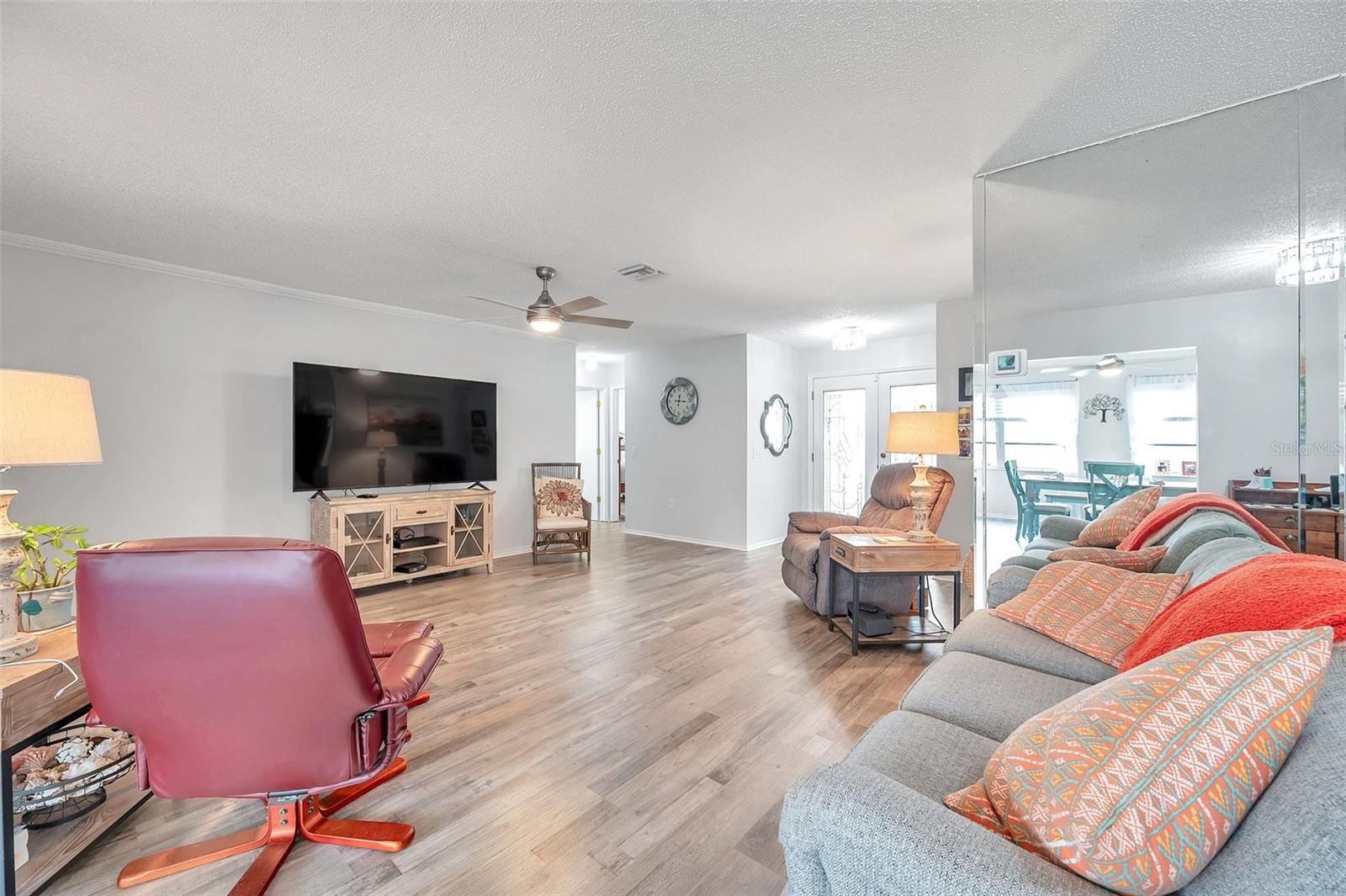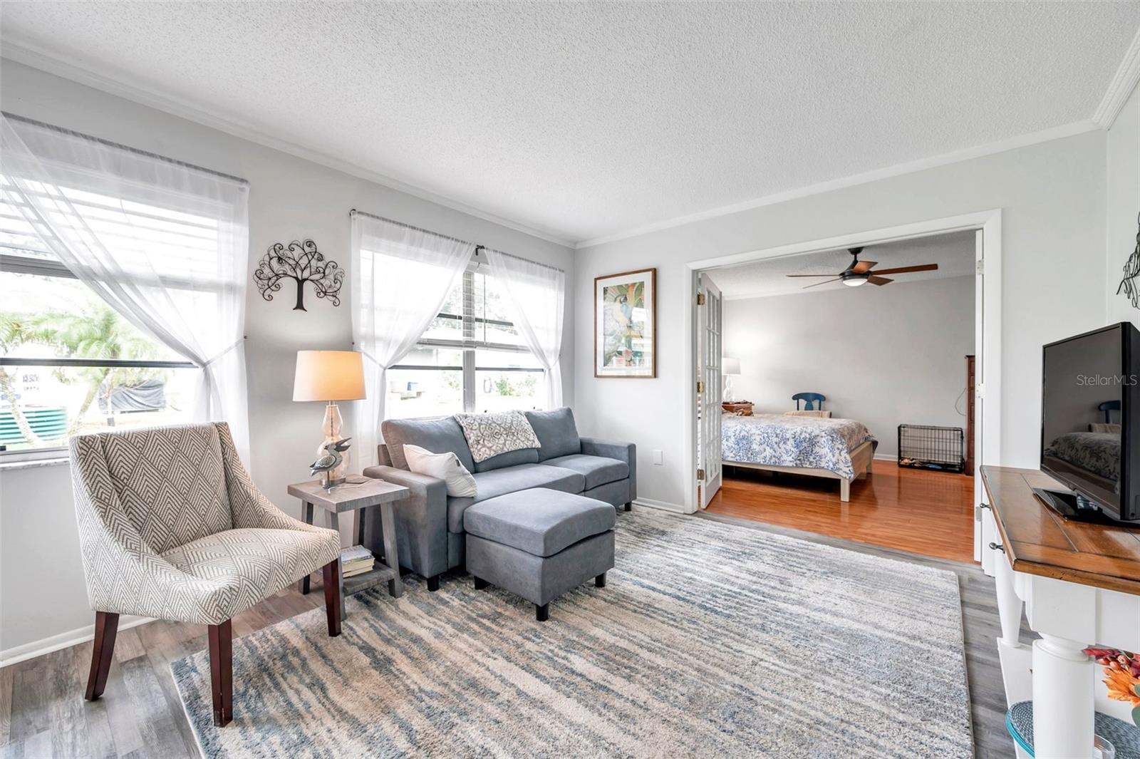 Welcome to this Updated beautiful 2 bedroom 2 bath open floorplan, screened in front porch, and garage, new flooring throughout. Two car garage. Quartz counters in kitchen and baths, new stainless appliances in kitchen, home has leased solar $117.00 monthly, can assume lease. This is a lease, not a loan so there is no balance owed, service and labor is included and all acts of God. Rated for 165 mph winds Roof installed in 2021,HVAC 2021. Timber Oaks has an active clubhouse and pool, there is a library, pool table and activities. Come make this lifestyle home!!!