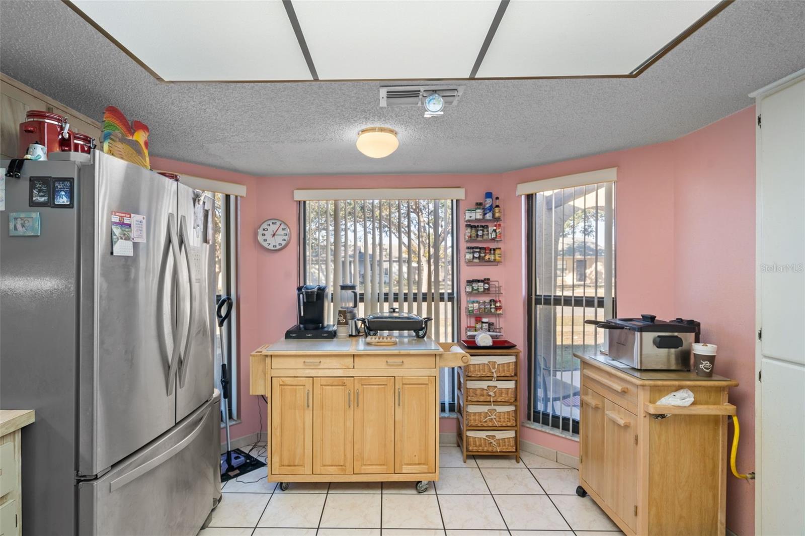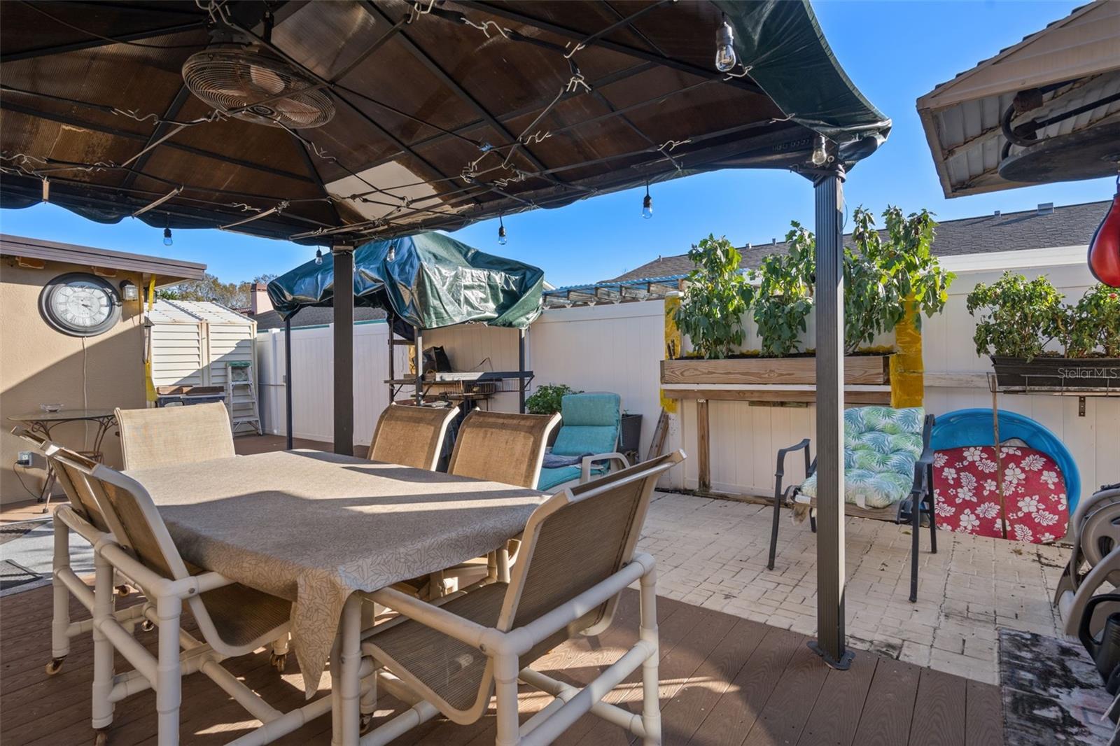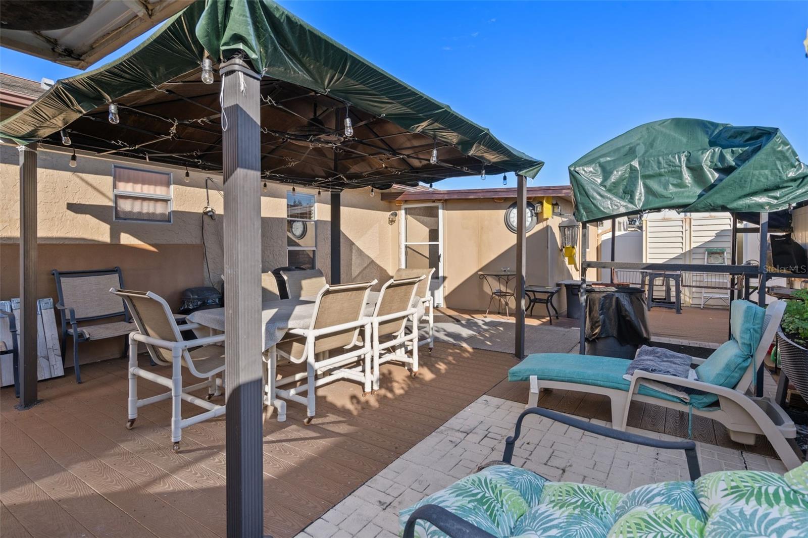 Discover the charm of this beautifully maintained two-bedroom, two-bath home with a spacious two-car garage, perfect for those seeking a move-in ready residence. With 1,647 square feet of living space, this home boasts elegant tile floors throughout, creating a seamless flow in the open layout. Upon entering, you'll find a large living room that opens to a dining area featuring custom cabinets for additional storage, plus an extra refrigerator that stays with the home. The kitchen, a chef's dream, is generously sized and enhanced by a stunning bay window that floods the space with natural light. It offers stainless steel appliances and an abundance of beautiful cabinets and ample countertop space, ideal for preparing delicious meals. You will love the Family Room Area, it’s the perfect space to watch Television and Relax after a long hard day. The Master Bedroom is a relaxing space with 2 Large Closets. The master bathroom features a lovely step-in shower, while the guest bathroom is equipped with a convenient tub/shower combo. There is a large guest bedroom with a huge walk-in closet with custom closet organizers. An incredible bonus room serves as a versatile space, currently utilized as a home office but easily convertible into a home gym or playroom, complete with a door leading to a relaxing open patio with custom made deck. Step outside to enjoy your outdoor oasis, perfect for sipping a cold beer or a glass of wine, with a dining area that includes a table and chairs under a covered gazebo that stay with the home. A designated covered grilling area is perfect for your gas grill, making entertaining easy in this amazing home. Storage is a breeze with two sheds equipped with electricity, all within a completely fenced yard featuring vinyl privacy fencing. You'll never run out of hot water thanks to the newer instant hot water heater and additional regular hot water heater. The washer and dryer are also included in the sale. The home is equipped with a whole-house water filtration system and features gutters installed all around. The roof, installed in 2010, has 30-year three-dimensional shingles, ensuring durability for years to come. Conveniently located near schools, shopping, dining, medical offices, and major highways, including US Hwy 19 and State Rd 52, this beautiful home is priced to sell quickly at $290,000. Don't miss your chance to make it yours!