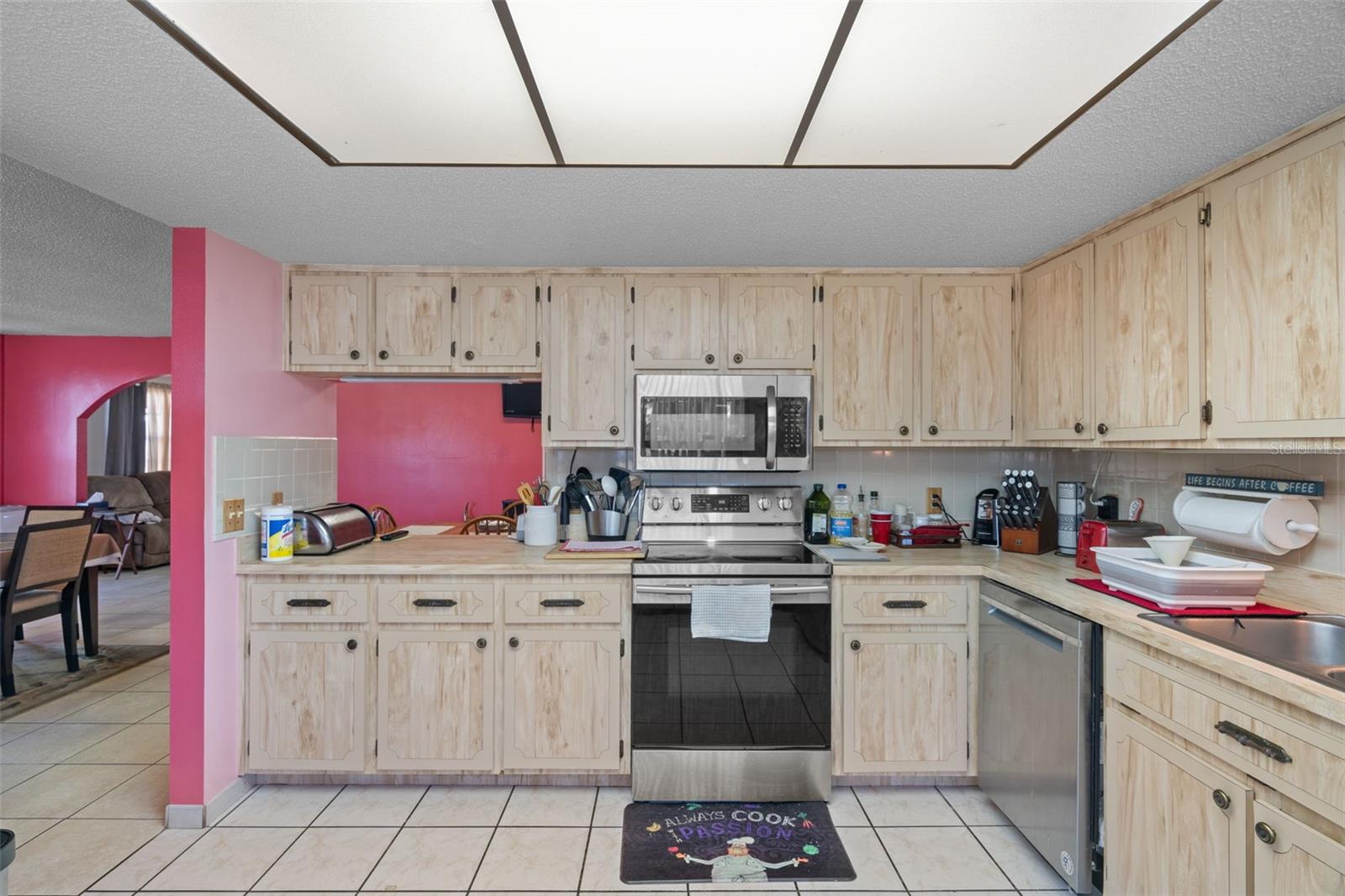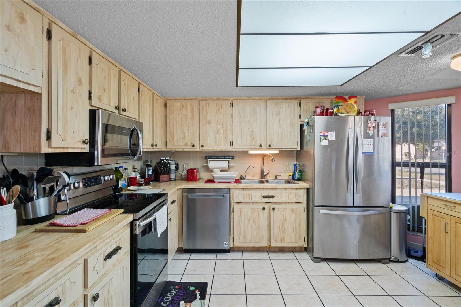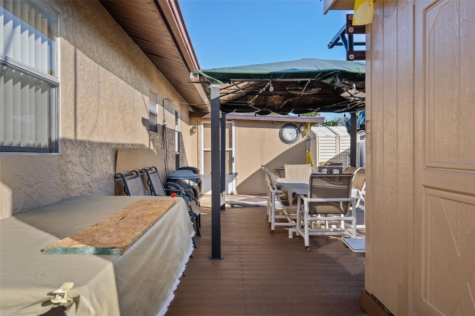 Discover the charm of this beautifully maintained two-bedroom, two-bath home with a spacious two-car garage, perfect for those seeking a move-in ready residence. With 1,647 square feet of living space, this home boasts elegant tile floors throughout, creating a seamless flow in the open layout. Upon entering, you'll find a large living room that opens to a dining area featuring custom cabinets for additional storage, plus an extra refrigerator that stays with the home. The kitchen, a chef's dream, is generously sized and enhanced by a stunning bay window that floods the space with natural light. It offers stainless steel appliances and an abundance of beautiful cabinets and ample countertop space, ideal for preparing delicious meals. You will love the Family Room Area, it’s the perfect space to watch Television and Relax after a long hard day. The Master Bedroom is a relaxing space with 2 Large Closets. The master bathroom features a lovely step-in shower, while the guest bathroom is equipped with a convenient tub/shower combo. There is a large guest bedroom with a huge walk-in closet with custom closet organizers. An incredible bonus room serves as a versatile space, currently utilized as a home office but easily convertible into a home gym or playroom, complete with a door leading to a relaxing open patio with custom made deck. Step outside to enjoy your outdoor oasis, perfect for sipping a cold beer or a glass of wine, with a dining area that includes a table and chairs under a covered gazebo that stay with the home. A designated covered grilling area is perfect for your gas grill, making entertaining easy in this amazing home. Storage is a breeze with two sheds equipped with electricity, all within a completely fenced yard featuring vinyl privacy fencing. You'll never run out of hot water thanks to the newer instant hot water heater and additional regular hot water heater. The washer and dryer are also included in the sale. The home is equipped with a whole-house water filtration system and features gutters installed all around. The roof, installed in 2010, has 30-year three-dimensional shingles, ensuring durability for years to come. Conveniently located near schools, shopping, dining, medical offices, and major highways, including US Hwy 19 and State Rd 52, this beautiful home is priced to sell quickly at $290,000. Don't miss your chance to make it yours!