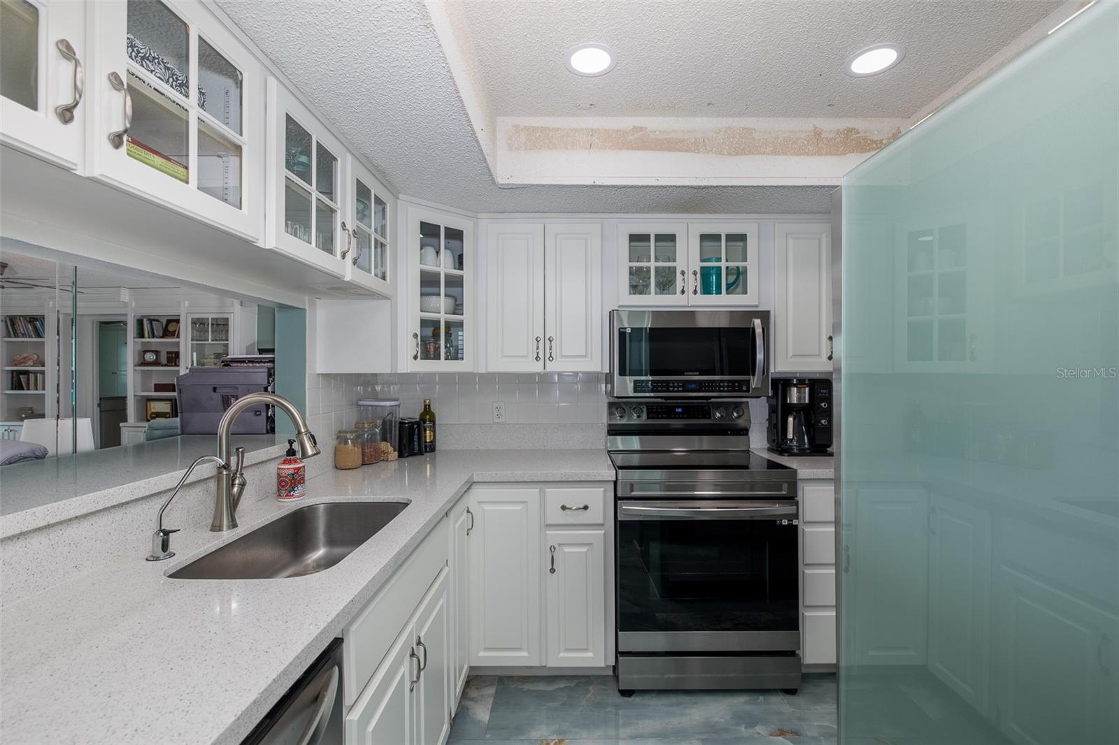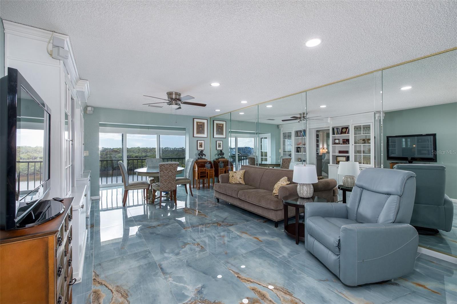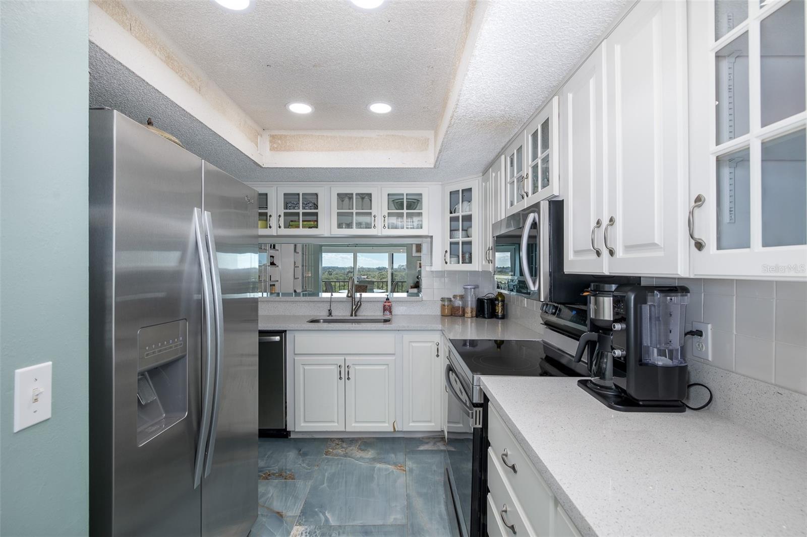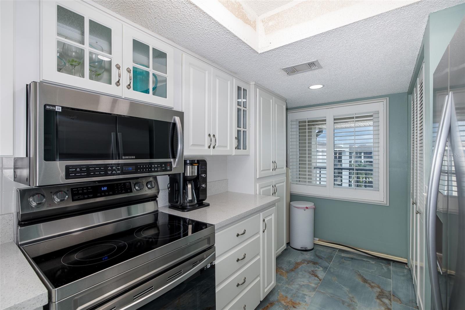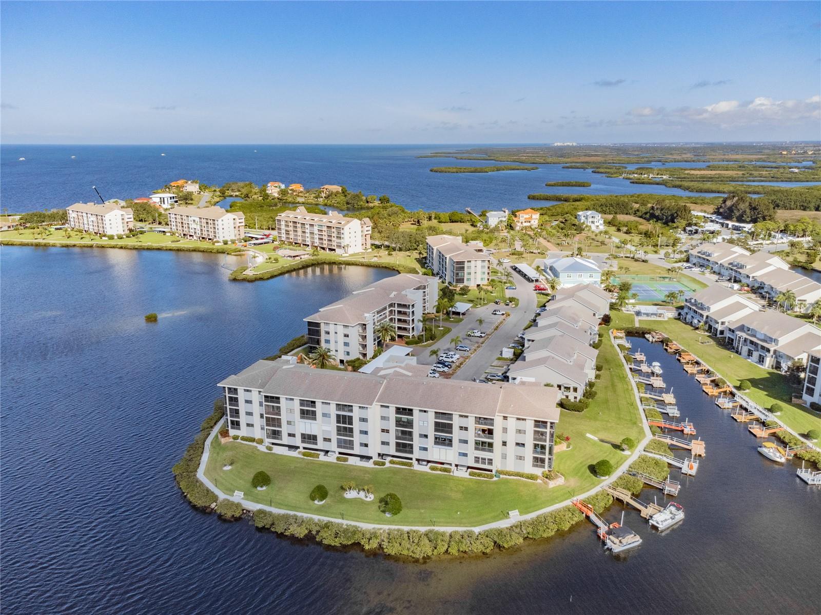 Million Dollar Penthouse View of the Gulf with Southern exposure. Take in the sunrise and sunset from the triple slider impact new windows. 2 Bedroom 2 bath Condo with New Air condition,Impact Windows,Beautiful Ceramic Tile,Samsung Stove,Lighting,Total Renovation on the Primary Bath,Jacuzzi Tub in the guest bathroom. Fresh Paint and New Double Water Filter. Beautiful Custom Cabinets with Quarts Countertops in the kitchen. Custom Cabinets in living room and Master bedroom. This Condo has many upgrades. Washer and dryer positioned in kitchen with storage closet. This condo is close to the pool, tennis courts and the clubhouse. Designated Garage parking space along with storage. Great access to Tampa by the Ridge Road Extension. Restaurants, shopping boating, parks close by. Storage and parking area designated in covered garage.
