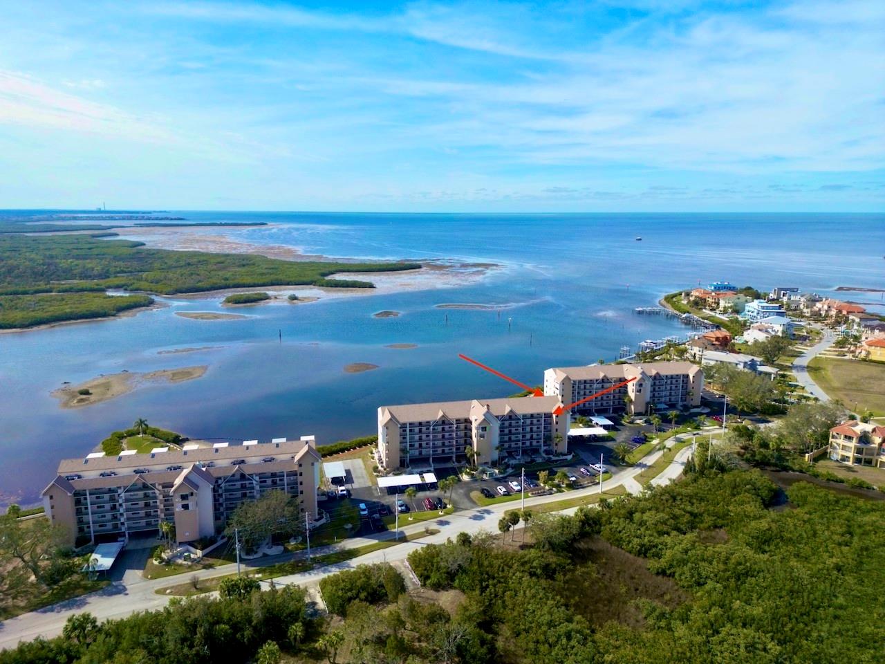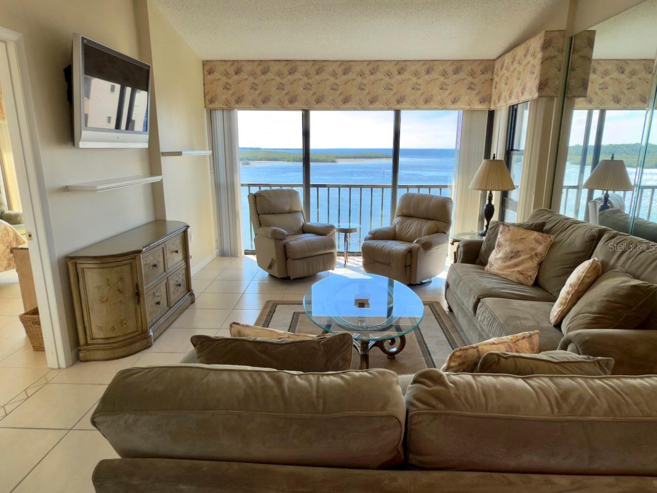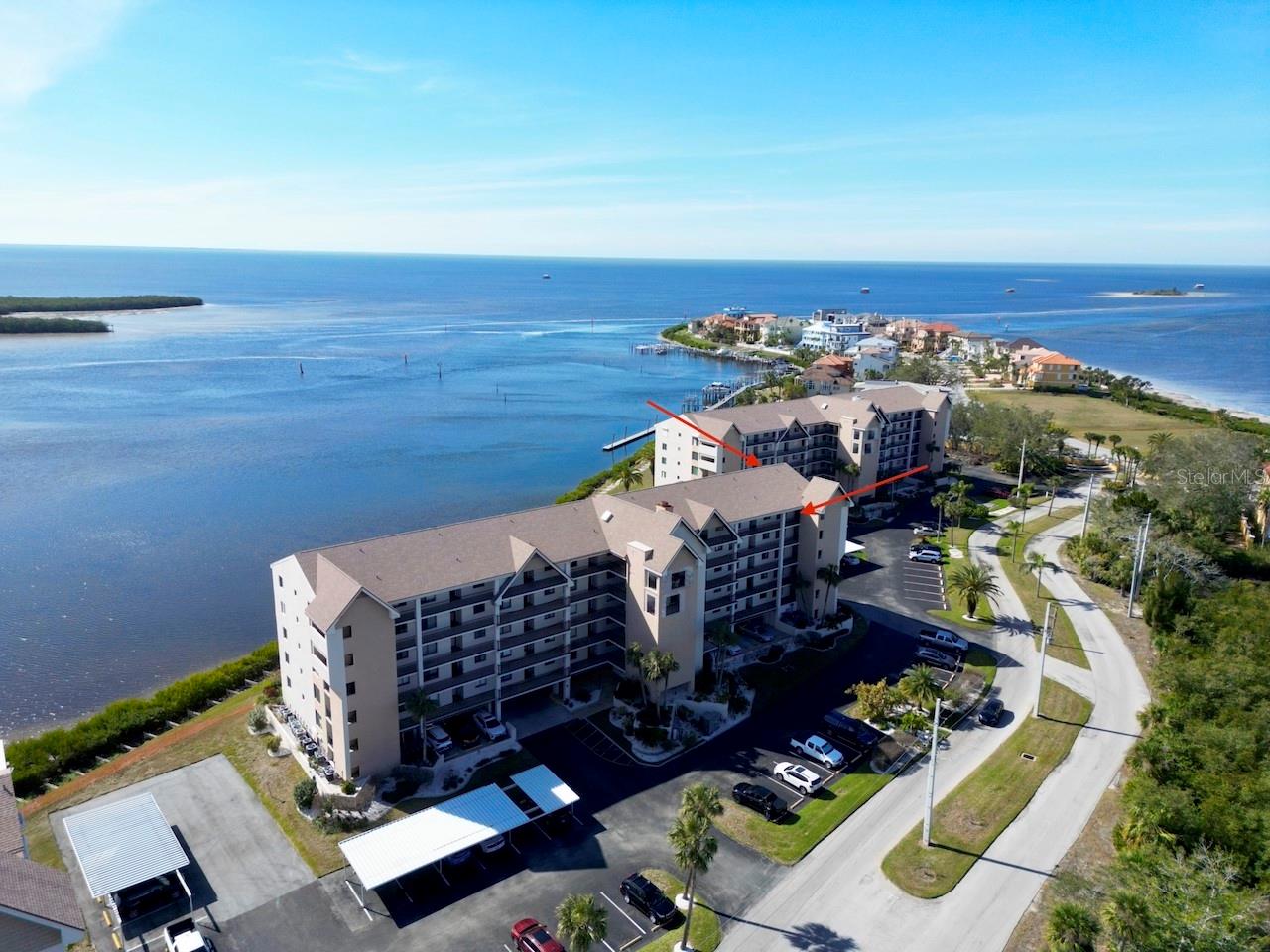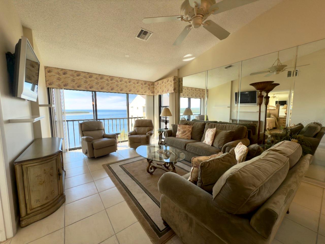Nestled in the beautiful Sand Pebble gated community, this rare top-5th floor, Gulf-front corner unit condo offers breathtaking water views from every room. Priced to sell and fully furnished, this move-in-ready home includes all furniture and contents, making your transition effortless. With vaulted ceilings, a skylight, and a bright, airy ambiance, this condo is a showstopper. The updated interior boasts tile flooring throughout, while the updated kitchen features granite countertops, new solid-wood cabinets, stainless steel appliances, a breakfast bar, and a built-in desk. A convenient laundry closet with a stackable washer and dryer adds practicality. The open-concept dining and living area is perfect for entertaining and showcases stunning Gulf views. The enclosed lanai expands your living space, offering sliding doors to enjoy refreshing Gulf breezes. Designed with the split-bedroom layout, it includes a luxurious primary suite with captivating waterfront views, a walk-in closet with custom shelving and an ironing station, and an updated en-suite bathroom. Both bathrooms have been tastefully renovated with modern tile and vanities. This condo has newer systems throughout, including the roof (2022), AC (2022), water softener, and tankless water heater. Impact windows provide added peace of mind, and the unit comes with a reserved parking space and storage closet, along with elevator access for convenience. The Sand Pebble gated community offers a host of amenities; a pool, clubhouse, fitness center, putting green, library, tennis courts, private beach, fishing dock, and a community boat ramp. Condo fees cover water, sewer, trash, cable, internet, exterior maintenance, landscaping, and building insurance. With no age restrictions and a flexible 3-month rental policy, this condo is perfect for year-round living or as an investment property. Milestone inspections have been completed and assessments will be fully paid prior to closing. Don’t miss the opportunity to own this extraordinary Gulf-front retreat. Schedule your private showing today and explore the home virtually with the 3D tour!