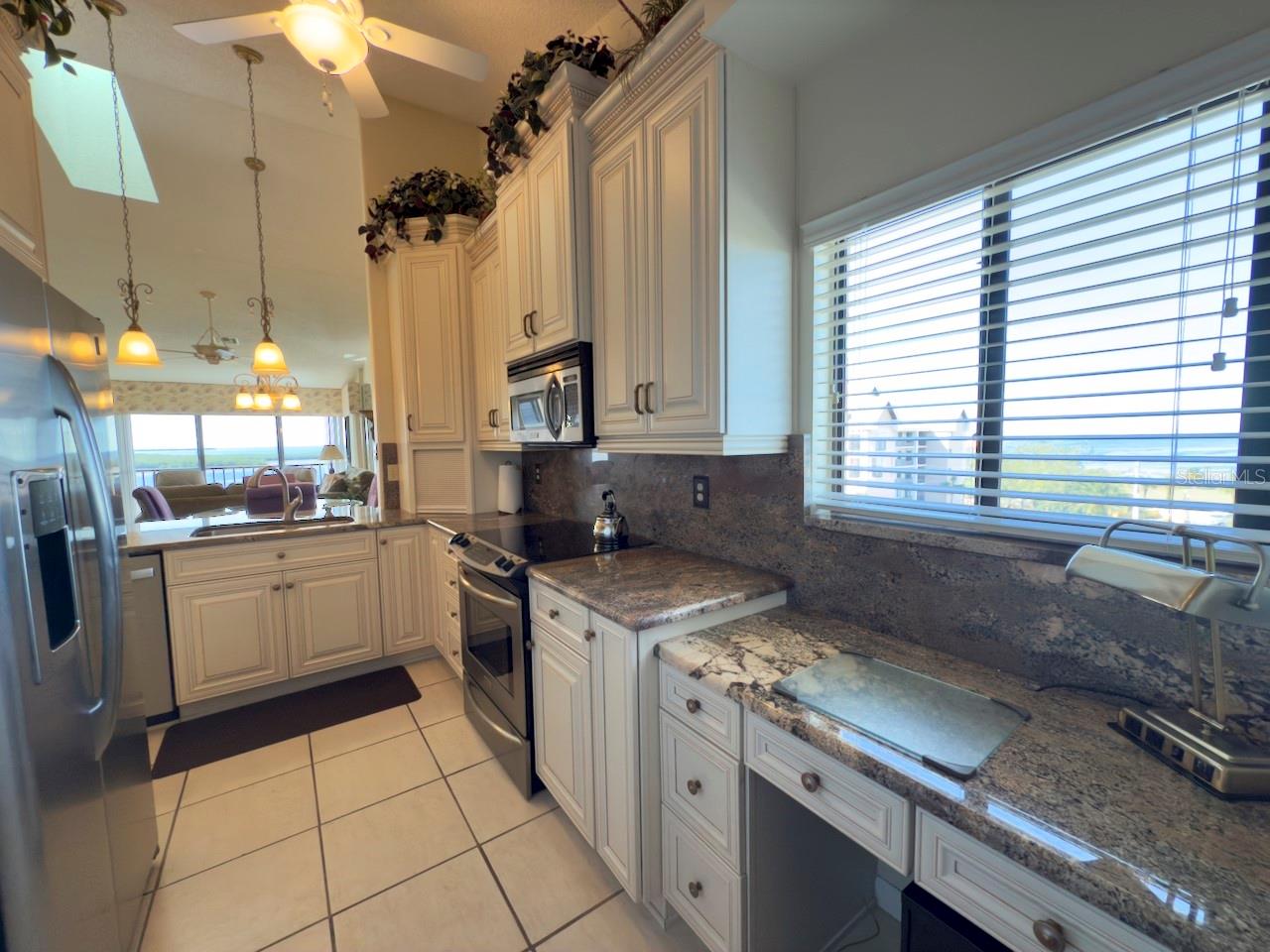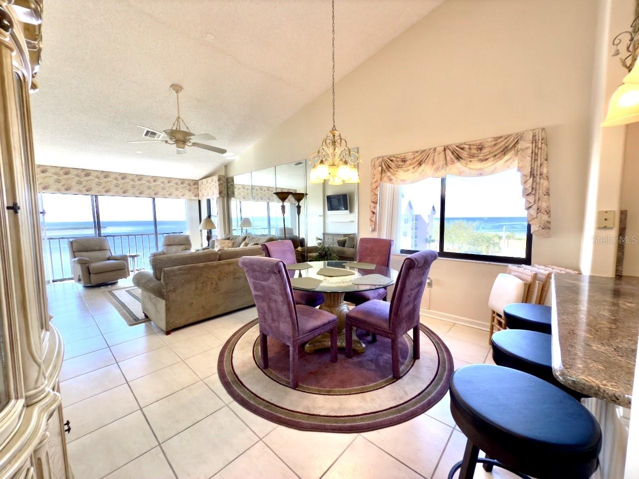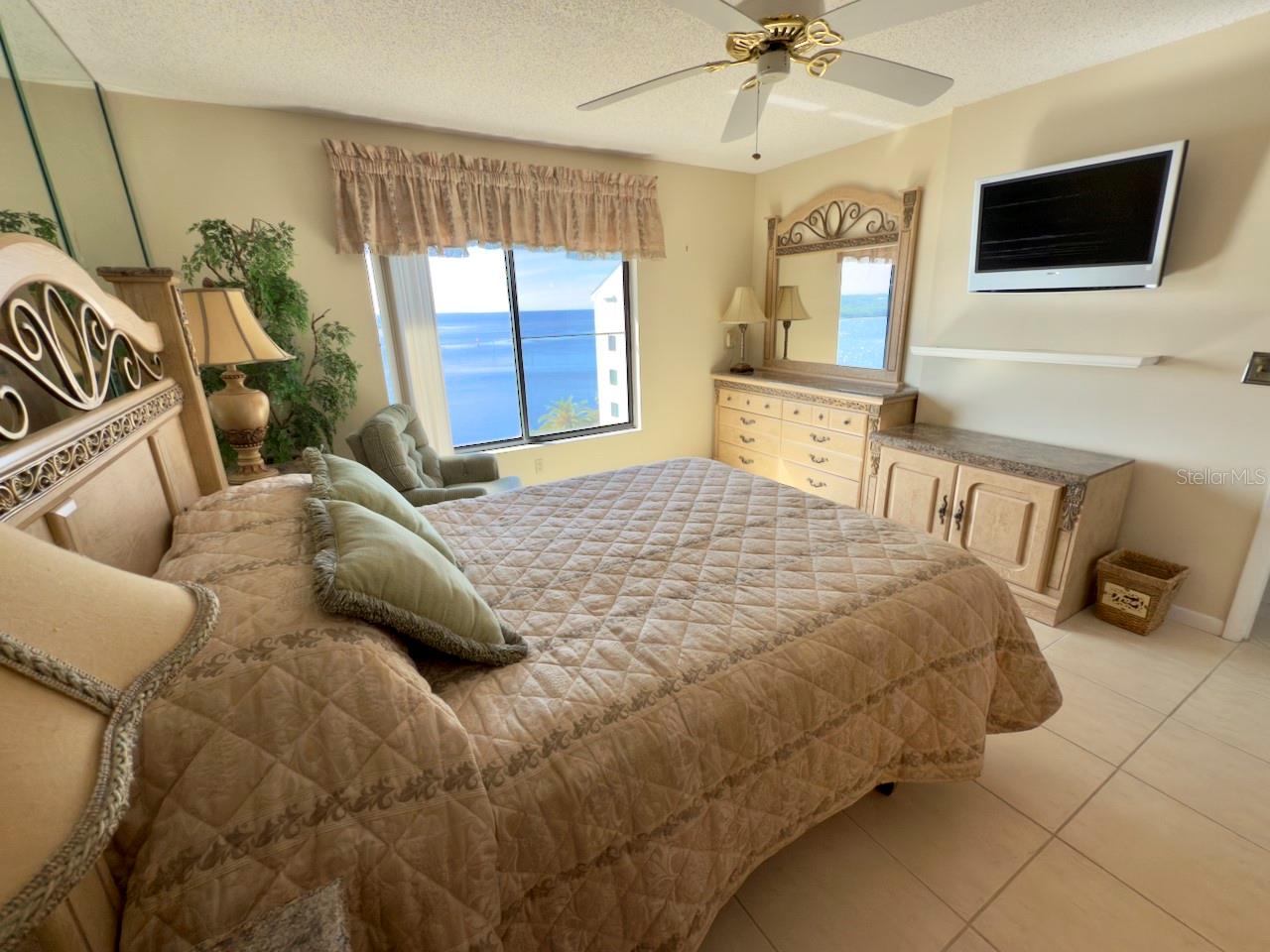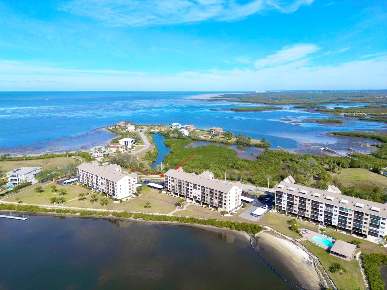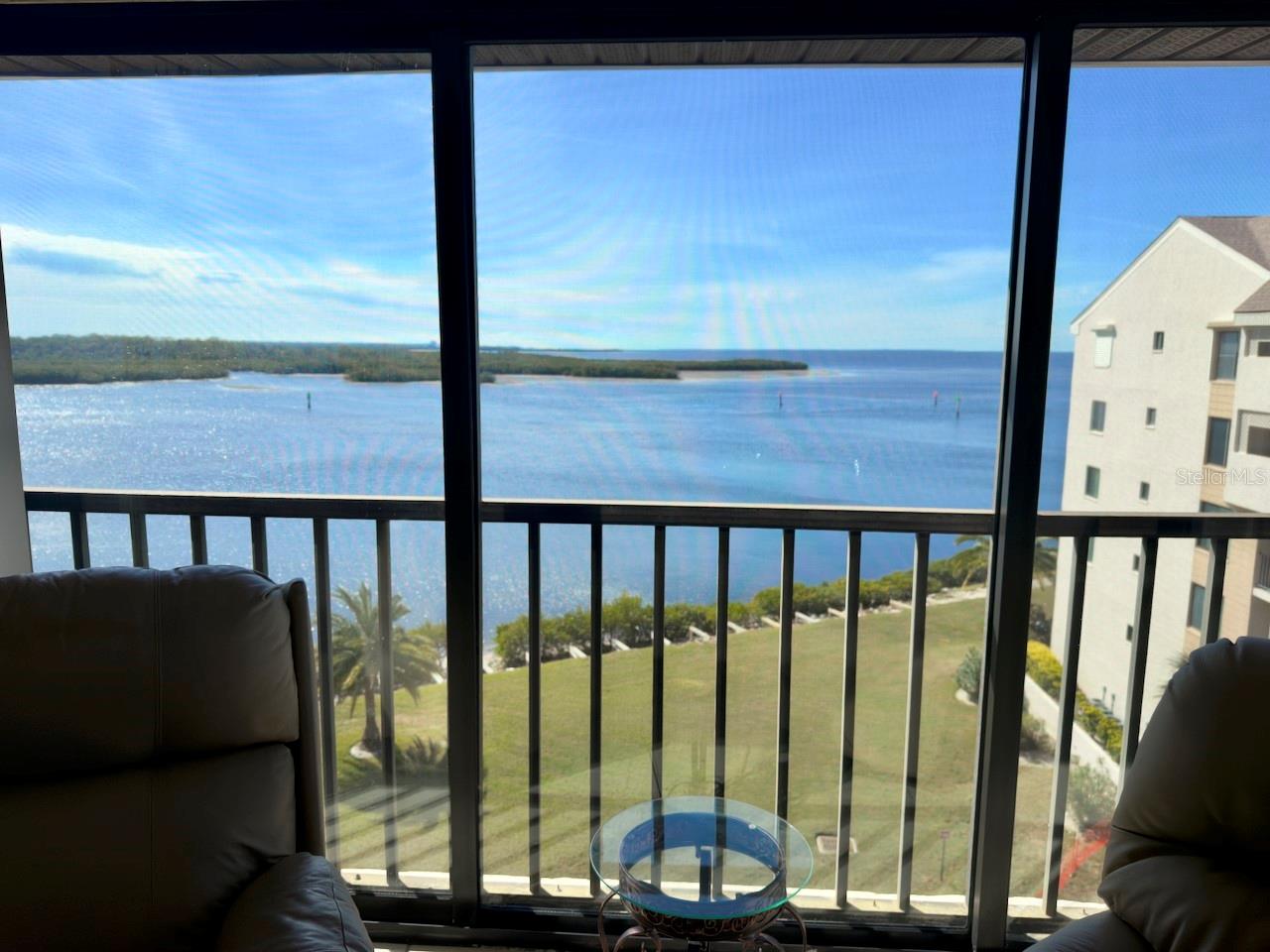 Nestled in the beautiful Sand Pebble gated community, this rare top-5th floor, Gulf-front corner unit condo offers breathtaking water views from every room. Priced to sell and fully furnished, this move-in-ready home includes all furniture and contents, making your transition effortless. With vaulted ceilings, a skylight, and a bright, airy ambiance, this condo is a showstopper. The updated interior boasts tile flooring throughout, while the updated kitchen features granite countertops, new solid-wood cabinets, stainless steel appliances, a breakfast bar, and a built-in desk. A convenient laundry closet with a stackable washer and dryer adds practicality. The open-concept dining and living area is perfect for entertaining and showcases stunning Gulf views. The enclosed lanai expands your living space, offering sliding doors to enjoy refreshing Gulf breezes. Designed with the split-bedroom layout, it includes a luxurious primary suite with captivating waterfront views, a walk-in closet with custom shelving and an ironing station, and an updated en-suite bathroom. Both bathrooms have been tastefully renovated with modern tile and vanities. This condo has newer systems throughout, including the roof (2022), AC (2022), water softener, and tankless water heater. Impact windows provide added peace of mind, and the unit comes with a reserved parking space and storage closet, along with elevator access for convenience. The Sand Pebble gated community offers a host of amenities; a pool, clubhouse, fitness center, putting green, library, tennis courts, private beach, fishing dock, and a community boat ramp. Condo fees cover water, sewer, trash, cable, internet, exterior maintenance, landscaping, and building insurance. With no age restrictions and a flexible 3-month rental policy, this condo is perfect for year-round living or as an investment property. Milestone inspections have been completed and assessments will be fully paid prior to closing. Don’t miss the opportunity to own this extraordinary Gulf-front retreat. Schedule your private showing today and explore the home virtually with the 3D tour!