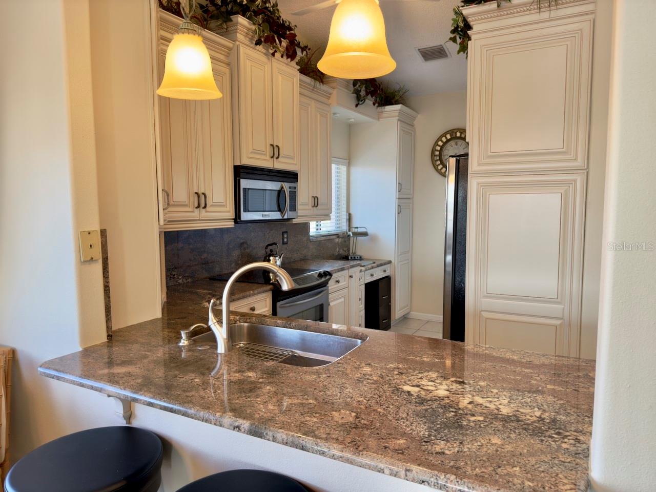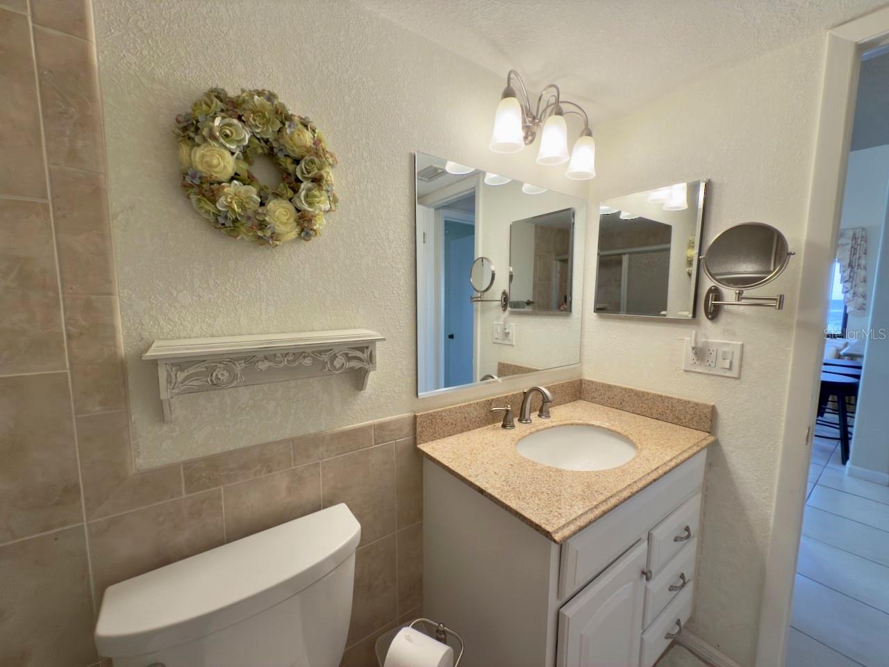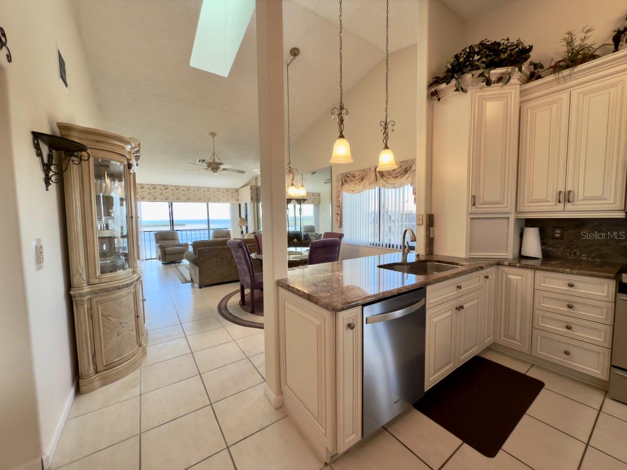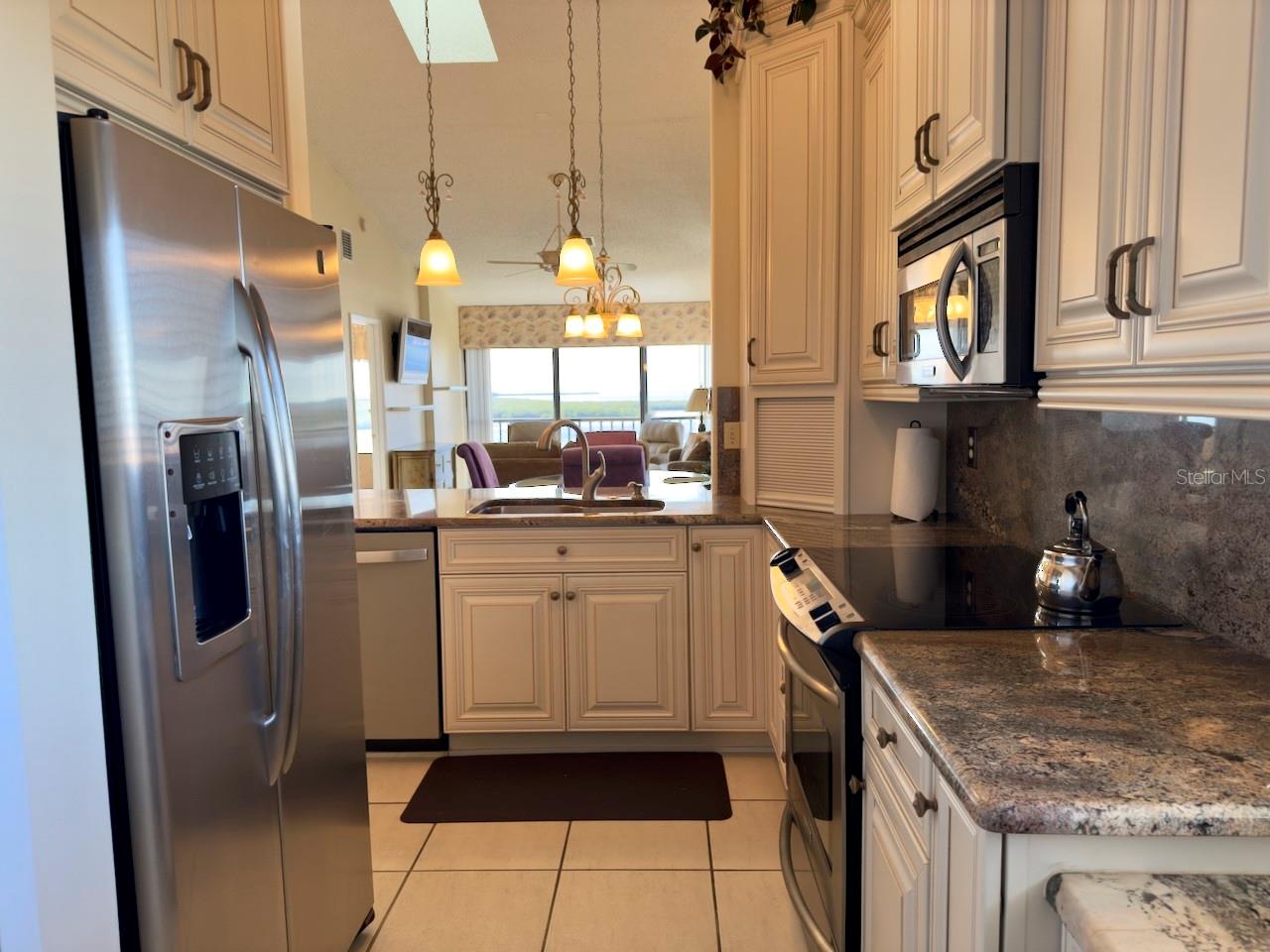 Nestled in the beautiful Sand Pebble gated community, this rare top-5th floor, Gulf-front corner unit condo offers breathtaking water views from every room. Priced to sell and fully furnished, this move-in-ready home includes all furniture and contents, making your transition effortless. With vaulted ceilings, a skylight, and a bright, airy ambiance, this condo is a showstopper. The updated interior boasts tile flooring throughout, while the updated kitchen features granite countertops, new solid-wood cabinets, stainless steel appliances, a breakfast bar, and a built-in desk. A convenient laundry closet with a stackable washer and dryer adds practicality. The open-concept dining and living area is perfect for entertaining and showcases stunning Gulf views. The enclosed lanai expands your living space, offering sliding doors to enjoy refreshing Gulf breezes. Designed with the split-bedroom layout, it includes a luxurious primary suite with captivating waterfront views, a walk-in closet with custom shelving and an ironing station, and an updated en-suite bathroom. Both bathrooms have been tastefully renovated with modern tile and vanities. This condo has newer systems throughout, including the roof (2022), AC (2022), water softener, and tankless water heater. Impact windows provide added peace of mind, and the unit comes with a reserved parking space and storage closet, along with elevator access for convenience. The Sand Pebble gated community offers a host of amenities; a pool, clubhouse, fitness center, putting green, library, tennis courts, private beach, fishing dock, and a community boat ramp. Condo fees cover water, sewer, trash, cable, internet, exterior maintenance, landscaping, and building insurance. With no age restrictions and a flexible 3-month rental policy, this condo is perfect for year-round living or as an investment property. Milestone inspections have been completed and assessments will be fully paid prior to closing. Don’t miss the opportunity to own this extraordinary Gulf-front retreat. Schedule your private showing today and explore the home virtually with the 3D tour!