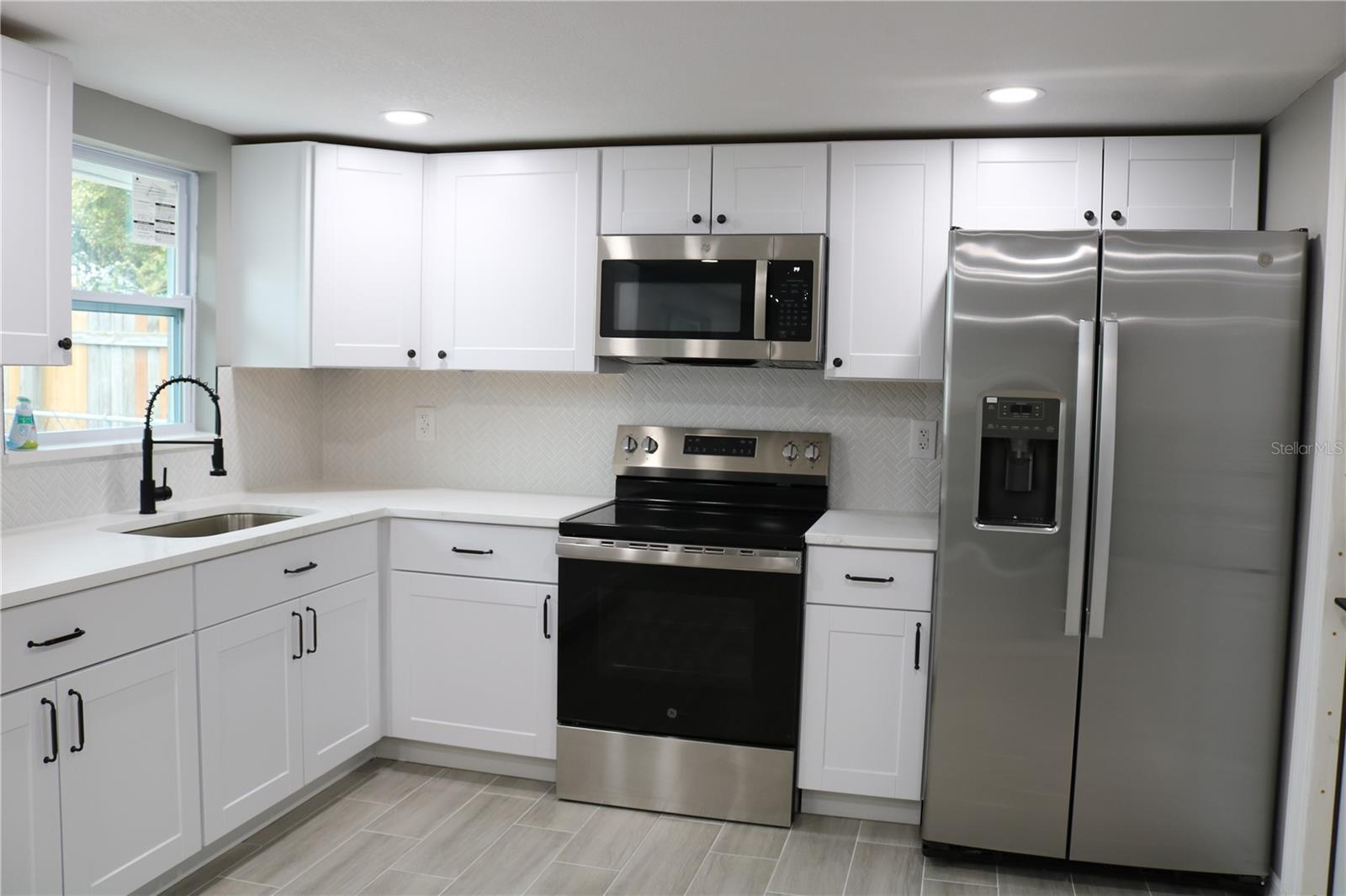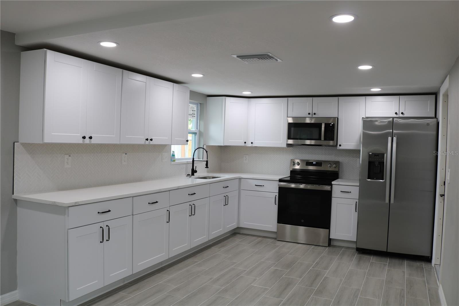 Welcome to this exquisite residence nestled in the Ridge Crest Gardens neighborhood. This beautifully remodeled home boasts and open layout with a split plan design, ideal for both privacy and entertaining. The heart of the home is its stunning kitchen, with new wood cabinets, fancy quartz countertop and GE resistant stainless steel appliances. New roof 2024, new AC 2024, new garage door 2024, new water heating 2024, new windows, also exteriors and interiors doors and modern walls painting. Both bathrooms updated with modern porcelain tile, also the whole house has ceramic tile floors and new clear natural lighting. The home's charm extends to the outdoor with a screened porch offering a living area. This property is a NO HOA, NO CDD zone! Never Flooding! It is located in a quiet area, near to beaches, shopping centers, and fine dining. Is is an amazing opportunity for first time home buyers and small families to find a place to call home.