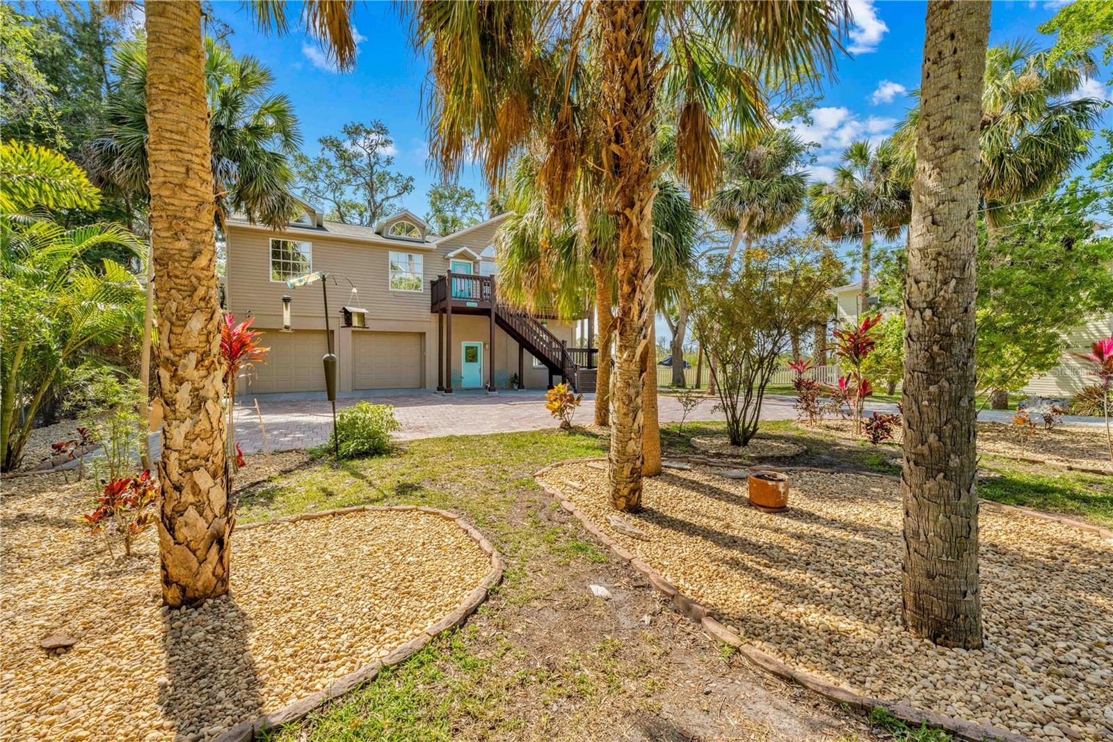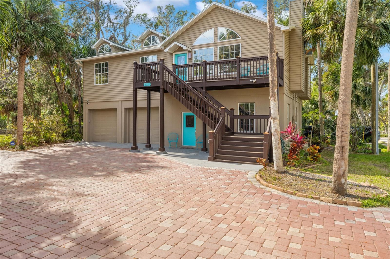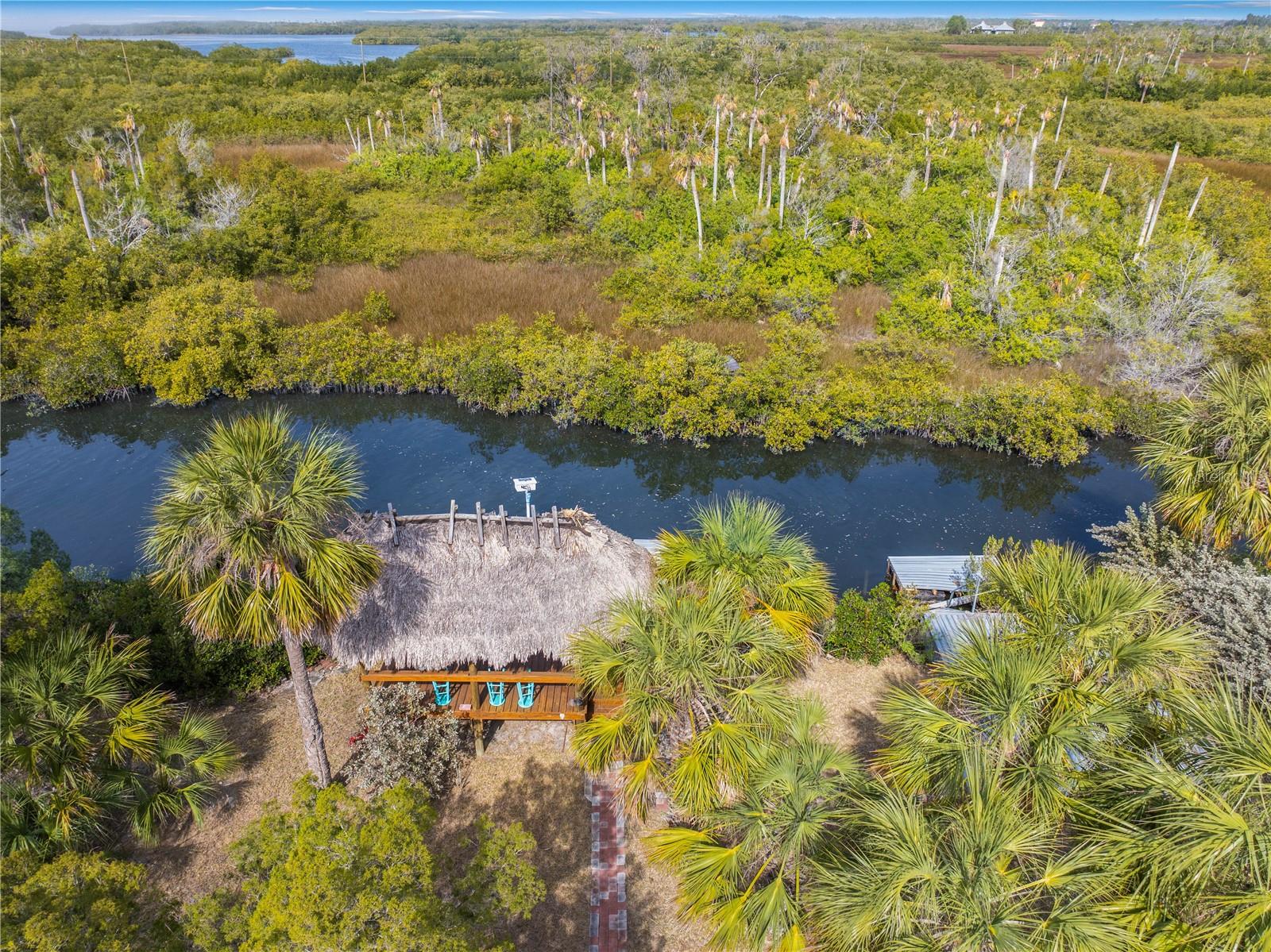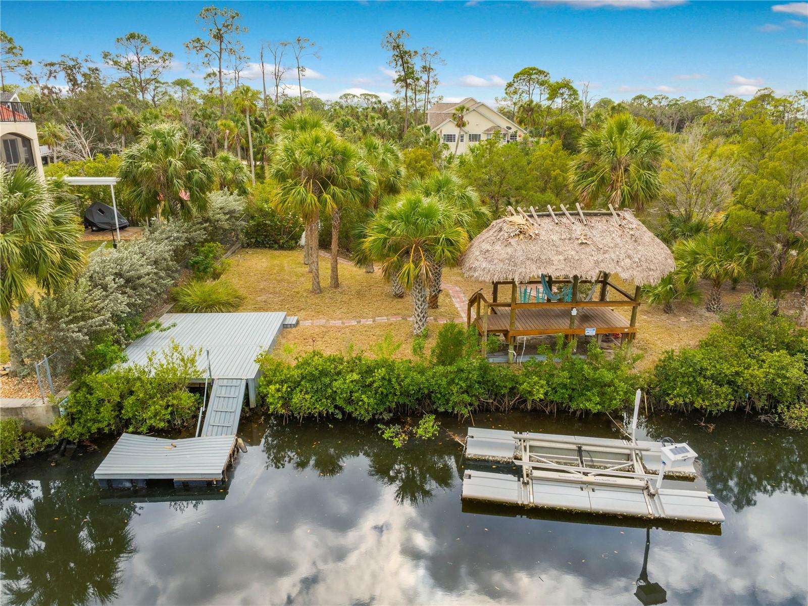 Buy an exquisite home, get a WATERFRONT LOT FOR FREE! How does a SOLAR POWERED BOAT LIFT, PRIVATE DOCK, KAYAK LAUNCH, SUN DECK AND TIKI HUT SOUND?? Just a quick jaunt down your boardwalk and you've found paradise! With shared access to a private boat ramp, you'll be able to head straight out to the Gulf of America and find yourself at Durney Key, Cow Key and all that the salt life has to offer you! This fully renovated home is truly one-of-a-kind, offering two parcels of land. boating, kayaking, and parks, all just minutes away from local dining and entertainment. A separate in-law suite, completed in 2023, includes a full kitchen, bedroom, and bathroom with its own private entrance, making it perfect for rental income, in-law suite, or a work-from-home setup. The suite features all-new electrical and plumbing, a custom kitchen with quartz countertops, new hardware, lighting, and a walk-in shower in the new full bath. The main house, also renovated in 2023, boasts grand living and dining areas with cathedral ceilings, a wood-burning fireplace, and immediate access to the gourmet kitchen. The kitchen features two-tone custom shaker-style cabinetry, quartzite countertops, and stainless steel appliances, including a double convection oven. The island offers additional storage and an ideal setup for quick meals or entertaining. The primary bedroom is a peaceful retreat with room for a king-sized bed and a plentiful closet space. The ensuite bathroom is spa-like, featuring a custom design with a soaking tub, a walk-in shower with dual rain showerheads, dual vanities, a marble countertop, a lighted mirror, and elegant tile surround. The two additional bedrooms are spacious, with one featuring a secure door ideal for storing valuables. The guest bathroom has been beautifully renovated with floor-to-ceiling tile, a walk-in shower, and a new vanity with quartz countertops. Enjoy the outdoors from the first-floor patio or the second-floor balcony, accessible from both the kitchen and the primary bedroom through French doors. There's plenty of room for your recreational vehicles and toys in the 4-car tandem garage! The roof was replaced in 2019, and the HVAC was updated in 2018. Recent updates in 2023/2024 include a whole-house dehumidifier, water heater, Trex deck, walkway, boat dock, gorgeous 36x36 tile flooring, subfloor, new interior and exterior paint (including garage doors and trim), epoxy garage flooring, plantation shutters, new lighting, recessed lighting, ceiling fans, electrical/plumbing updates, new faucets/fixtures, hardware, toilets, bath vents, and new landscaping with plantings, sod, brick-edged flower beds, and new pavers throughout. Security cameras were also installed in 2023 for added peace of mind. Enjoy biking and water activities at nearby Brasher Park, just over a mile away. With all of these incredibly unique features, this is a property you won't want to miss!