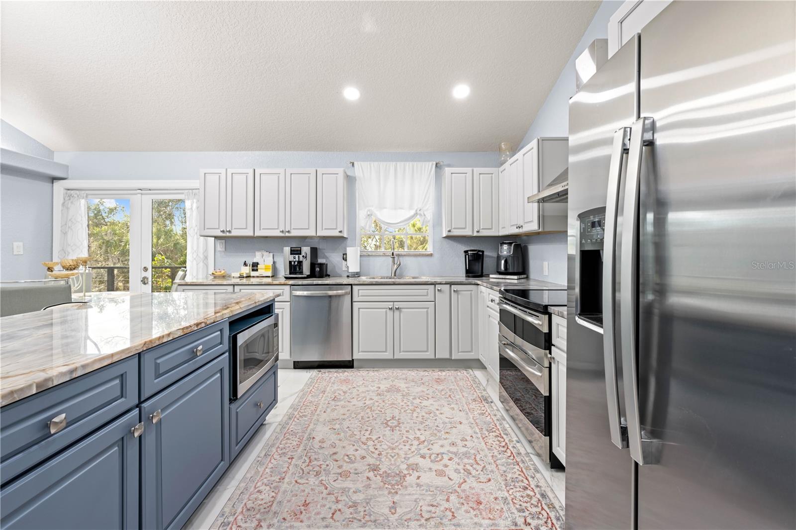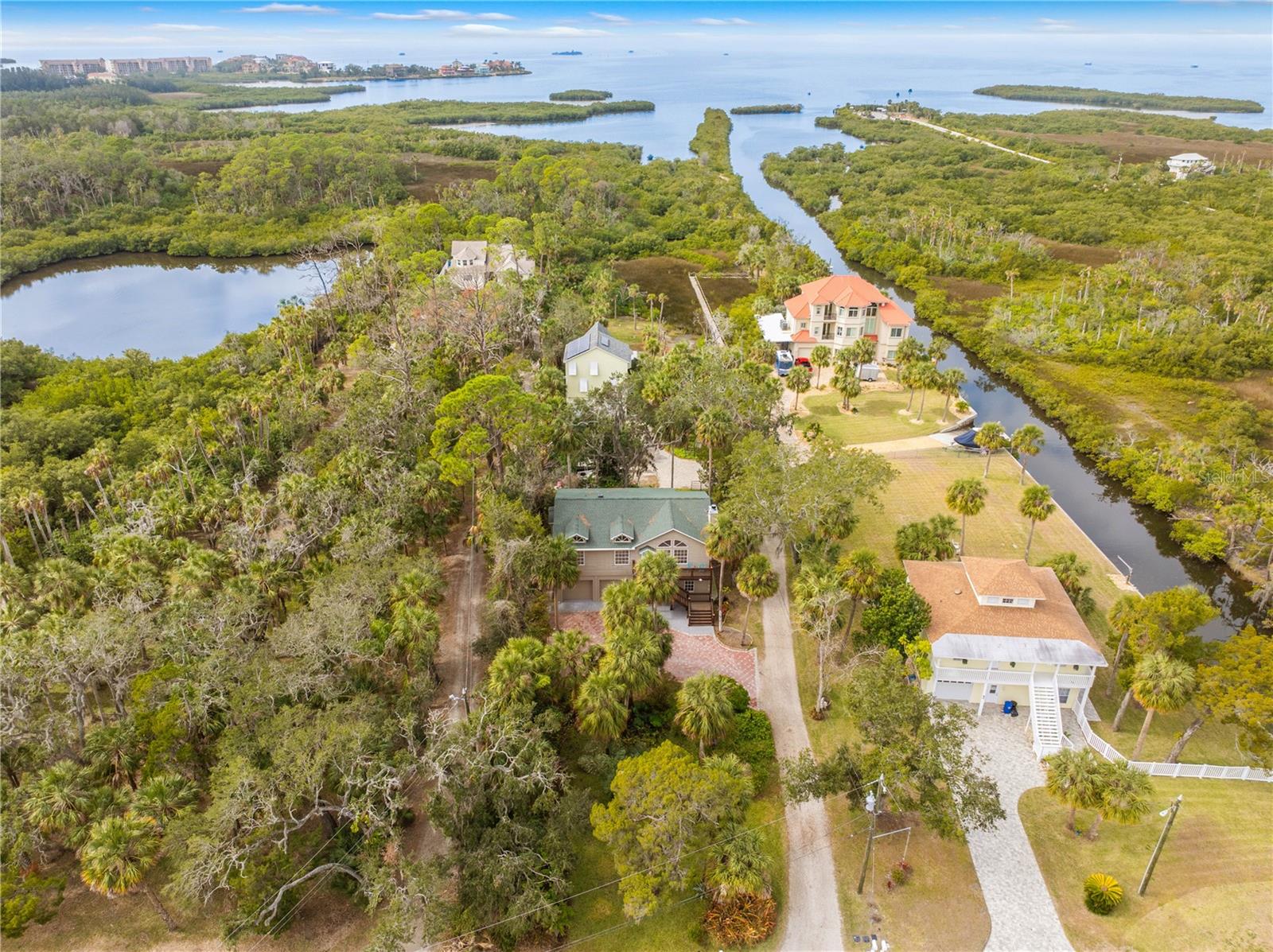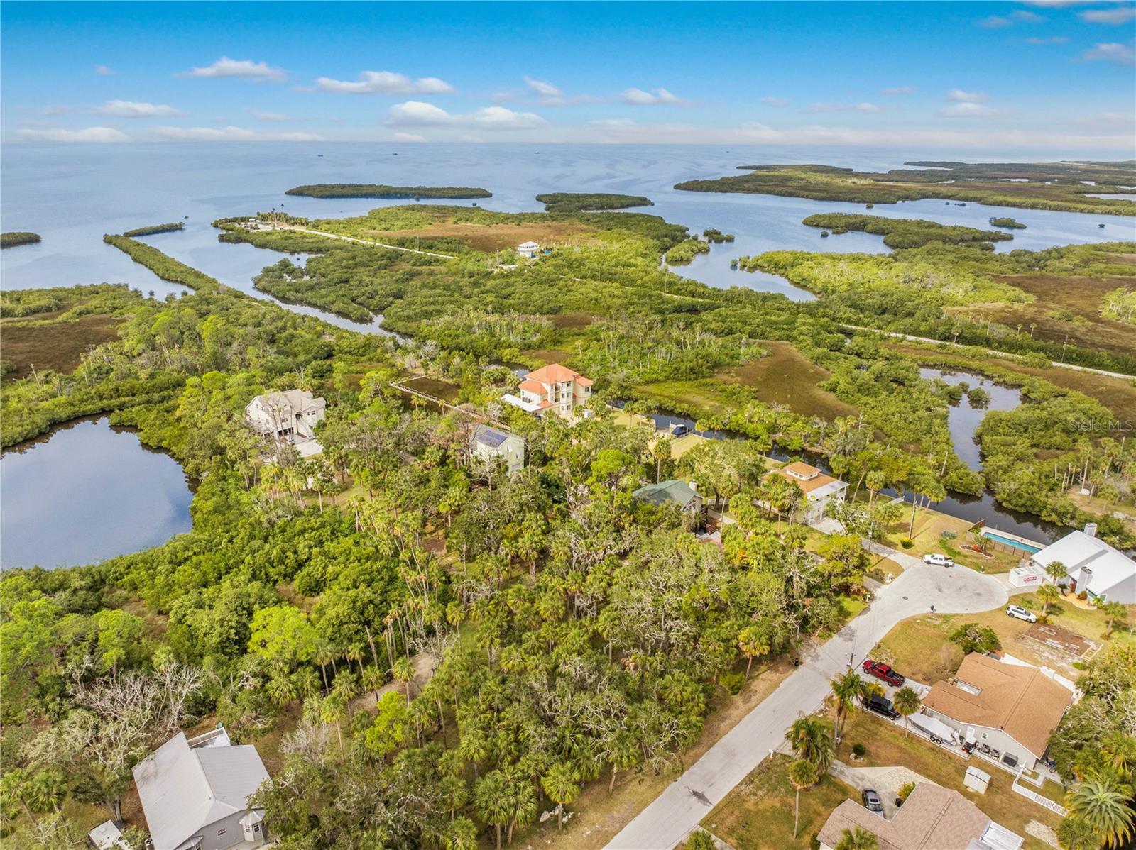 Buy an exquisite home, get a WATERFRONT LOT FOR FREE! How does a SOLAR POWERED BOAT LIFT, PRIVATE DOCK, KAYAK LAUNCH, SUN DECK AND TIKI HUT SOUND?? Just a quick jaunt down your boardwalk and you've found paradise! With shared access to a private boat ramp, you'll be able to head straight out to the Gulf of America and find yourself at Durney Key, Cow Key and all that the salt life has to offer you! This fully renovated home is truly one-of-a-kind, offering two parcels of land. boating, kayaking, and parks, all just minutes away from local dining and entertainment. A separate in-law suite, completed in 2023, includes a full kitchen, bedroom, and bathroom with its own private entrance, making it perfect for rental income, in-law suite, or a work-from-home setup. The suite features all-new electrical and plumbing, a custom kitchen with quartz countertops, new hardware, lighting, and a walk-in shower in the new full bath. The main house, also renovated in 2023, boasts grand living and dining areas with cathedral ceilings, a wood-burning fireplace, and immediate access to the gourmet kitchen. The kitchen features two-tone custom shaker-style cabinetry, quartzite countertops, and stainless steel appliances, including a double convection oven. The island offers additional storage and an ideal setup for quick meals or entertaining. The primary bedroom is a peaceful retreat with room for a king-sized bed and a plentiful closet space. The ensuite bathroom is spa-like, featuring a custom design with a soaking tub, a walk-in shower with dual rain showerheads, dual vanities, a marble countertop, a lighted mirror, and elegant tile surround. The two additional bedrooms are spacious, with one featuring a secure door ideal for storing valuables. The guest bathroom has been beautifully renovated with floor-to-ceiling tile, a walk-in shower, and a new vanity with quartz countertops. Enjoy the outdoors from the first-floor patio or the second-floor balcony, accessible from both the kitchen and the primary bedroom through French doors. There's plenty of room for your recreational vehicles and toys in the 4-car tandem garage! The roof was replaced in 2019, and the HVAC was updated in 2018. Recent updates in 2023/2024 include a whole-house dehumidifier, water heater, Trex deck, walkway, boat dock, gorgeous 36x36 tile flooring, subfloor, new interior and exterior paint (including garage doors and trim), epoxy garage flooring, plantation shutters, new lighting, recessed lighting, ceiling fans, electrical/plumbing updates, new faucets/fixtures, hardware, toilets, bath vents, and new landscaping with plantings, sod, brick-edged flower beds, and new pavers throughout. Security cameras were also installed in 2023 for added peace of mind. Enjoy biking and water activities at nearby Brasher Park, just over a mile away. With all of these incredibly unique features, this is a property you won't want to miss!