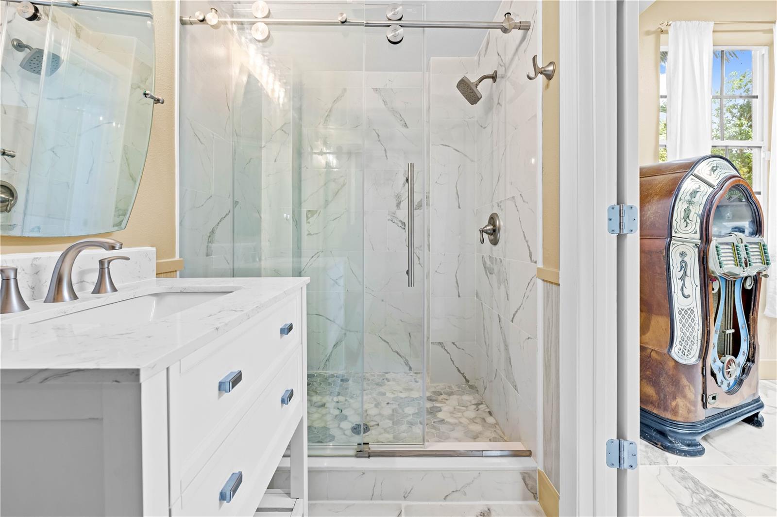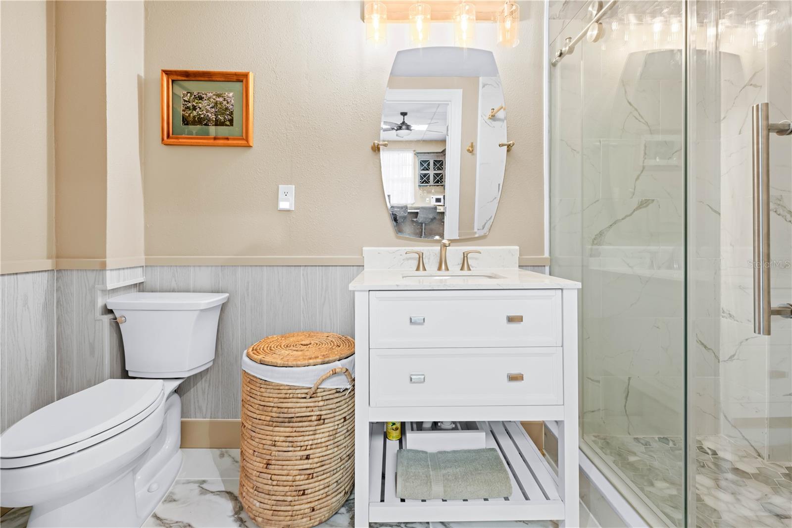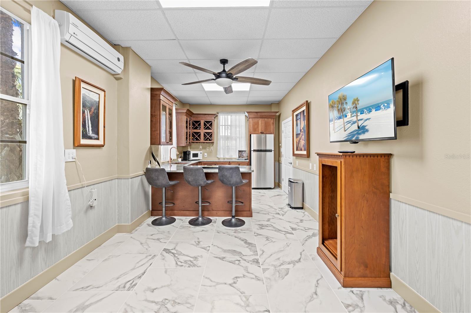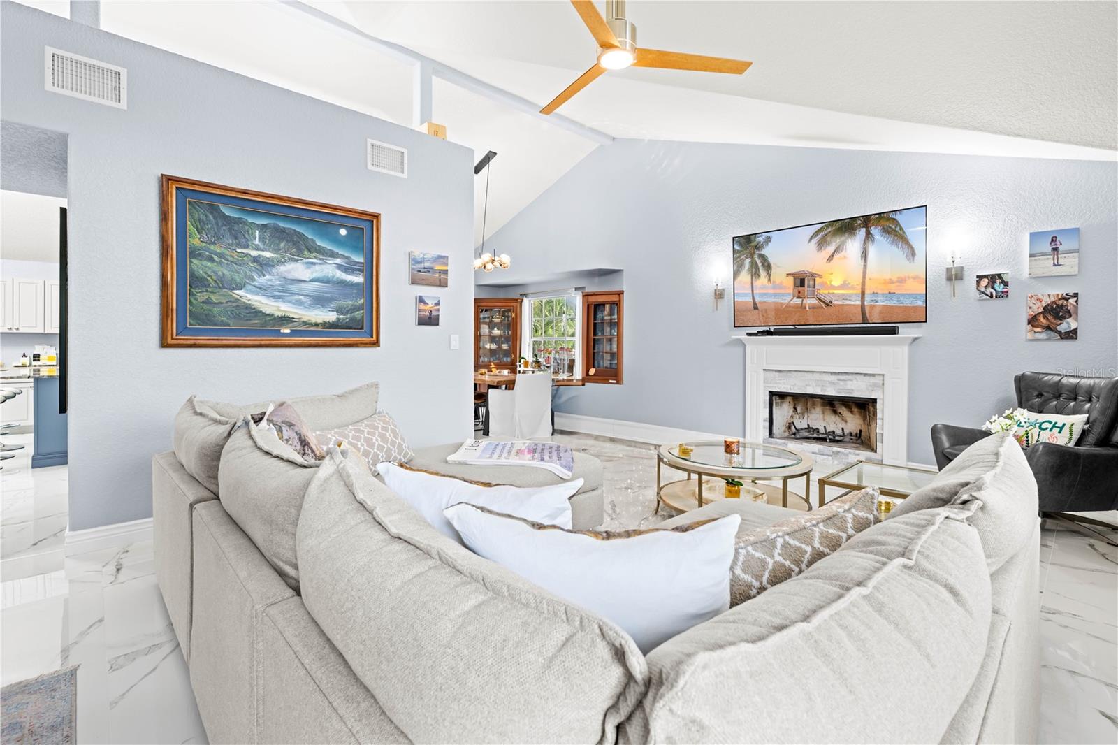 Buy an exquisite home, get a WATERFRONT LOT FOR FREE! How does a SOLAR POWERED BOAT LIFT, PRIVATE DOCK, KAYAK LAUNCH, SUN DECK AND TIKI HUT SOUND?? Just a quick jaunt down your boardwalk and you've found paradise! With shared access to a private boat ramp, you'll be able to head straight out to the Gulf of America and find yourself at Durney Key, Cow Key and all that the salt life has to offer you! This fully renovated home is truly one-of-a-kind, offering two parcels of land. boating, kayaking, and parks, all just minutes away from local dining and entertainment. A separate in-law suite, completed in 2023, includes a full kitchen, bedroom, and bathroom with its own private entrance, making it perfect for rental income, in-law suite, or a work-from-home setup. The suite features all-new electrical and plumbing, a custom kitchen with quartz countertops, new hardware, lighting, and a walk-in shower in the new full bath. The main house, also renovated in 2023, boasts grand living and dining areas with cathedral ceilings, a wood-burning fireplace, and immediate access to the gourmet kitchen. The kitchen features two-tone custom shaker-style cabinetry, quartzite countertops, and stainless steel appliances, including a double convection oven. The island offers additional storage and an ideal setup for quick meals or entertaining. The primary bedroom is a peaceful retreat with room for a king-sized bed and a plentiful closet space. The ensuite bathroom is spa-like, featuring a custom design with a soaking tub, a walk-in shower with dual rain showerheads, dual vanities, a marble countertop, a lighted mirror, and elegant tile surround. The two additional bedrooms are spacious, with one featuring a secure door ideal for storing valuables. The guest bathroom has been beautifully renovated with floor-to-ceiling tile, a walk-in shower, and a new vanity with quartz countertops. Enjoy the outdoors from the first-floor patio or the second-floor balcony, accessible from both the kitchen and the primary bedroom through French doors. There's plenty of room for your recreational vehicles and toys in the 4-car tandem garage! The roof was replaced in 2019, and the HVAC was updated in 2018. Recent updates in 2023/2024 include a whole-house dehumidifier, water heater, Trex deck, walkway, boat dock, gorgeous 36x36 tile flooring, subfloor, new interior and exterior paint (including garage doors and trim), epoxy garage flooring, plantation shutters, new lighting, recessed lighting, ceiling fans, electrical/plumbing updates, new faucets/fixtures, hardware, toilets, bath vents, and new landscaping with plantings, sod, brick-edged flower beds, and new pavers throughout. Security cameras were also installed in 2023 for added peace of mind. Enjoy biking and water activities at nearby Brasher Park, just over a mile away. With all of these incredibly unique features, this is a property you won't want to miss!