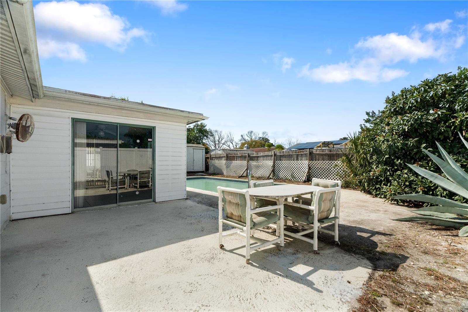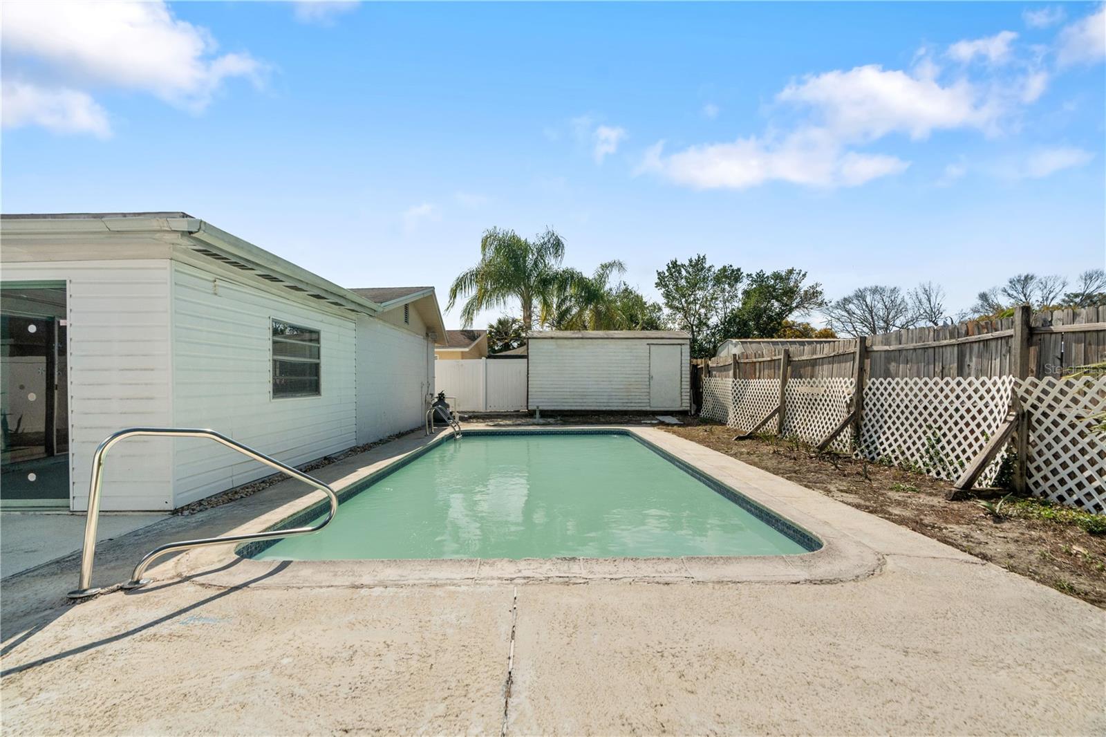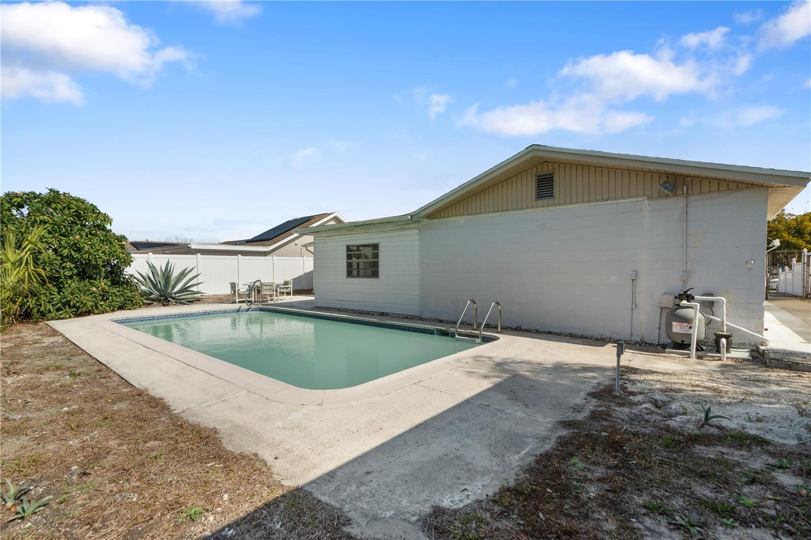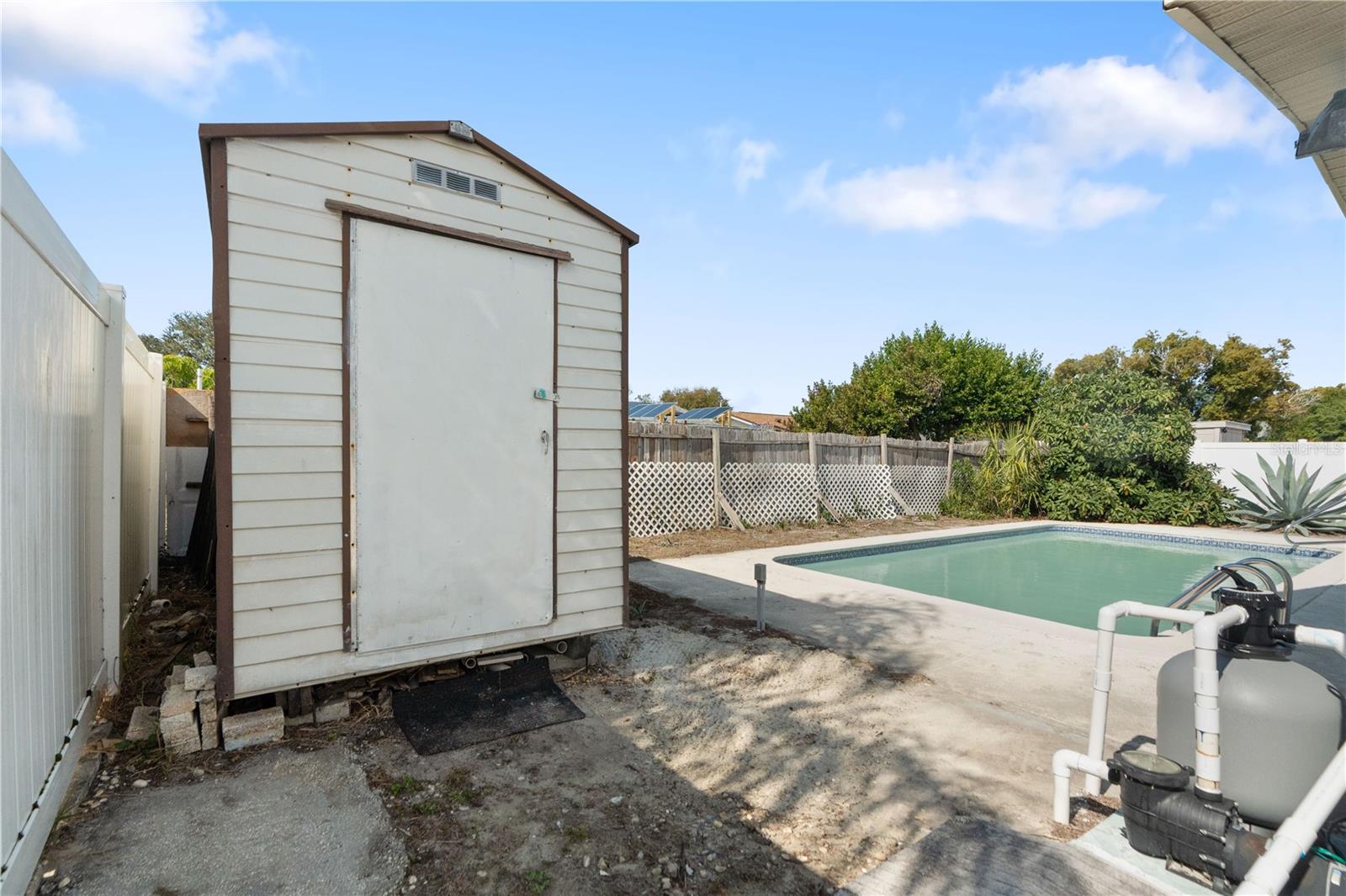 Great Starter Home Opportunity in Port Richey! This 2-bedroom home also includes a versatile office that can easily be converted into a third bedroom, with the potential to create a fourth bedroom. The fenced-in yard offers privacy, while the long driveway on the side and horseshoe driveway in front provide convenient parking for up to 8 cars. Enjoy the in-ground swimming pool (3ft-6ft), equipped with a new pool pump and filter, perfect for outdoor relaxation and entertaining. Additional features include a new electrical panel box, a newer electric water heater, water softener, and the roof is only 8 years old (including a flat roof replacement). The porch is vented, making it an ideal space to relax year-round. Inside, you'll find a dining room skylight that fills the space with natural light, and the primary bedroom features a walk-in closet. Seven doors have been replaced throughout the home, adding to the updates. The home also comes with a newer washer and dryer that will convey with the home. With no CDD fees, no HOA, and no deed restrictions, this home offers the freedom to make it your own. The oversized 1-car garage provides additional storage space, and there’s a shed on the property for even more storage needs. The home is close to shopping, restaurants, medical facilities, golf courses, and major roads. It's about 45 minutes to Tampa International Airport, and you're also near the Gulf of Mexico beaches, without being in a flood zone. This is a fantastic opportunity for anyone looking for a starter home or an investment property with plenty of room to grow. Schedule a viewing today, and this could be the next place you'll call home!