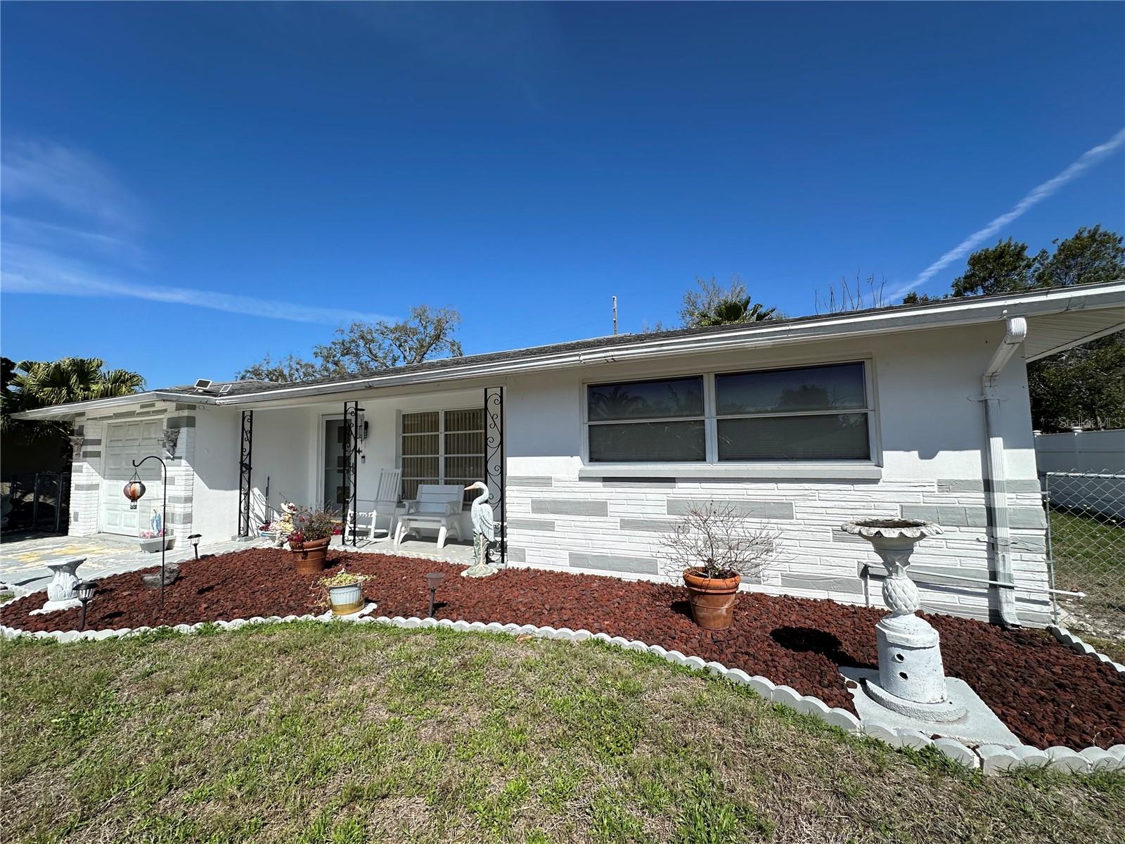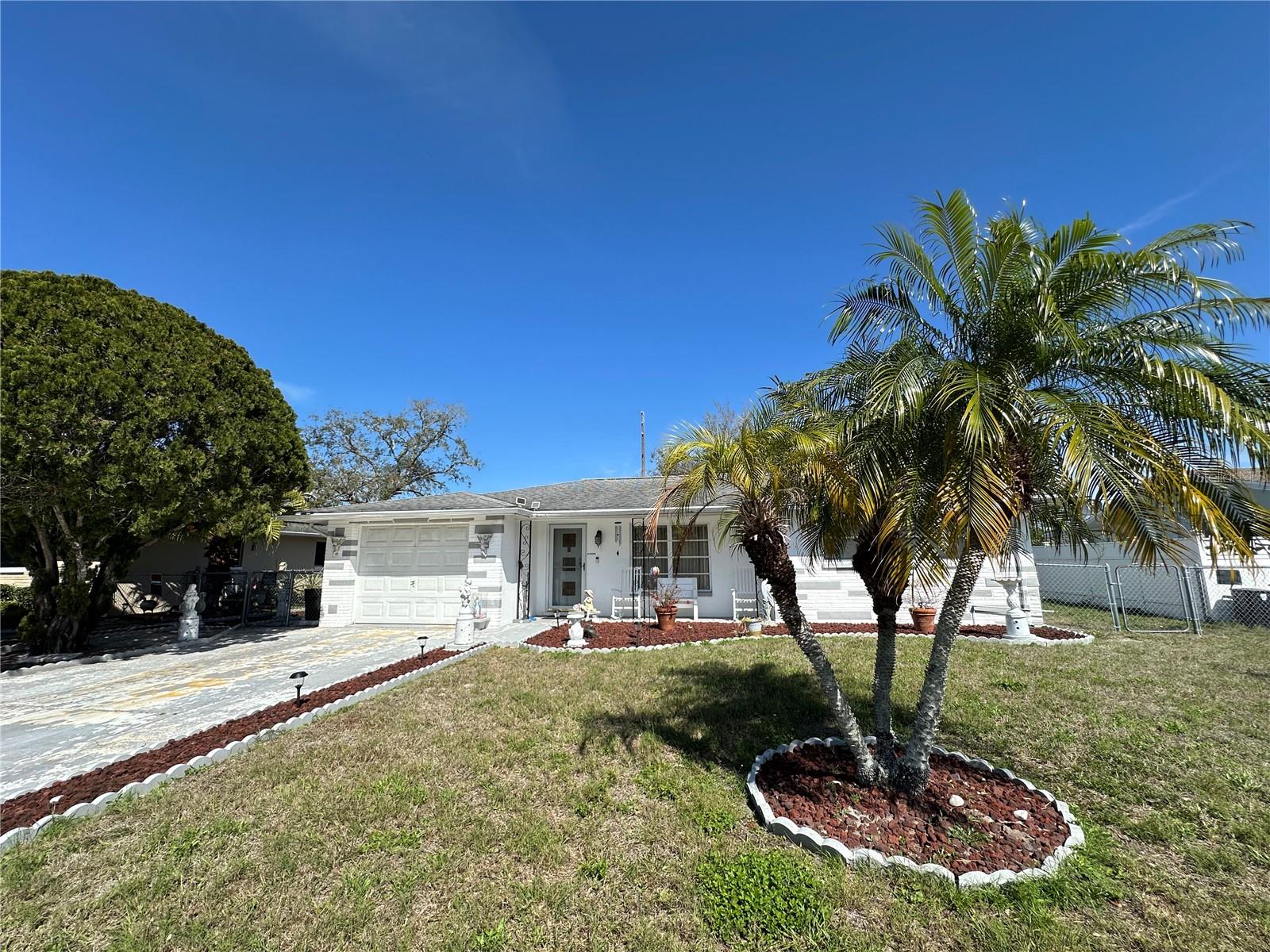 Prime Location! Well maintained 2-bedroom, 2-bathroom, 1-car garage home is ideally situated near shopping centers, top-rated restaurants, stunning Gulf Coast beaches, and essential medical facilities. With no deed restrictions, you’ll enjoy the freedom to make this home your own. Step inside to a spacious, light-filled living room that welcomes you with warmth and charm. The well-appointed kitchen has ample cabinet and counter space, seamlessly flowing into the adjoining family room—perfect for entertaining! Sliding glass doors lead to the versatile Florida room an additional relaxation space. Large fenced in yard. Centrally located with easy access to Tampa and St. Pete airports (just 45 minutes away), this move-in-ready home.