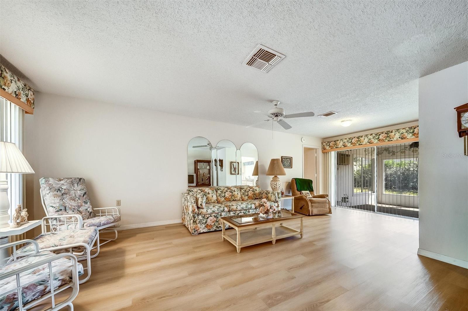 "Price Improvement, Seller Motivated, New Roof May 2025" Welcome to the Timber Oaks 55+ Community. This well-maintained one-story single detached house has 2 bedrooms, 2 bathrooms, and attached garage. This house features neutral colors that allow for the light to carry throughout the home along with the light-colored laminate flooring in the living room, dining room and bedrooms. The bathrooms and kitchen have tile flooring. The separate dining room allows for easy entertaining from the kitchen. The lanai with windows allows for a perfect place for morning coffee or any time enjoyment of the view of the backyard. The laundry is located inside the house. The house is close to the Timber Oaks Clubhouse that boasts many activities and events. The low monthly fee of $55 includes the pool, clubhouse with sewing room, computer room, card room, library and an auditorium that hosts many events. Make your appointment today to tour this home!