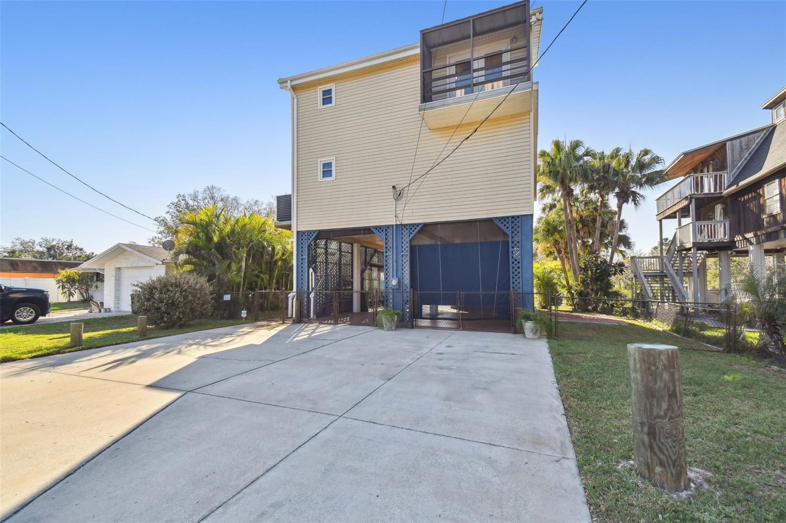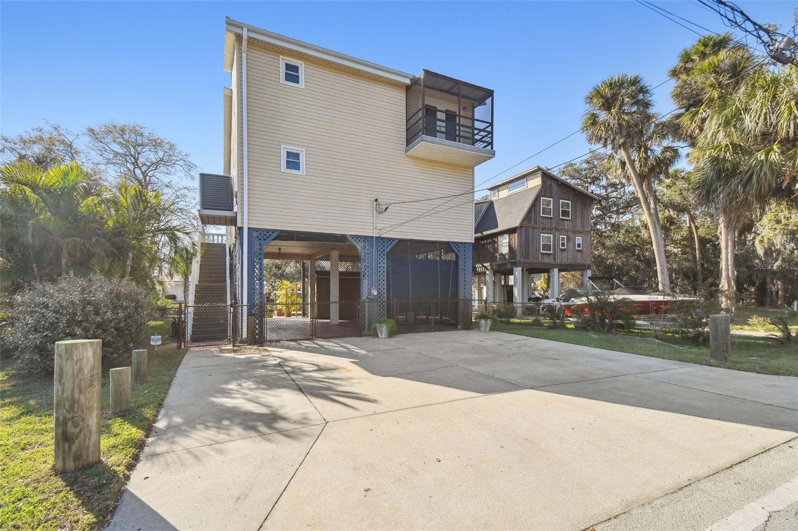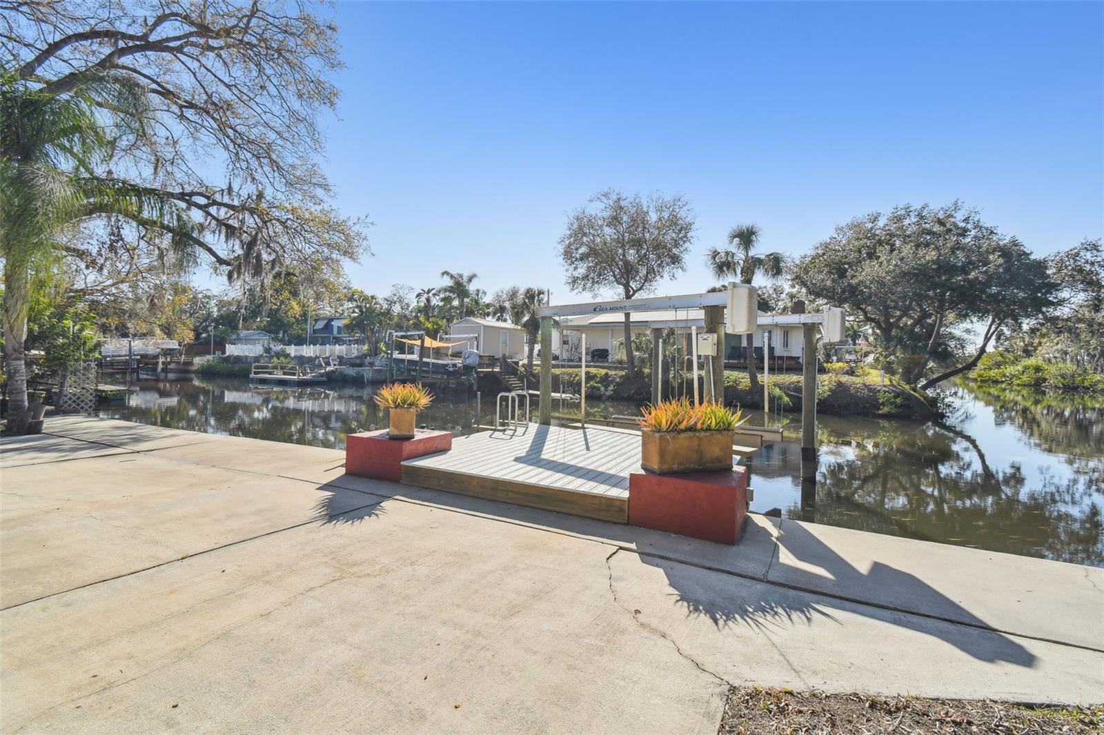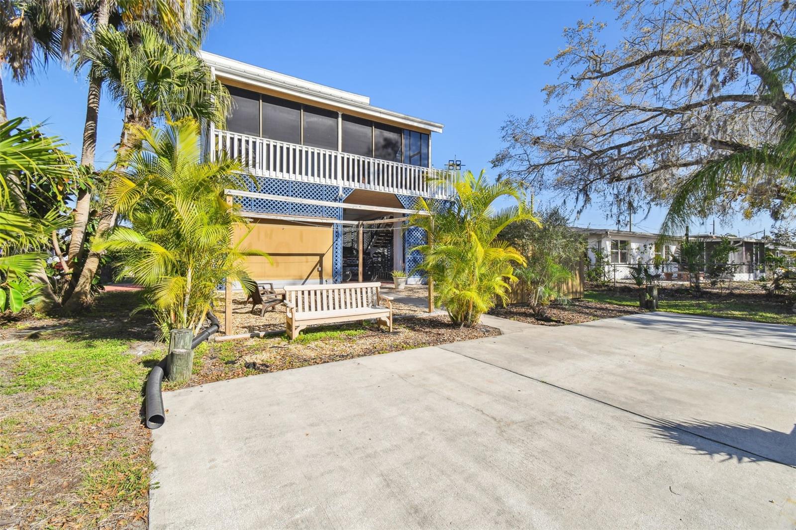 Stilt home on a canal with direct Gulf access. NO Storm or Wind damage offering unmatched peace of mind. Bring your RV, camper, boat, or golf cart—there’s plenty of room to park under the home. Head upstairs and enter through the front door or the spacious screened-in porch, featuring a No-See-Ums screen and stunning water views. Inside, soaring vaulted ceilings and an open floor plan make this home perfect for entertaining. The main level includes a large living and dining area that flows into an industrial-style kitchen with a generous pantry. A convenient laundry closet is just off the kitchen, leading to a renovated full bathroom. There's also a main-level bedroom with direct access to the bath. Upstairs, the master loft offers a spacious walk-in closet, a beautifully renovated full bath with a tub, and a private screened-in balcony. Natural light pours in through the loft windows, stretching the length of the house. The lush, mature landscaping adds to the tropical feel of the property. The backyard is designed for relaxation, with a seating area, fire pit, kayak/paddleboard rack, and an outdoor shower. Key features include a metal roof (2020), impact-rated windows (2020), HVAC/Heat (2019), vinyl flooring (2019), carpet (2021), and a remote-controlled 10K boat lift (2020) with composite decking. Parking is plentiful with a gate clearance of 9'10" wide and 11' high, providing space for a boat, large truck, or camper. There's also an additional boat/trailer pad (16’x10’) behind a locked gate, a shed for storage, and easy access to incredible boating and kayaking spots. Boat to your favorite restaurants and bars in Miller’s Bayou, cruise down the Cottee River, or take a day trip to Anclote Key. Brasher Park is just down the street, that you can walk or bike to. You’re just a short walk to Walmart, Dunkin Donuts, Culver's, and local hot spots, and conveniently located only 45 minutes to Tampa International. Downtown City of New Port Richey in 5 minutes. BOAT available for sale 2015 Sportsmans Heritage, less than 850 hours on the engine. Don’t miss out on this rare waterfront paradise—call today for your private showing!