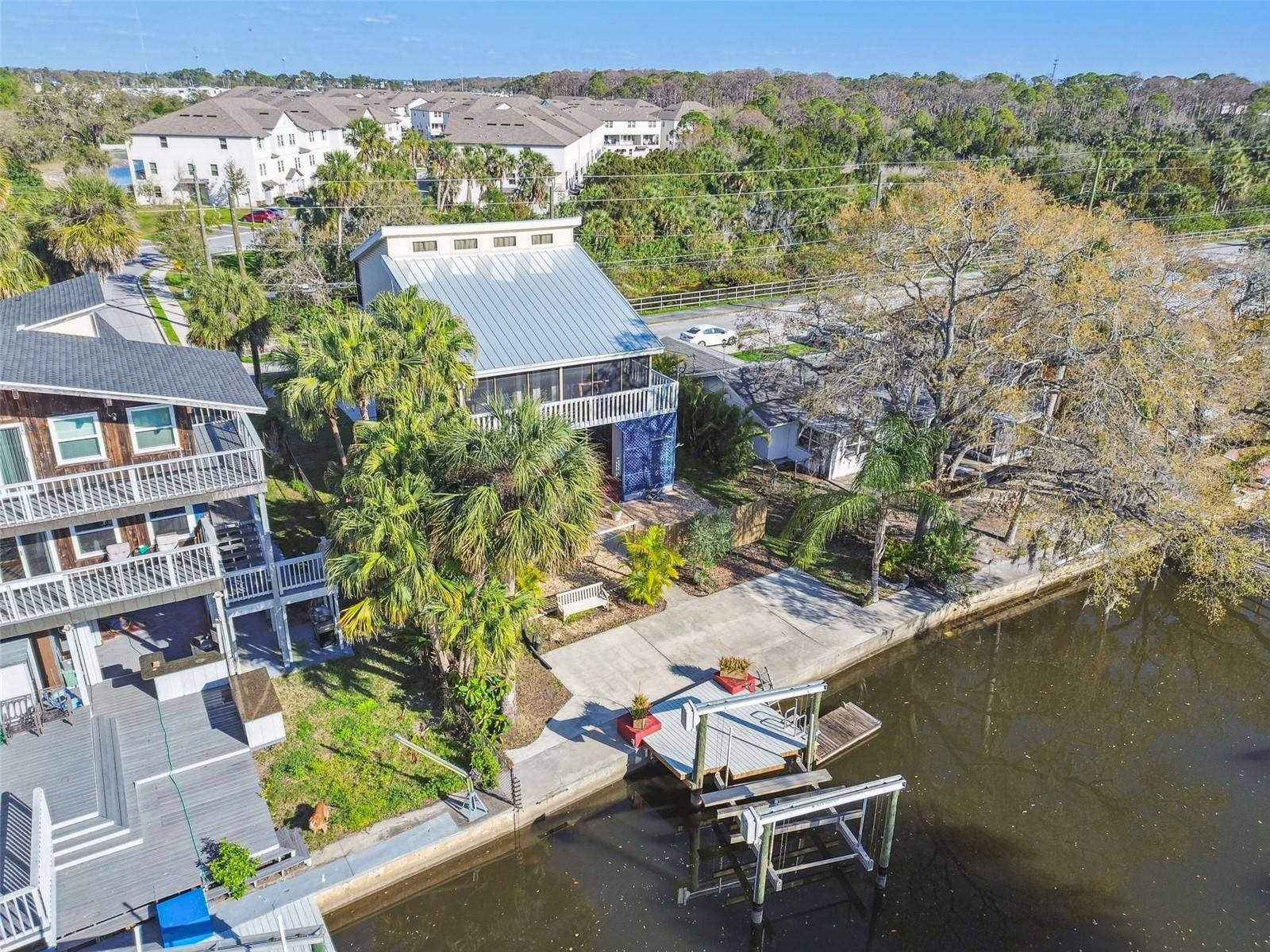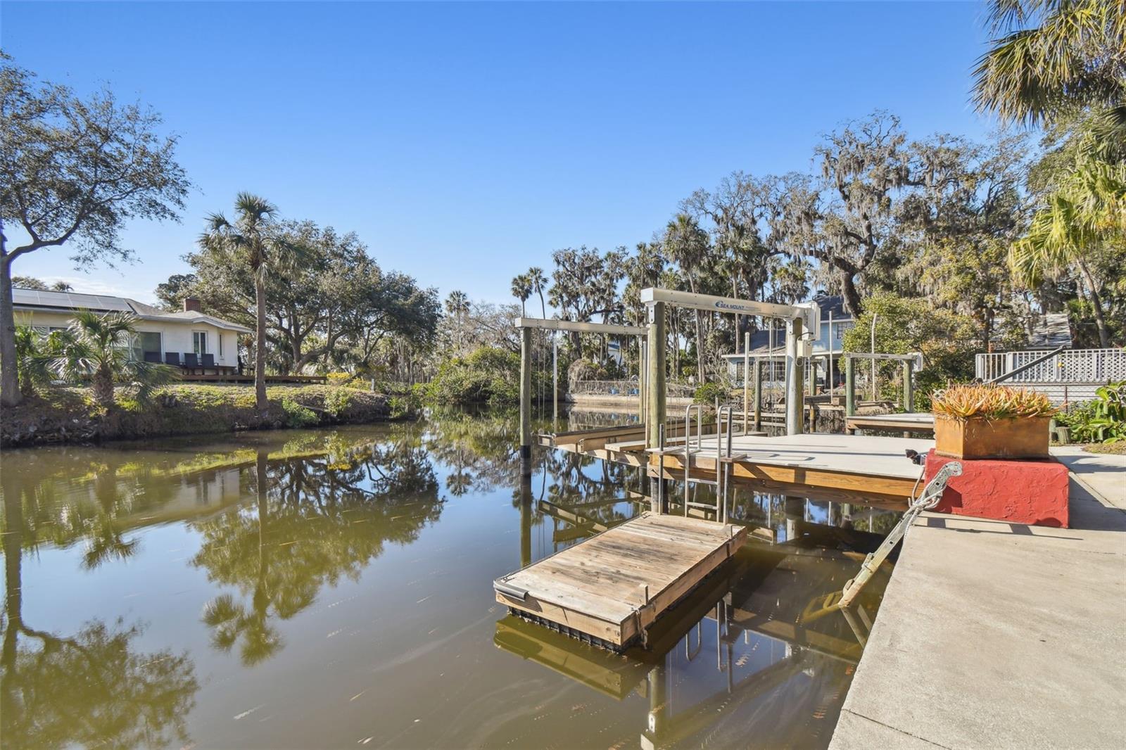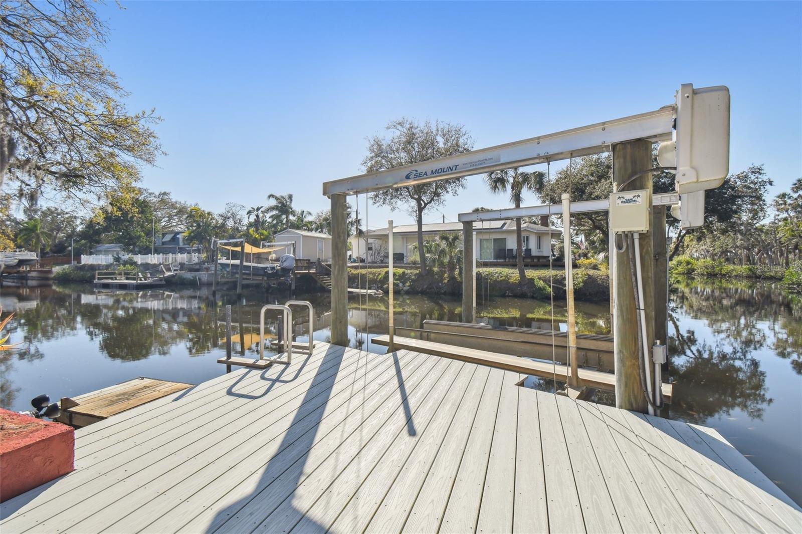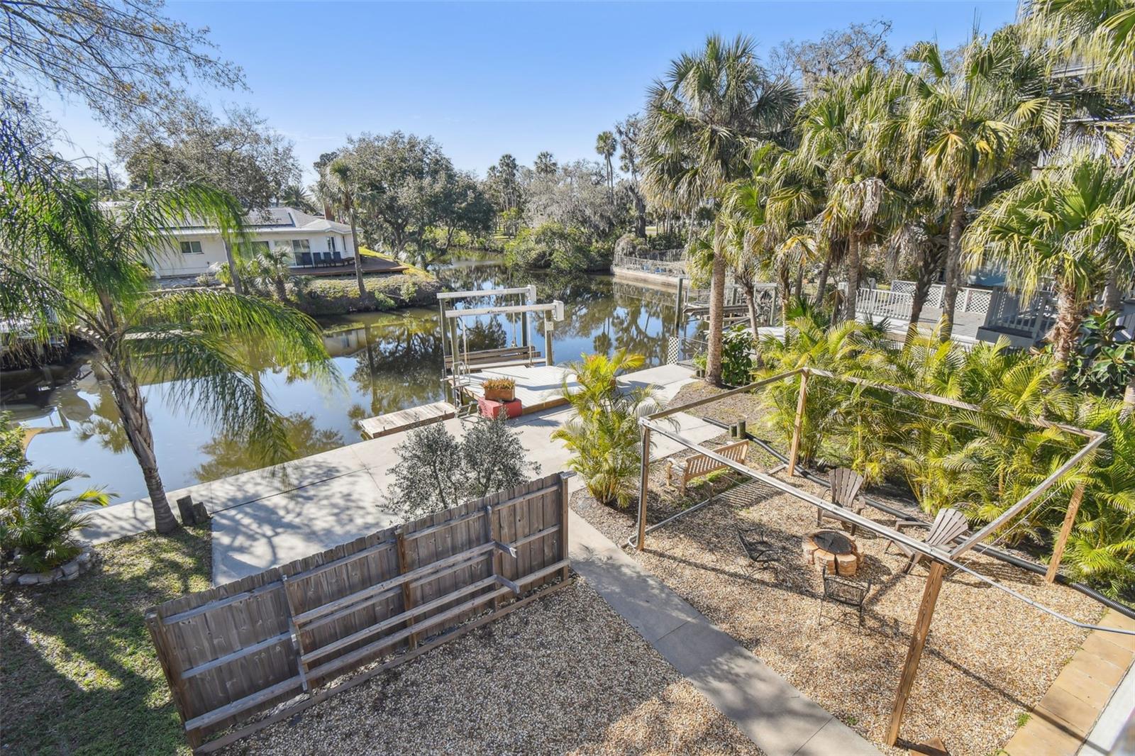 Stilt home on a canal with direct Gulf access. NO Storm or Wind damage offering unmatched peace of mind. Bring your RV, camper, boat, or golf cart—there’s plenty of room to park under the home. Head upstairs and enter through the front door or the spacious screened-in porch, featuring a No-See-Ums screen and stunning water views. Inside, soaring vaulted ceilings and an open floor plan make this home perfect for entertaining. The main level includes a large living and dining area that flows into an industrial-style kitchen with a generous pantry. A convenient laundry closet is just off the kitchen, leading to a renovated full bathroom. There's also a main-level bedroom with direct access to the bath. Upstairs, the master loft offers a spacious walk-in closet, a beautifully renovated full bath with a tub, and a private screened-in balcony. Natural light pours in through the loft windows, stretching the length of the house. The lush, mature landscaping adds to the tropical feel of the property. The backyard is designed for relaxation, with a seating area, fire pit, kayak/paddleboard rack, and an outdoor shower. Key features include a metal roof (2020), impact-rated windows (2020), HVAC/Heat (2019), vinyl flooring (2019), carpet (2021), and a remote-controlled 10K boat lift (2020) with composite decking. Parking is plentiful with a gate clearance of 9'10" wide and 11' high, providing space for a boat, large truck, or camper. There's also an additional boat/trailer pad (16’x10’) behind a locked gate, a shed for storage, and easy access to incredible boating and kayaking spots. Boat to your favorite restaurants and bars in Miller’s Bayou, cruise down the Cottee River, or take a day trip to Anclote Key. Brasher Park is just down the street, that you can walk or bike to. You’re just a short walk to Walmart, Dunkin Donuts, Culver's, and local hot spots, and conveniently located only 45 minutes to Tampa International. Downtown City of New Port Richey in 5 minutes. BOAT available for sale 2015 Sportsmans Heritage, less than 850 hours on the engine. Don’t miss out on this rare waterfront paradise—call today for your private showing!