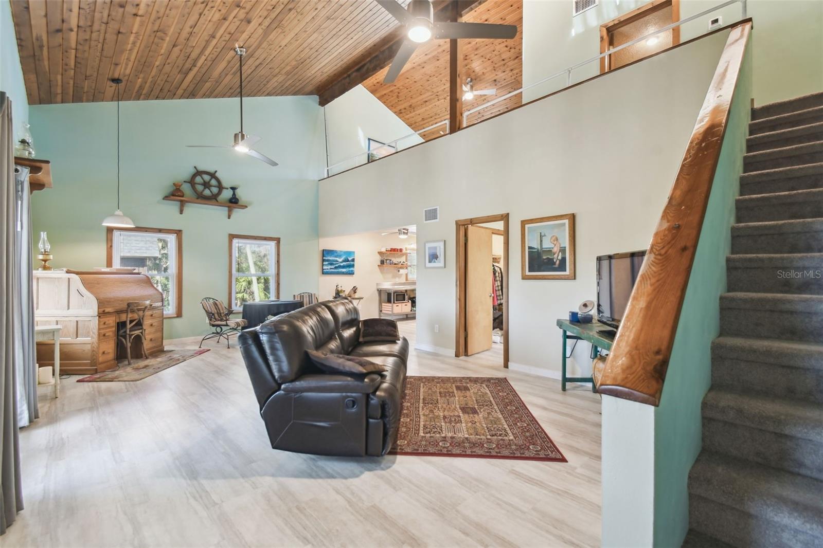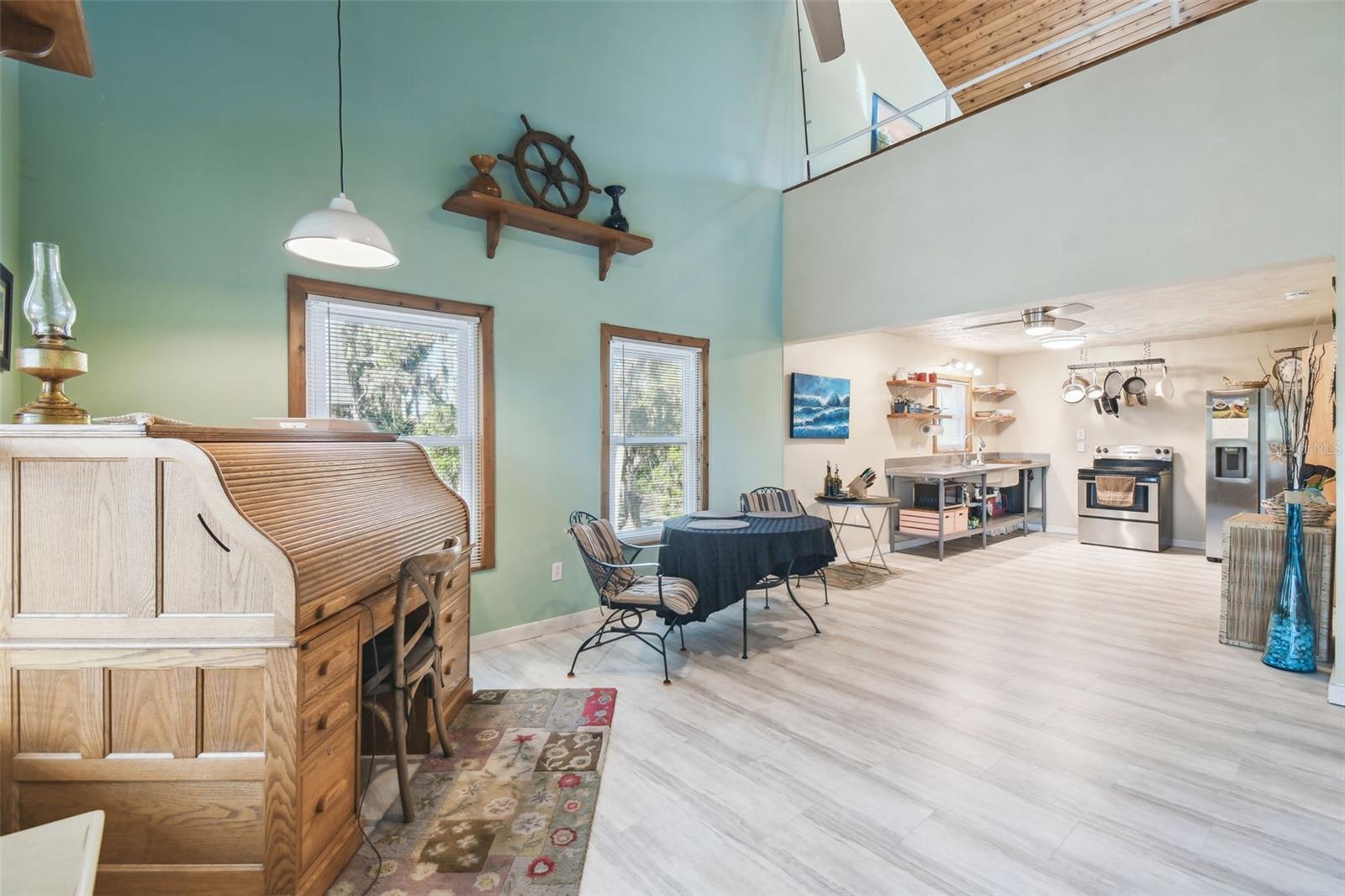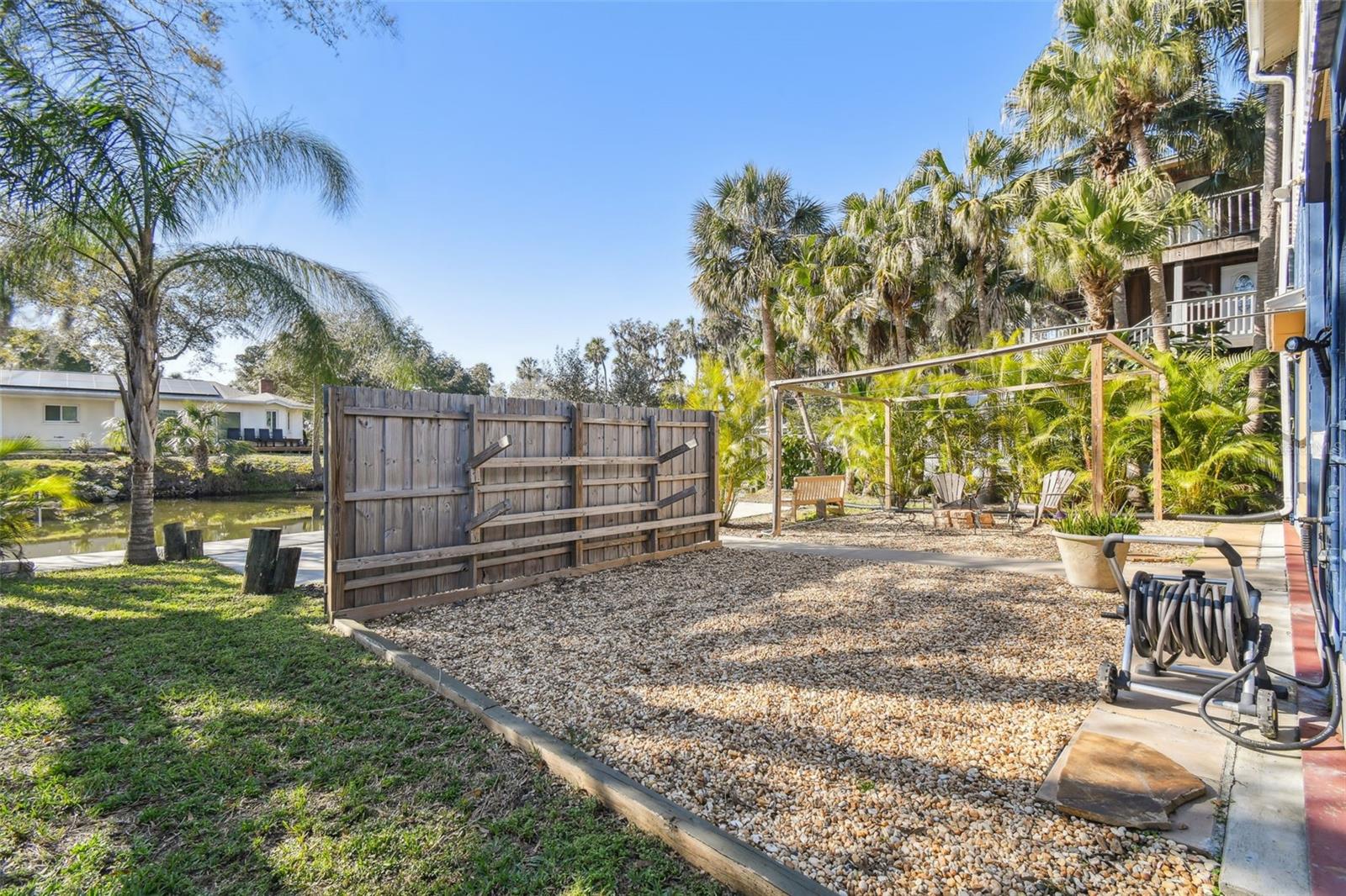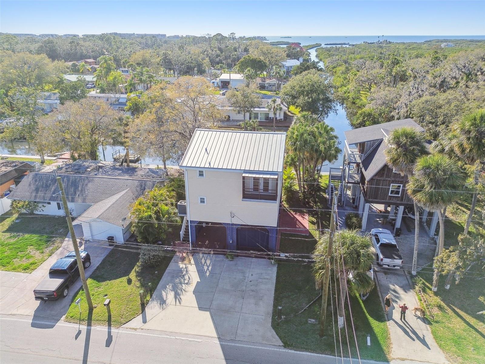 Stilt home on a canal with direct Gulf access. NO Storm or Wind damage offering unmatched peace of mind. Bring your RV, camper, boat, or golf cart—there’s plenty of room to park under the home. Head upstairs and enter through the front door or the spacious screened-in porch, featuring a No-See-Ums screen and stunning water views. Inside, soaring vaulted ceilings and an open floor plan make this home perfect for entertaining. The main level includes a large living and dining area that flows into an industrial-style kitchen with a generous pantry. A convenient laundry closet is just off the kitchen, leading to a renovated full bathroom. There's also a main-level bedroom with direct access to the bath. Upstairs, the master loft offers a spacious walk-in closet, a beautifully renovated full bath with a tub, and a private screened-in balcony. Natural light pours in through the loft windows, stretching the length of the house. The lush, mature landscaping adds to the tropical feel of the property. The backyard is designed for relaxation, with a seating area, fire pit, kayak/paddleboard rack, and an outdoor shower. Key features include a metal roof (2020), impact-rated windows (2020), HVAC/Heat (2019), vinyl flooring (2019), carpet (2021), and a remote-controlled 10K boat lift (2020) with composite decking. Parking is plentiful with a gate clearance of 9'10" wide and 11' high, providing space for a boat, large truck, or camper. There's also an additional boat/trailer pad (16’x10’) behind a locked gate, a shed for storage, and easy access to incredible boating and kayaking spots. Boat to your favorite restaurants and bars in Miller’s Bayou, cruise down the Cottee River, or take a day trip to Anclote Key. Brasher Park is just down the street, that you can walk or bike to. You’re just a short walk to Walmart, Dunkin Donuts, Culver's, and local hot spots, and conveniently located only 45 minutes to Tampa International. Downtown City of New Port Richey in 5 minutes. BOAT available for sale 2015 Sportsmans Heritage, less than 850 hours on the engine. Don’t miss out on this rare waterfront paradise—call today for your private showing!