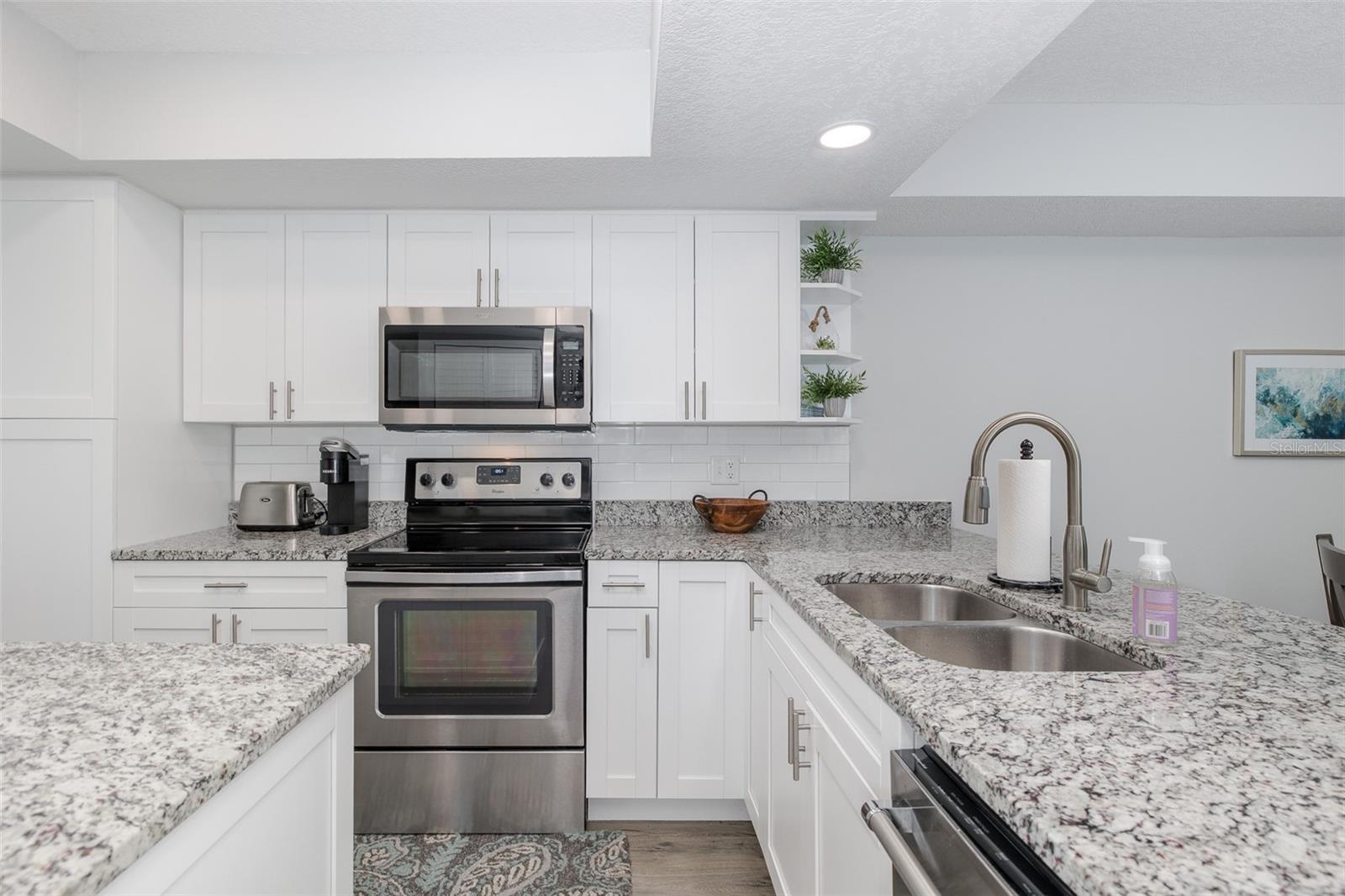 END UNIT! LARGEST CONDO! Incredible condo with beautiful views ! RUN DONT WALK! GRAB THIS BEFORE IT GONE! WELCOME TO THIS EXTREMELY HARDTO FIND. A CORNER UNIT CONDO WITH BREATHTAKING SUNSETS AND SUNRISES THAT WILL LEAVE YOU SPEECH LESS. THIS COMPLEX IS ONE OF THE AREAS MOST DESIRABLE RESIDENTS, LOCATED RIGHT ON THE GULF. INDULGE IN OUTSTANDING VIEWS AND TOP NOTCH AMENITIES. BRING YOUR BOAT(BOAT RAMP), JETSKI OR RV(Onsite storage facility). Location is just minutes out to the open waters with direct access to Anclote Island, the Cotee River(access to over 10 waterfront restaurants), Three Rooker and many, many more beaches! Come live in PARADISE, a place that has endless things to do. Our clubhouse has it all, two heated pool, putting green, fitness center, an event coordinator, banquet room, library, game room, card room, and so much more! This beautifully newly updated 2-bedroom, 2-bathroom corner/end unit condo located in Sand Pebble Pointe – Port Richey, FL offers stunning Gulf views and modern, low-maintenance living. Featuring newer AC, water heater, IMPACT WINDOWS AND DOORS, new decorative glass leaded front door, LVP flooring and tile throughout—no carpet—this home boasts an open floor plan with a STUNNING spacious kitchen that has tons of storage with a nice center island, including granite countertops, new stainless steel appliances, shaker cabinets with modern hardware, and a chic subway tile backsplash. The kitchen seamlessly flows into the dining area and large living room, which opens up to a Florida room with breathtaking views of the Gulf. sit and relax while watching the dolphins and boats pass bye. LOW HOA. The split-floorpan layout ensures privacy, with the primary suite offering a generous space, a walk-in closet, and an updated ensuite bath featuring double sinks, granite countertops, shaker cabinets, a makeup area, and modern fixtures and enveloped with a fantastic view. The guest bath has also been beautifully updated with granite countertops and shaker cabinets. Additional highlights include custom plantation shutters on windows, in-unit laundry(newer washer/dryer stackable).and a convenient oversized storage room for your pool floats, bicycles, outdoor items and much more. With an under-building parking spot right at the stairs and easy access to fantastic community amenities—including tennis courts(pickleball), two swimming pools, a putting green, a BRAND NEW CLUBHOUSE, with a library, game room, kitchen, and fitness center—this condo has it all. Located in a guard-gated community close to downtown New Port Richey, where golf carts are allowed, and just minutes from shopping, restaurants, and medical services, this condo offers the perfect blend of comfort and convenience. Don't miss the chance to own this AMAZING waterfront gem in Sand Pebble Pointe! RELAX AND ENJOY THE WATERFRONT LIFESTYLE.