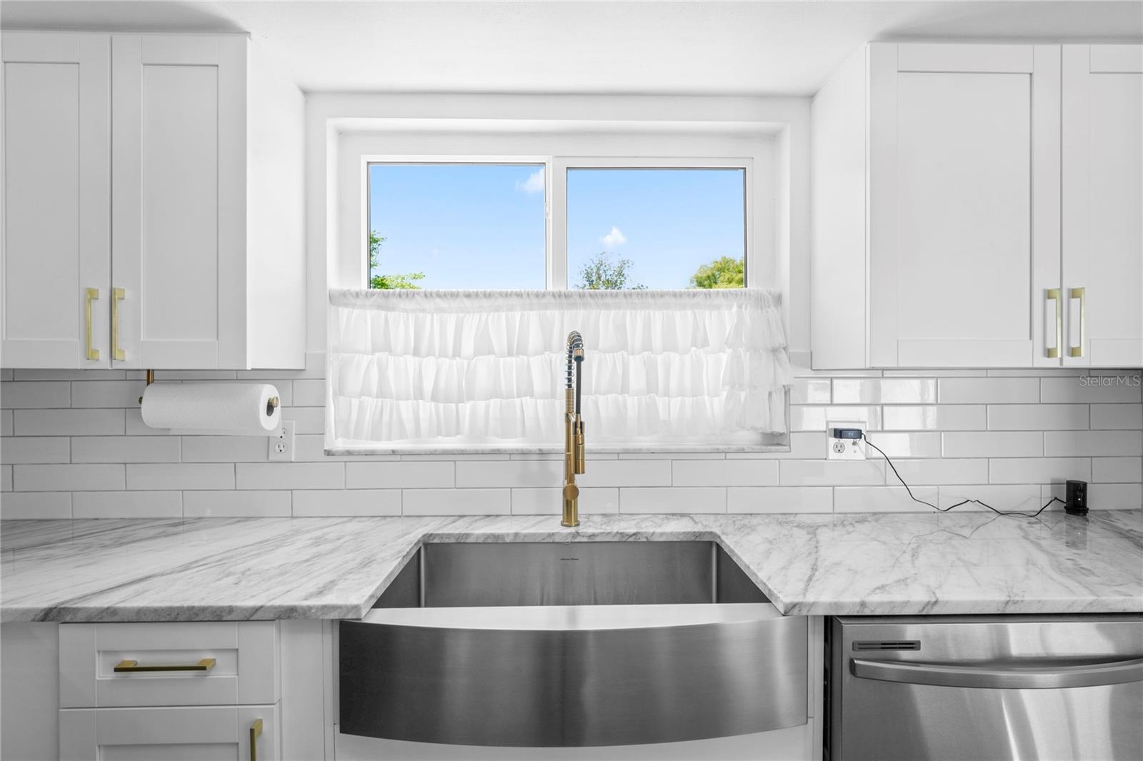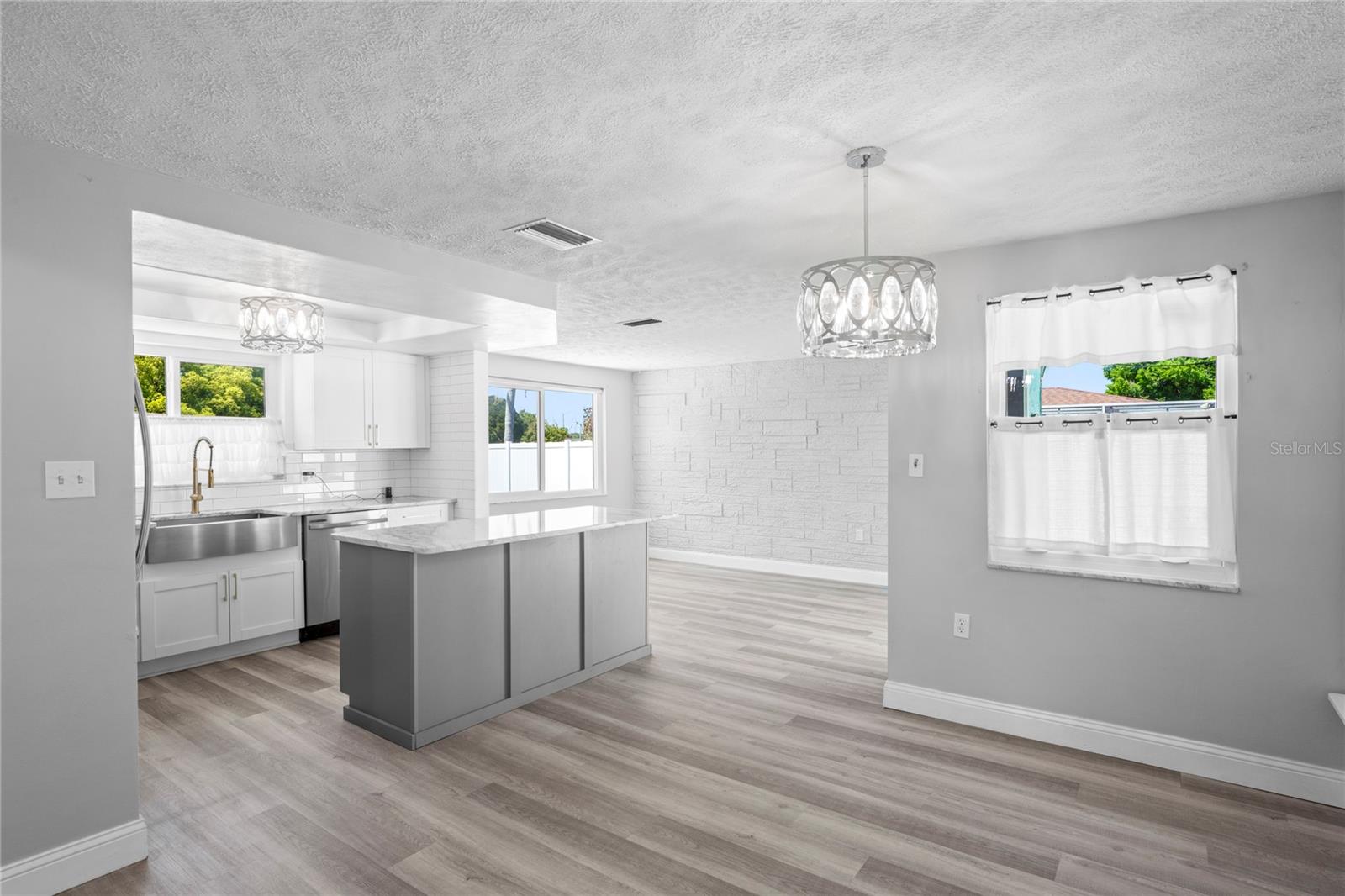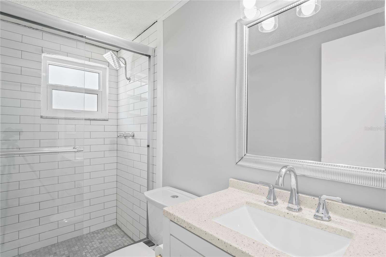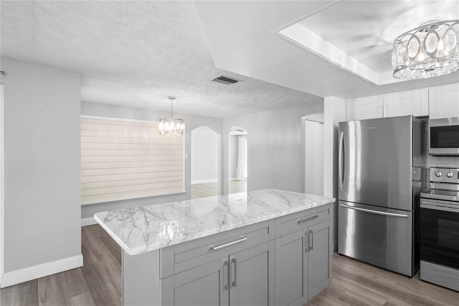 This residence is move-in ready, with an array of exceptional features. A brand-new roof, newer AC, and windows complement the comprehensive remodel. Upon entering, the living room seamlessly transitions into the open kitchen, complete with white cabinetry, quartz countertops, counter height center island, and stainless-steel appliances including the refrigerator, microwave, range, dishwasher, and farm sink. The kitchen flows into the family room and dinette area, while the family room features expansive glass sliders leading to a covered porch. The interior is bathed in natural light. The primary bedroom features an expansive walk-in closet and convenient access to the full bathroom. Additional highlights include luxury vinyl flooring, upgraded lighting fixtures, and a low-maintenance backyard with brick pavers, beautiful landscaping and vinyl fencing making it very private and perfect for backyard parties and BBQs. The garage features a washer/dryer hookup, laundry sink and includes the appliances. Freshly painted outside. An extra side driveway accommodates guest parking. Ideally located near shopping centers, this property offers effortless access to various amenities. Schedule a viewing today.