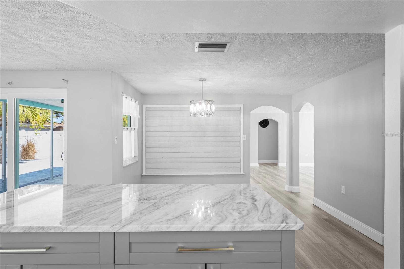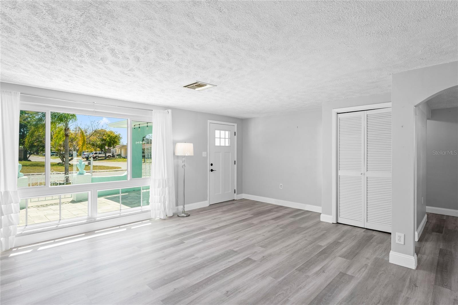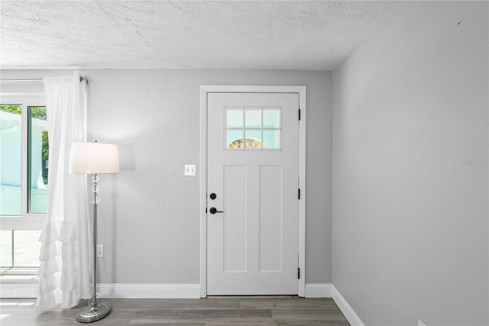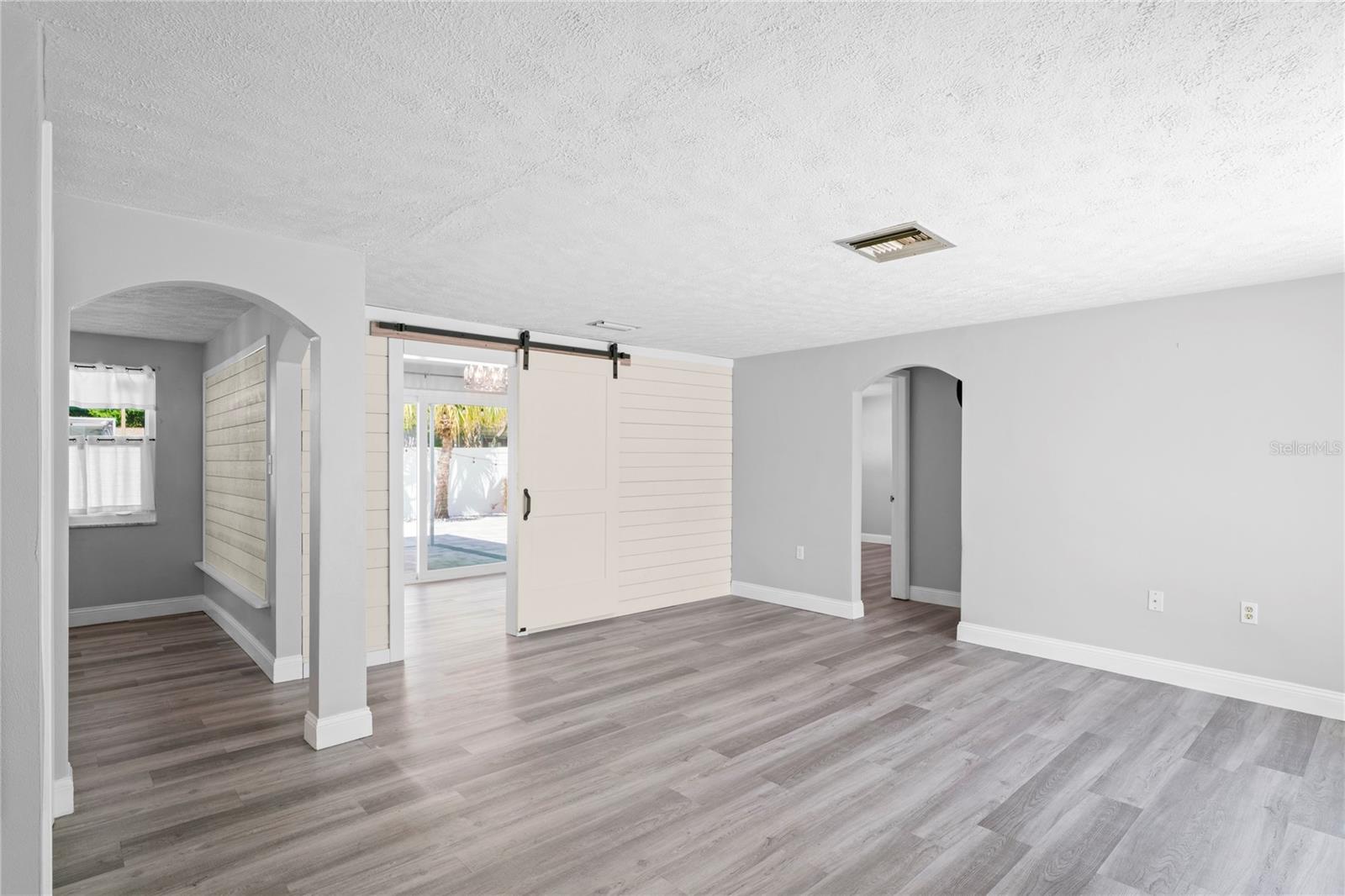 This residence is move-in ready, with an array of exceptional features. A brand-new roof, newer AC, and windows complement the comprehensive remodel. Upon entering, the living room seamlessly transitions into the open kitchen, complete with white cabinetry, quartz countertops, counter height center island, and stainless-steel appliances including the refrigerator, microwave, range, dishwasher, and farm sink. The kitchen flows into the family room and dinette area, while the family room features expansive glass sliders leading to a covered porch. The interior is bathed in natural light. The primary bedroom features an expansive walk-in closet and convenient access to the full bathroom. Additional highlights include luxury vinyl flooring, upgraded lighting fixtures, and a low-maintenance backyard with brick pavers, beautiful landscaping and vinyl fencing making it very private and perfect for backyard parties and BBQs. The garage features a washer/dryer hookup, laundry sink and includes the appliances. Freshly painted outside. An extra side driveway accommodates guest parking. Ideally located near shopping centers, this property offers effortless access to various amenities. Schedule a viewing today.