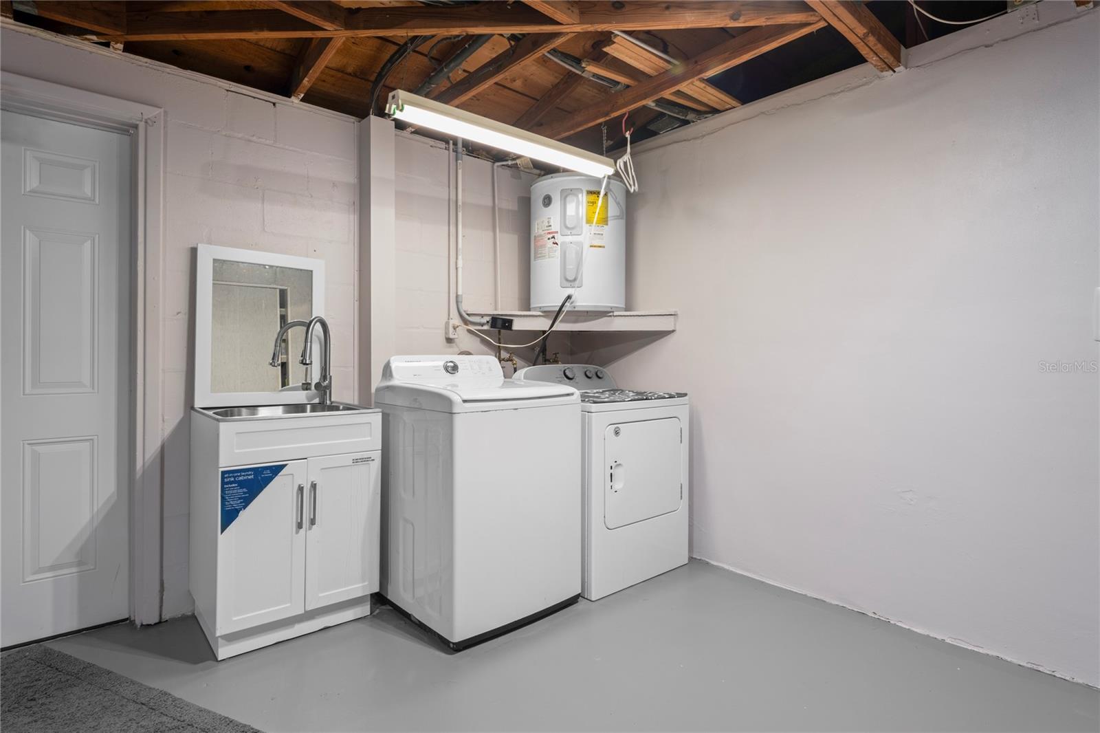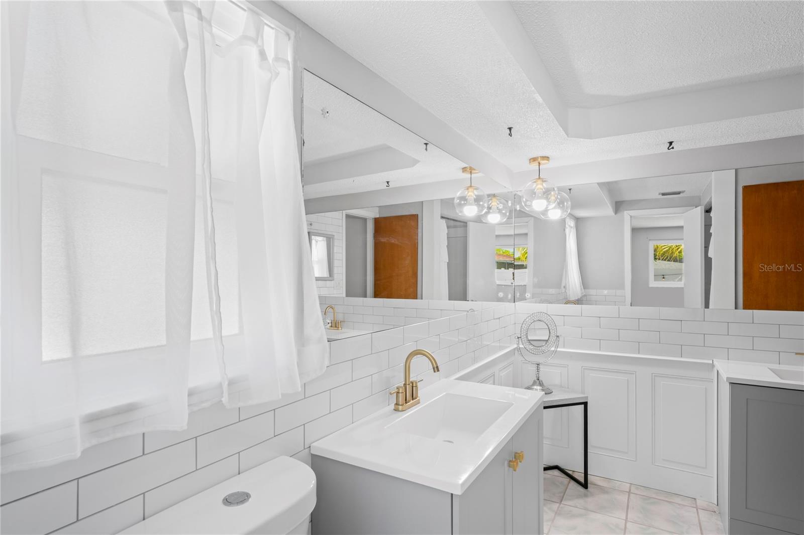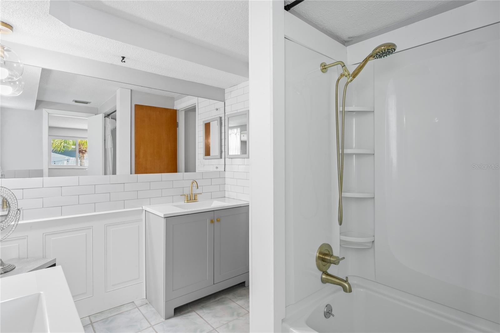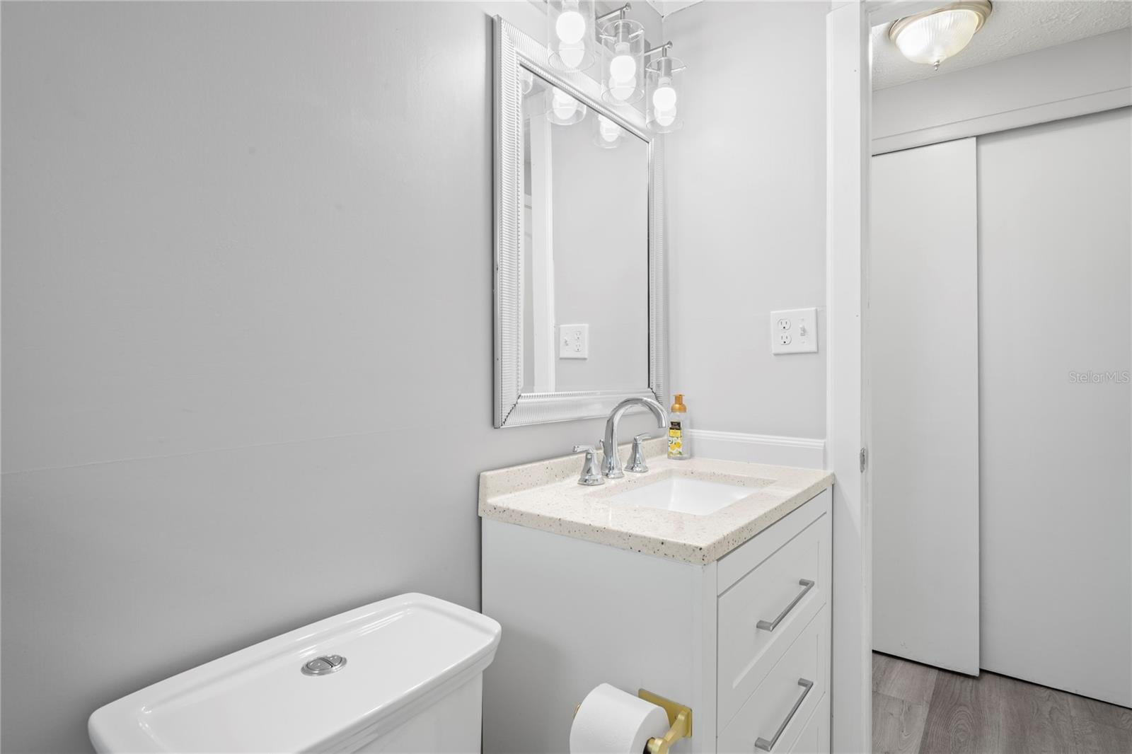 This residence is move-in ready, with an array of exceptional features. A brand-new roof, newer AC, and windows complement the comprehensive remodel. Upon entering, the living room seamlessly transitions into the open kitchen, complete with white cabinetry, quartz countertops, counter height center island, and stainless-steel appliances including the refrigerator, microwave, range, dishwasher, and farm sink. The kitchen flows into the family room and dinette area, while the family room features expansive glass sliders leading to a covered porch. The interior is bathed in natural light. The primary bedroom features an expansive walk-in closet and convenient access to the full bathroom. Additional highlights include luxury vinyl flooring, upgraded lighting fixtures, and a low-maintenance backyard with brick pavers, beautiful landscaping and vinyl fencing making it very private and perfect for backyard parties and BBQs. The garage features a washer/dryer hookup, laundry sink and includes the appliances. Freshly painted outside. An extra side driveway accommodates guest parking. Ideally located near shopping centers, this property offers effortless access to various amenities. Schedule a viewing today.