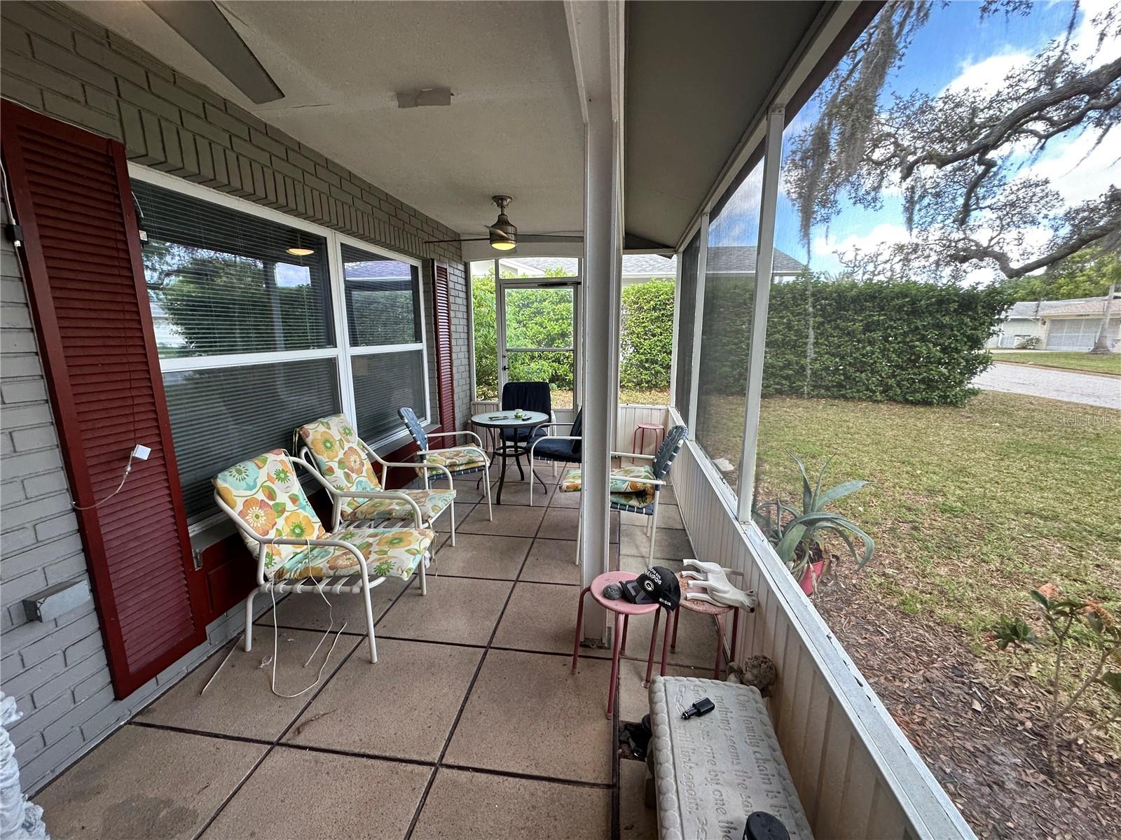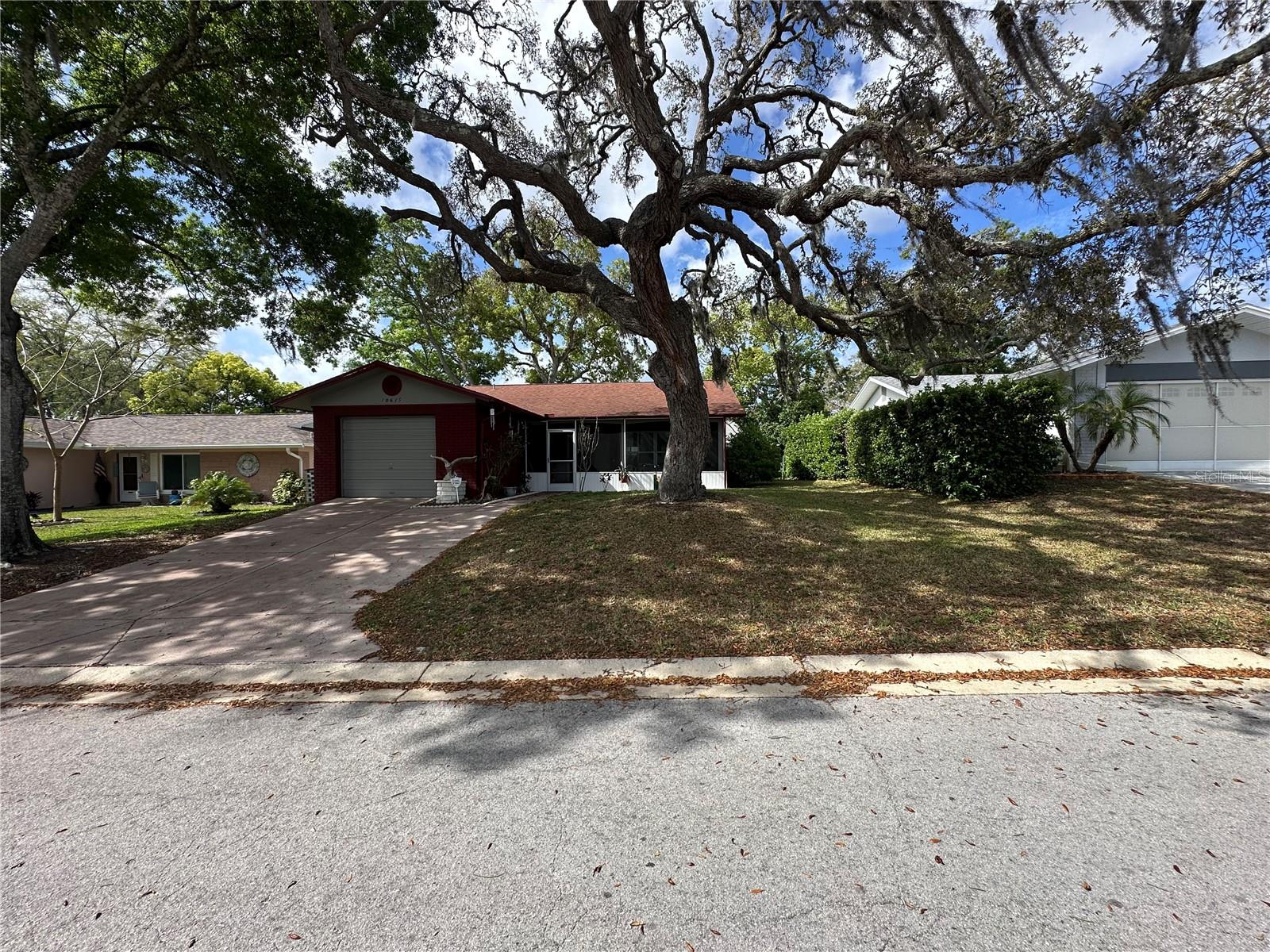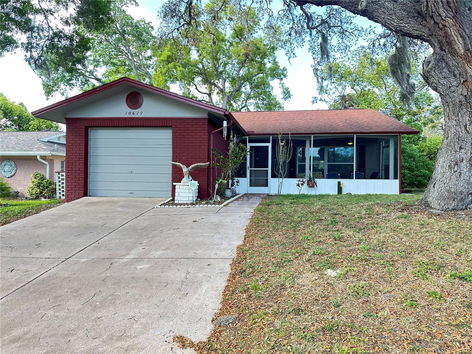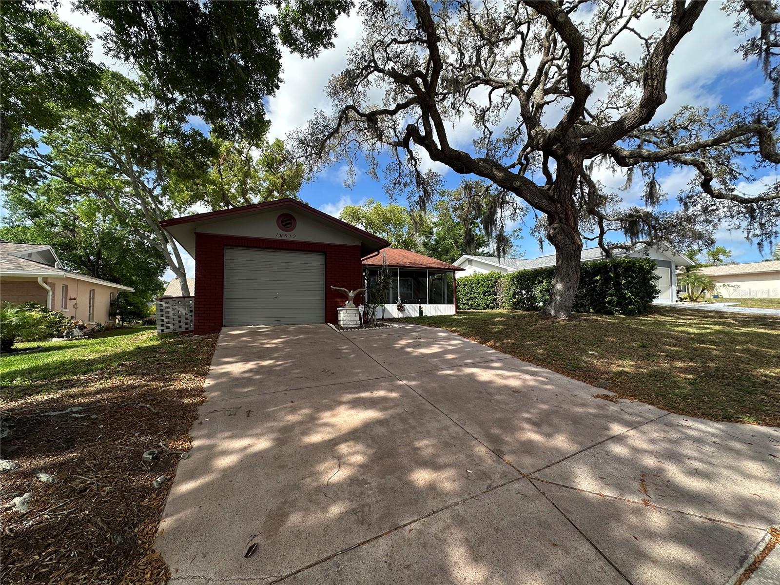 This well-maintained 2-bedroom, 2-bath home with an oversized 1-car garage is a must-see! Featuring a blend of tile and laminate flooring throughout, an eat-in kitchen with updated countertops, and a spacious walk-in closet, this home offers both comfort and functionality. Step onto the charming front porch or relax in the fenced-in backyard, shaded by mature trees including a stately grandfather oak. The dining room is highlighted by a beautiful bay window that fills the space with natural light, while the fully enclosed, heated and air-conditioned lanai provides additional year-round living space. Located in a desirable 55+ deed-restricted community with low monthly HOA fees, residents enjoy access to a lakeside clubhouse with stunning views and a vibrant social atmosphere. Amenities include a heated pool with water exercise classes, relaxing spa, tennis and pickleball courts, shuffleboard, bocce, a billiards room, and more. The community is known for its active lifestyle and friendly neighbors. Conveniently located near shopping, hospitals, and beautiful Gulf Coast beaches, and just 45 minutes from both Tampa and St. Pete airports—this home offers the perfect blend of peaceful living and accessibility.
