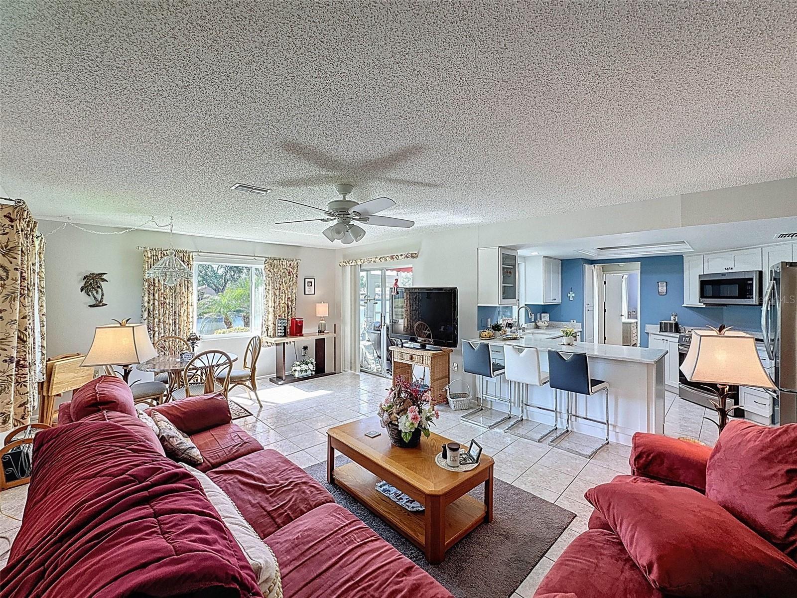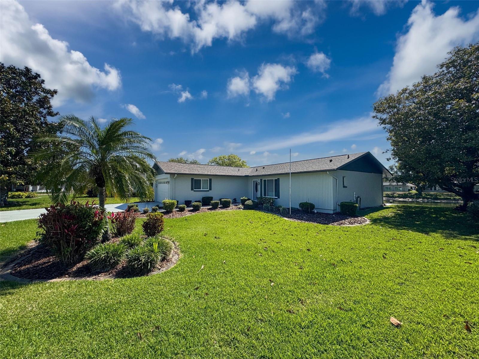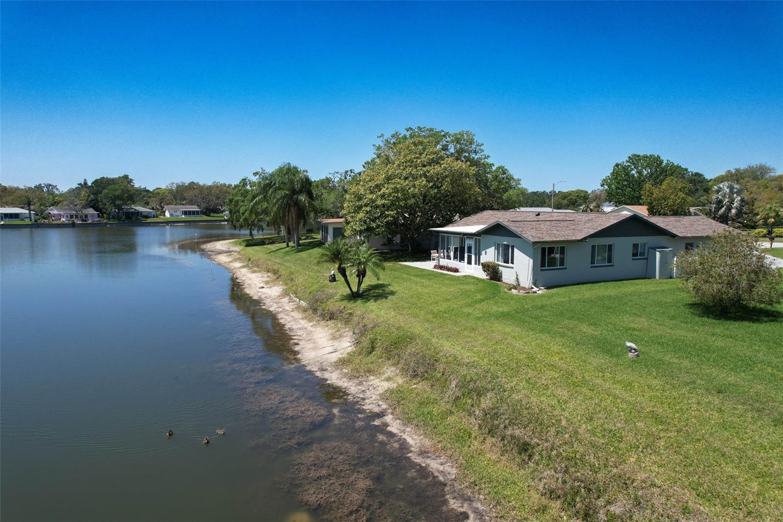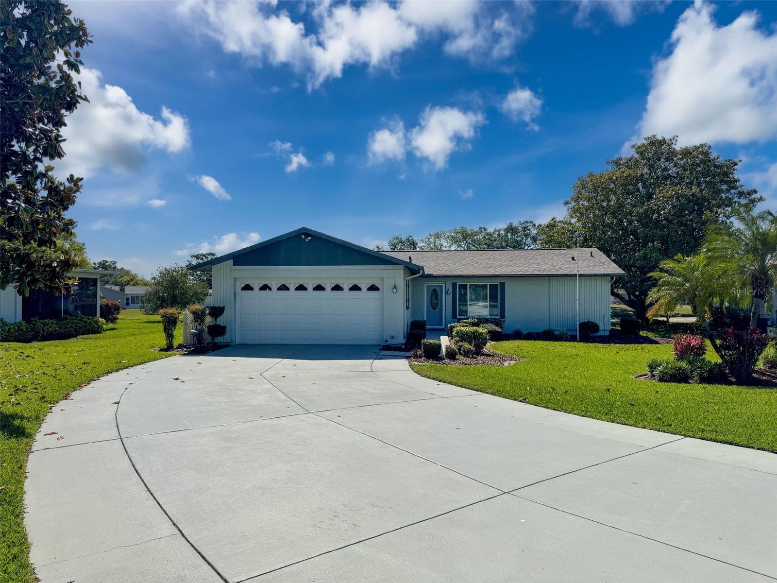 Timber Oaks Jewel! Beautifully updated and impeccably maintained 2 bedroom home with 2 full baths and oversized 2 car garage. Possibly the best location in Timber Oaks, with lake frontage, and on a quiet cul de sac. Relax lakeside and enjoy the serenity of waterfront life in this active 55+ community, complete with Community Pool and Clubhouse, Tennis and loads of activities to get involved!! First, tasteful landscaping and a sweeping driveway welcomes you home. Through the glass front door, you come inside the home into a warm living room /dining area. The kitchen is completely remodeled, with stunning cabinets and stainless appliances. The convenient breakfast bar is a great place to sit and chat while meals are prepped. Chill out in the family room and enjoy coffee overlooking the lake and watch the birds light on the surface. The bedrooms are generously sized with an elegant en suite bath in the primary bedroom. The guest bedroom and bath are set up for privacy when guests stay over, and inside laundry room makes that chore easy. The enclosed lanai provides the best vantage point to look out on the lake and revel in the Florida lifestyle!! And, here's the nuts n bolts...Roof is 2.5 years new, HVAC only 5 years, and water heater replaced 3 years ago!! Come and live your best life in Timber Oaks!!