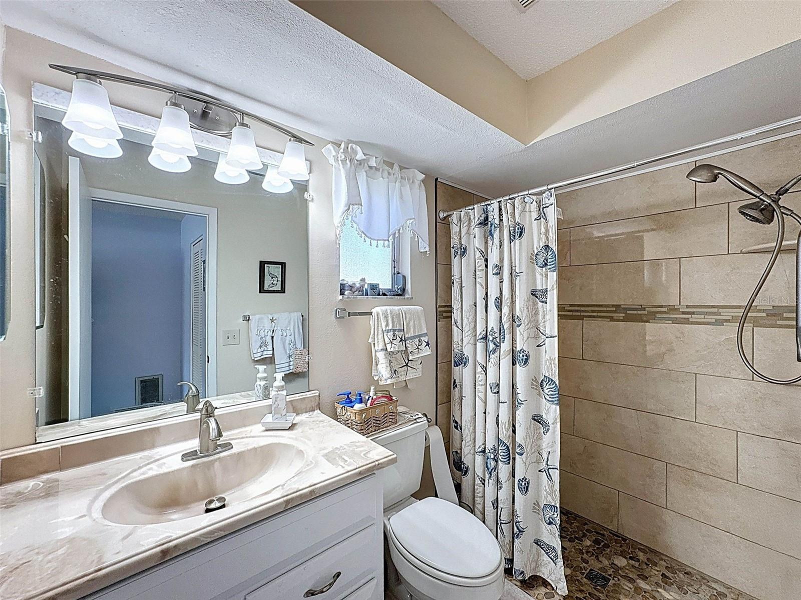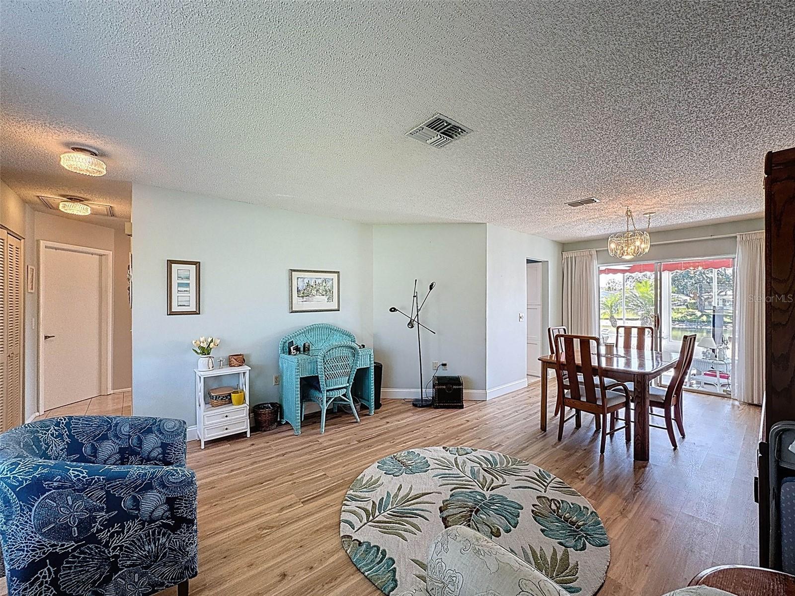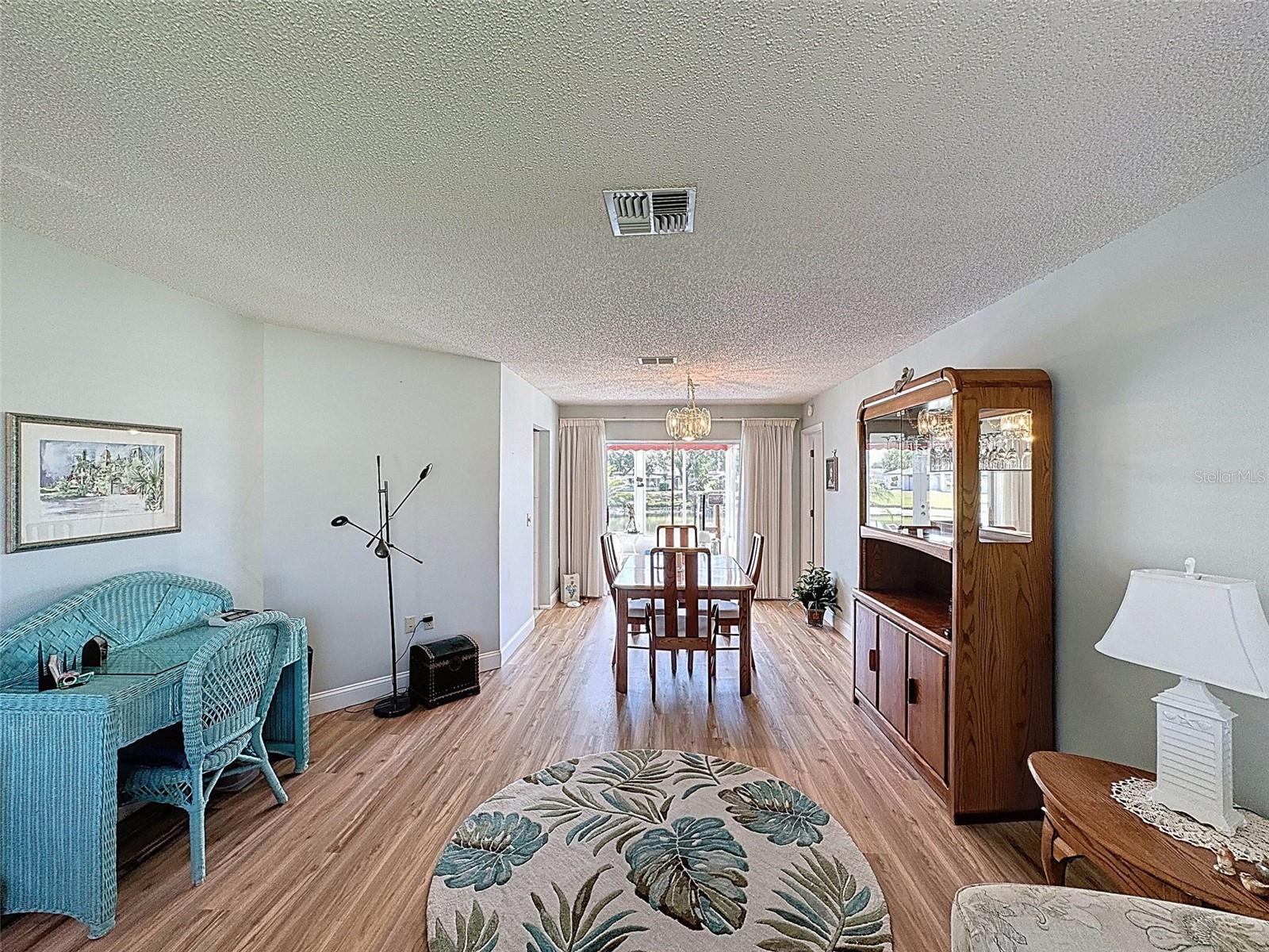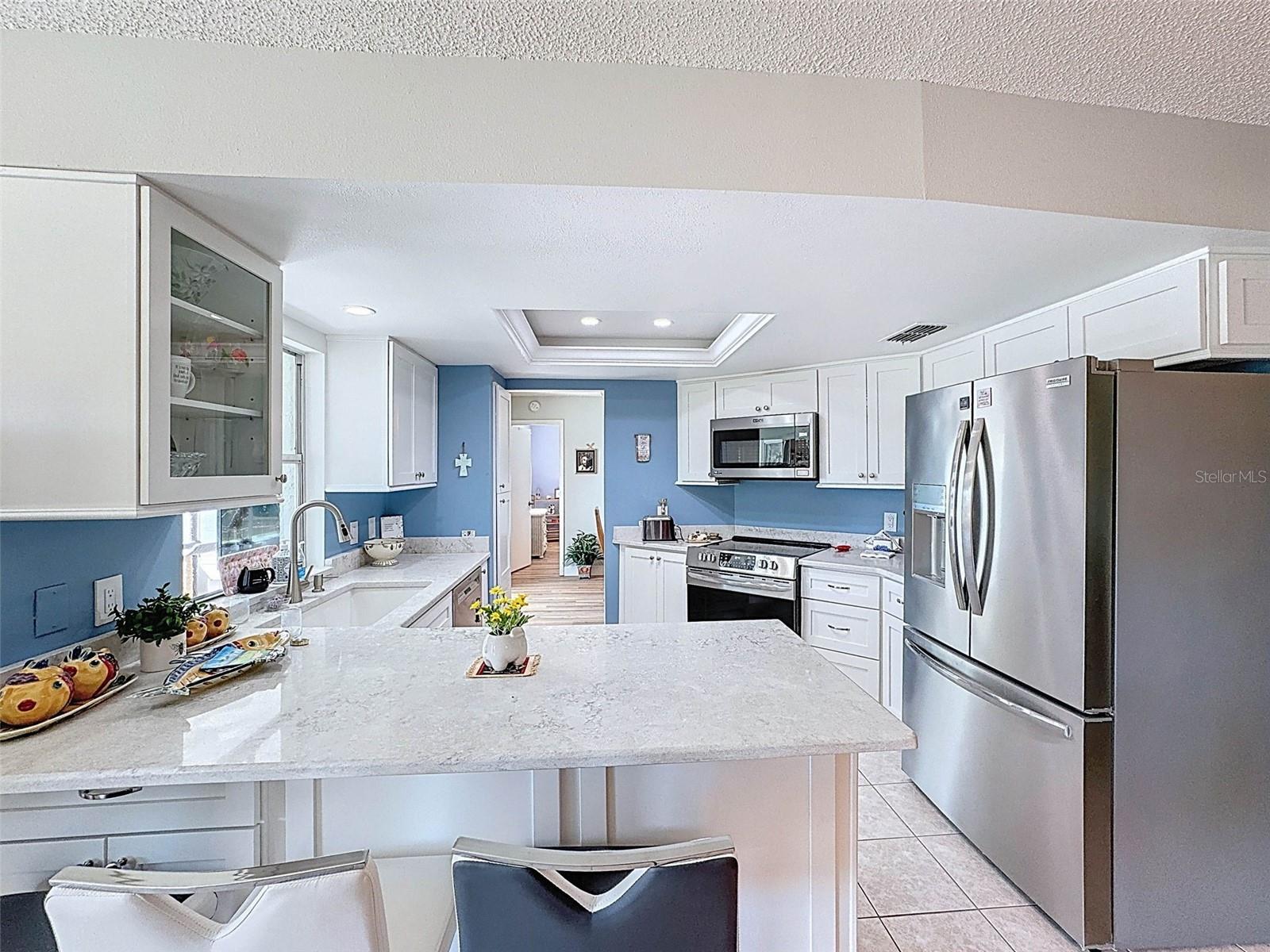 Timber Oaks Jewel! Beautifully updated and impeccably maintained 2 bedroom home with 2 full baths and oversized 2 car garage. Possibly the best location in Timber Oaks, with lake frontage, and on a quiet cul de sac. Relax lakeside and enjoy the serenity of waterfront life in this active 55+ community, complete with Community Pool and Clubhouse, Tennis and loads of activities to get involved!! First, tasteful landscaping and a sweeping driveway welcomes you home. Through the glass front door, you come inside the home into a warm living room /dining area. The kitchen is completely remodeled, with stunning cabinets and stainless appliances. The convenient breakfast bar is a great place to sit and chat while meals are prepped. Chill out in the family room and enjoy coffee overlooking the lake and watch the birds light on the surface. The bedrooms are generously sized with an elegant en suite bath in the primary bedroom. The guest bedroom and bath are set up for privacy when guests stay over, and inside laundry room makes that chore easy. The enclosed lanai provides the best vantage point to look out on the lake and revel in the Florida lifestyle!! And, here's the nuts n bolts...Roof is 2.5 years new, HVAC only 5 years, and water heater replaced 3 years ago!! Come and live your best life in Timber Oaks!!