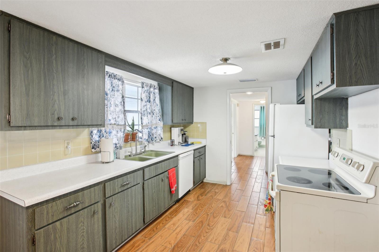 DISCOVER POTENTIAL IN PORT RICHEY! Welcome to this charming three-bedroom, two-bathroom home nestled on a generous corner lot in the heart of Port Richey. This property offers incredible renovation potential for buyers looking to put their personal stamp on a solid foundation. Step inside to appreciate the open floor plan, beautifully enhanced by porcelain wood-look tile installed in 2020 throughout all living areas. Two bedrooms feature brand-new carpet, creating cozy retreats within this inviting space. Natural light streams through numerous sliding glass doors, creating a bright, airy atmosphere throughout the day. The large lanai extends your living space outdoors, perfect for enjoying Florida's pleasant weather while entertaining friends or simply relaxing with your morning coffee. One of the property's best features? NO HOA!- this means complete freedom to personalize your home and landscape as you wish. Large corner lot provides loads of room to play for the family or fur babies. This residence shines with recent upgrades that provide peace of mind for years to come. The air conditioning system was replaced in 2021, followed by a new dryer in 2022. The water heater and dishwasher were both updated in 2023, and the washer is fresh from 2024. Talk about move-in ready! The durable metal roof provides long-lasting protection. With its combination of thoughtful updates, spacious layout, and excellent location, this home offers tremendous value at an attractive price point. Located just minutes from all shopping, dining, schools and entertainment, your search for the perfect balance of comfort, convenience, and potential ends here!
