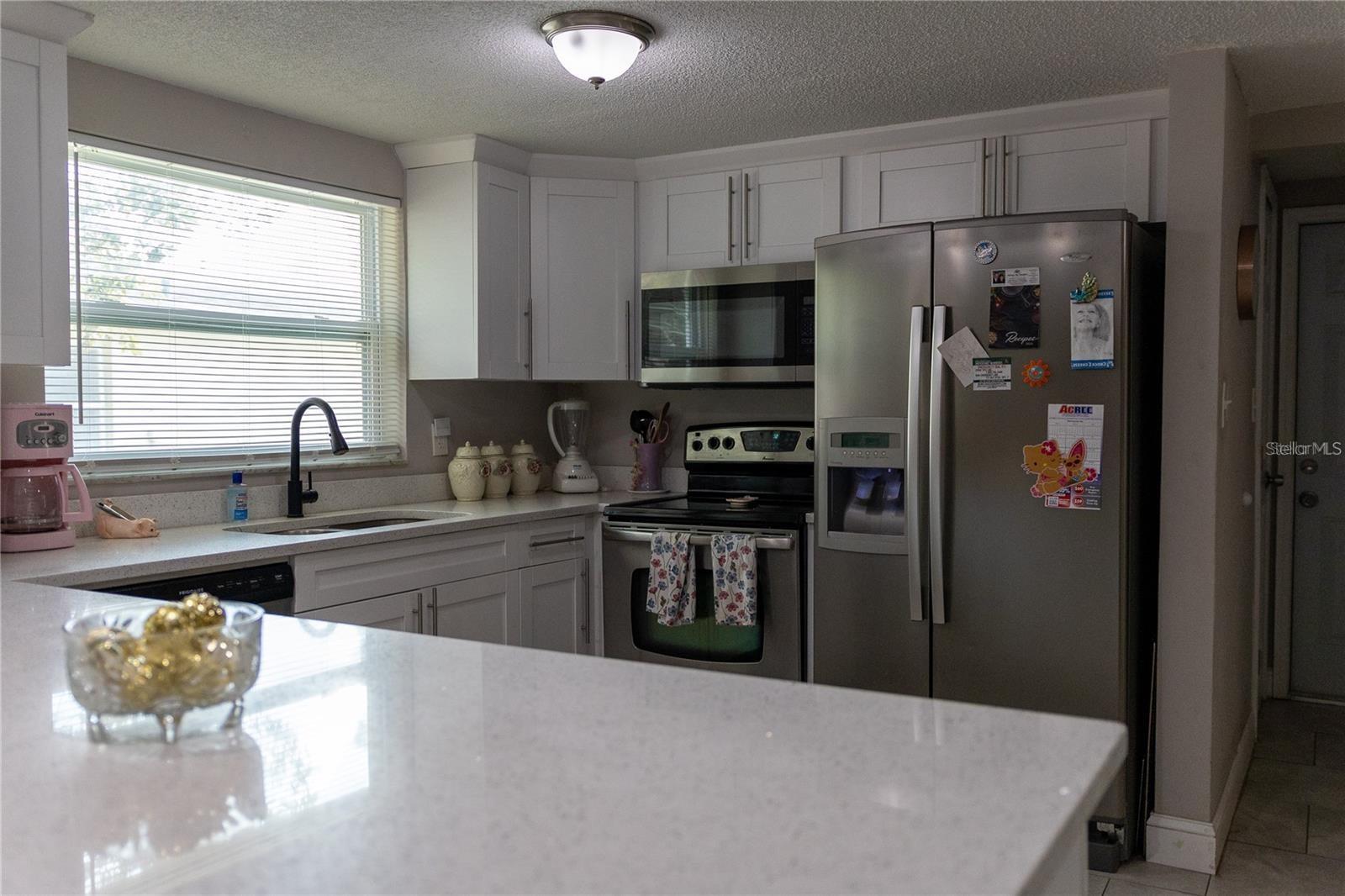 Welcome to this move-in ready gem in the highly sought-after neighborhood! This beautifully updated 2-bedroom, 2-bathroom home offers a large split plan home 1,492 sq ft of thoughtfully designed living space complete with an enclosed patio that can easily be converted into a third bedroom with minimal effort. Step inside and enjoy a bright, open layout featuring a fully renovated kitchen with brand-new cabinets, granite countertops, and stainless steel appliances. Stylish tile flooring runs throughout the home, complemented by fresh interior paint and tastefully updated bathrooms with sleek tile finishes. Energy-efficient new windows help keep utility costs low, while the versatile flex space—upgraded with durable plank flooring—offers the perfect spot for a home office, playroom, den, or entertaining area. Outside, enjoy fresh landscaping, lush new sod, and a brand-new privacy fence, creating a beautiful and functional backyard space. The roof, A/C, and all appliances are under 5 years old, giving you peace of mind with no major expenses on the horizon. Just bring your toothbrush—everything else is done! Schedule your private tour today and see how easily this home could be the perfect fit for your family. Stop the Car , Come see your next Home!