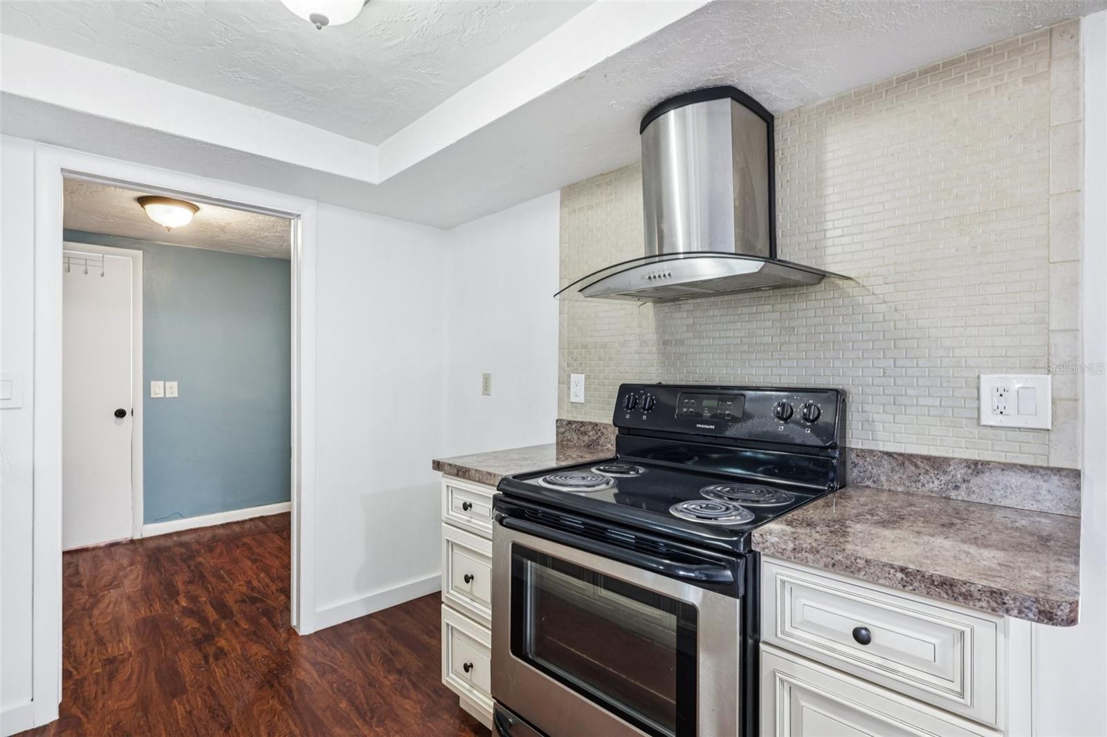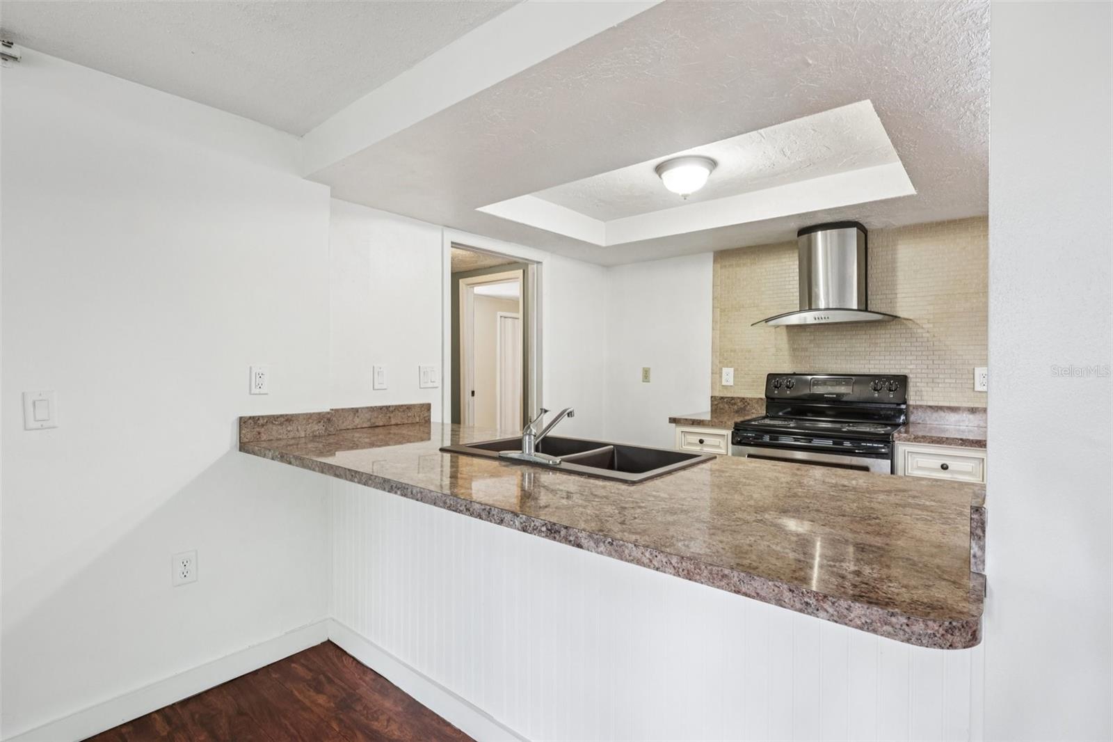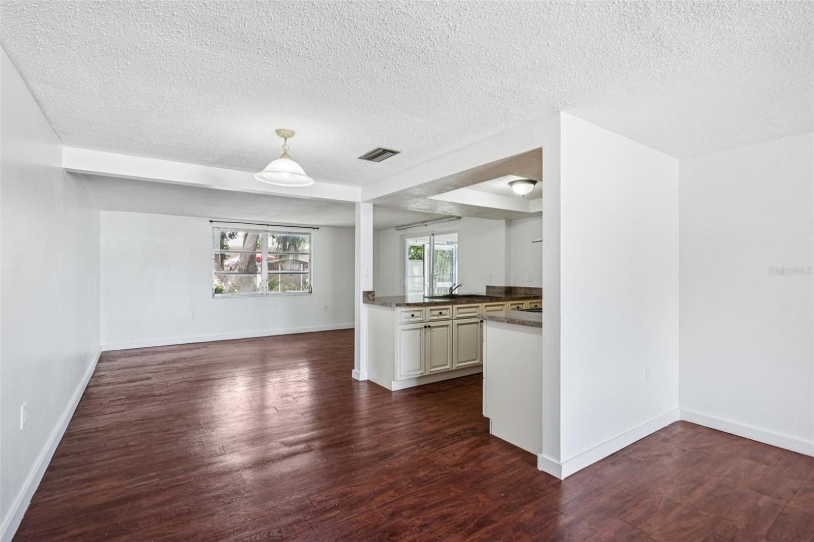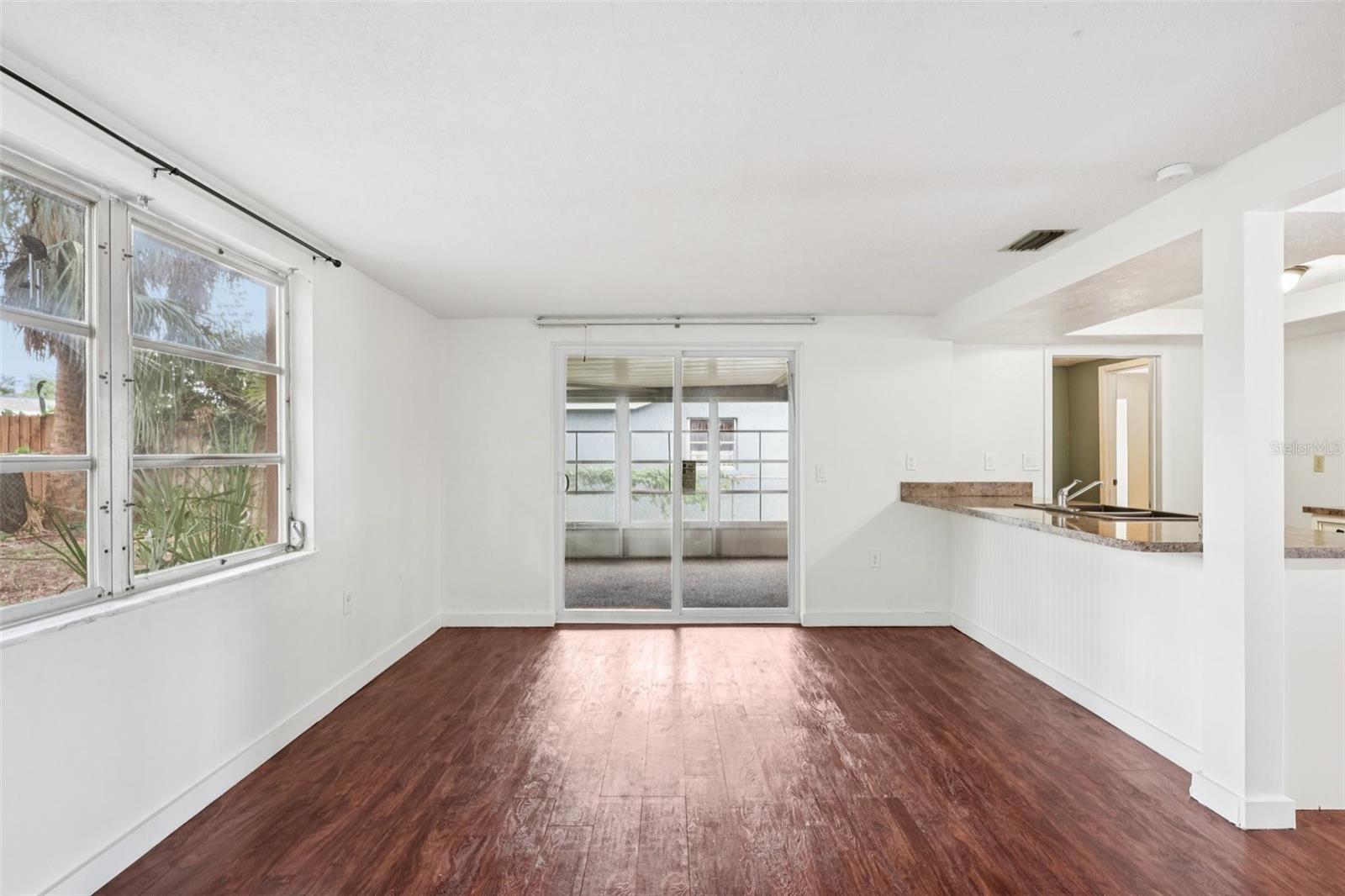 This beautiful 2-bedroom, 1.5-bathroom home is exceptionally clean, well-loved and waiting for its new owner. Walk in the front door and it feels like home. The Vinyl wood plank flooring flows through out this home, rich in color and easy to maintain. The open floor plan is desirable as it gives many options for larger furniture, and flexibility when designing your personal living space. The centrally located gally style kitchen offers plenty of storage with updated cabinetry, counter tops, tiled back splash, designer kitchen sink, range and hood. There is an inside laundry room, that has additional space for storage. Bedrooms 1 and 2 have plenty of room for large beds, furniture and room to spare. The full bathroom separates the two bedrooms, has a single vanity, and a bathtub/shower combo. The garage has been converted into a inside bonus room, that can double as a home office, play area or an additional space for guests. Open the garage door from the outside and you have storage for your lawn mower, yard tools and more. Additional concrete was poured to more than double the width of the driveway for ample parking, with an additional walkway into the fenced in back yard. There is a large covered and screened Florida room out back, plus an additional concrete patio to further enjoy the semi-private back yard. The location is fantastic, extremely close to dining, entertainment, shopping, medical, colleges, area beaches, beautiful downtown New Port Richey and even an A rated private school. This home is high and dry located in flood zone X. Call today for your private tour, and if you have any questions – Just ask.