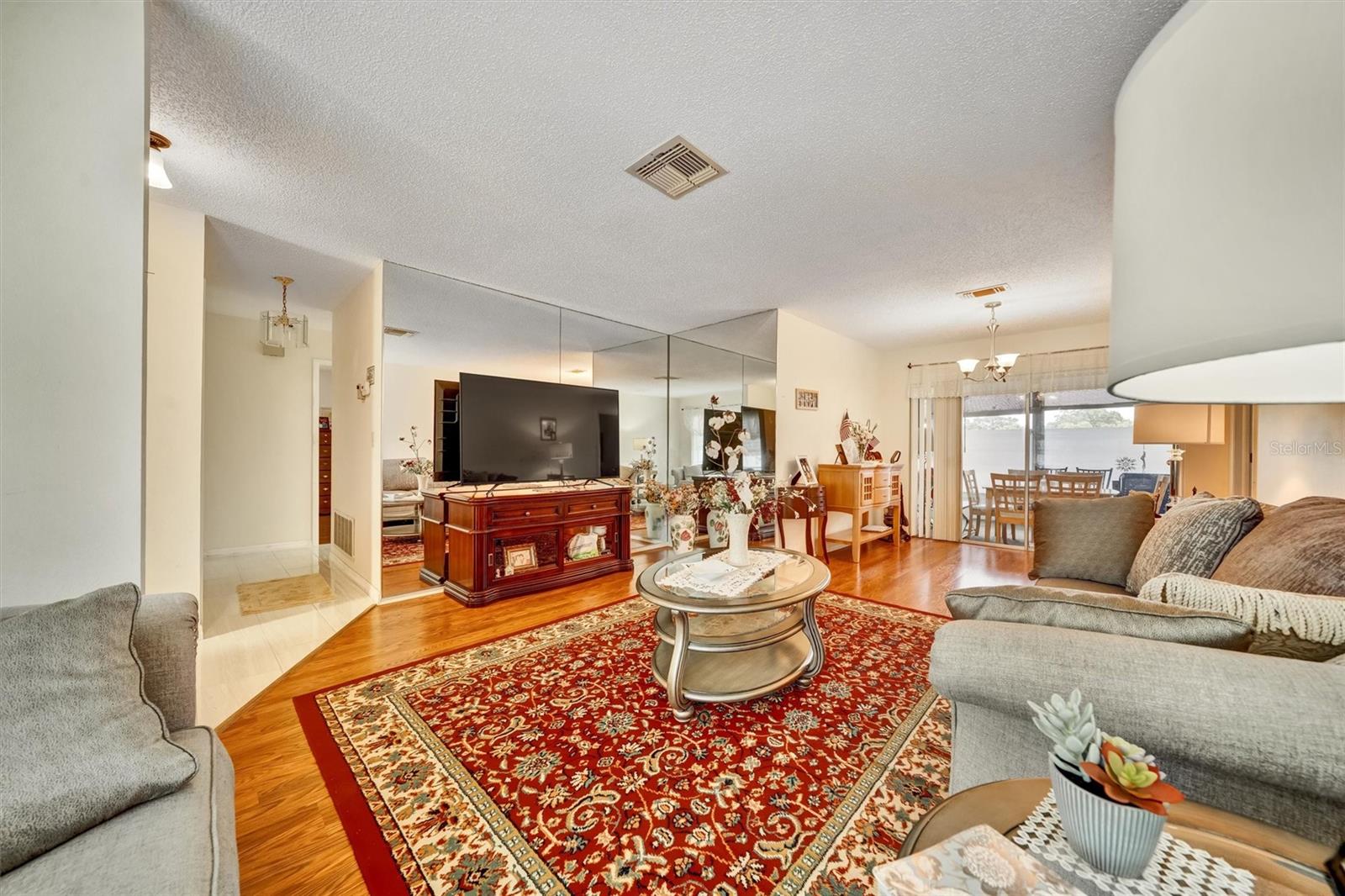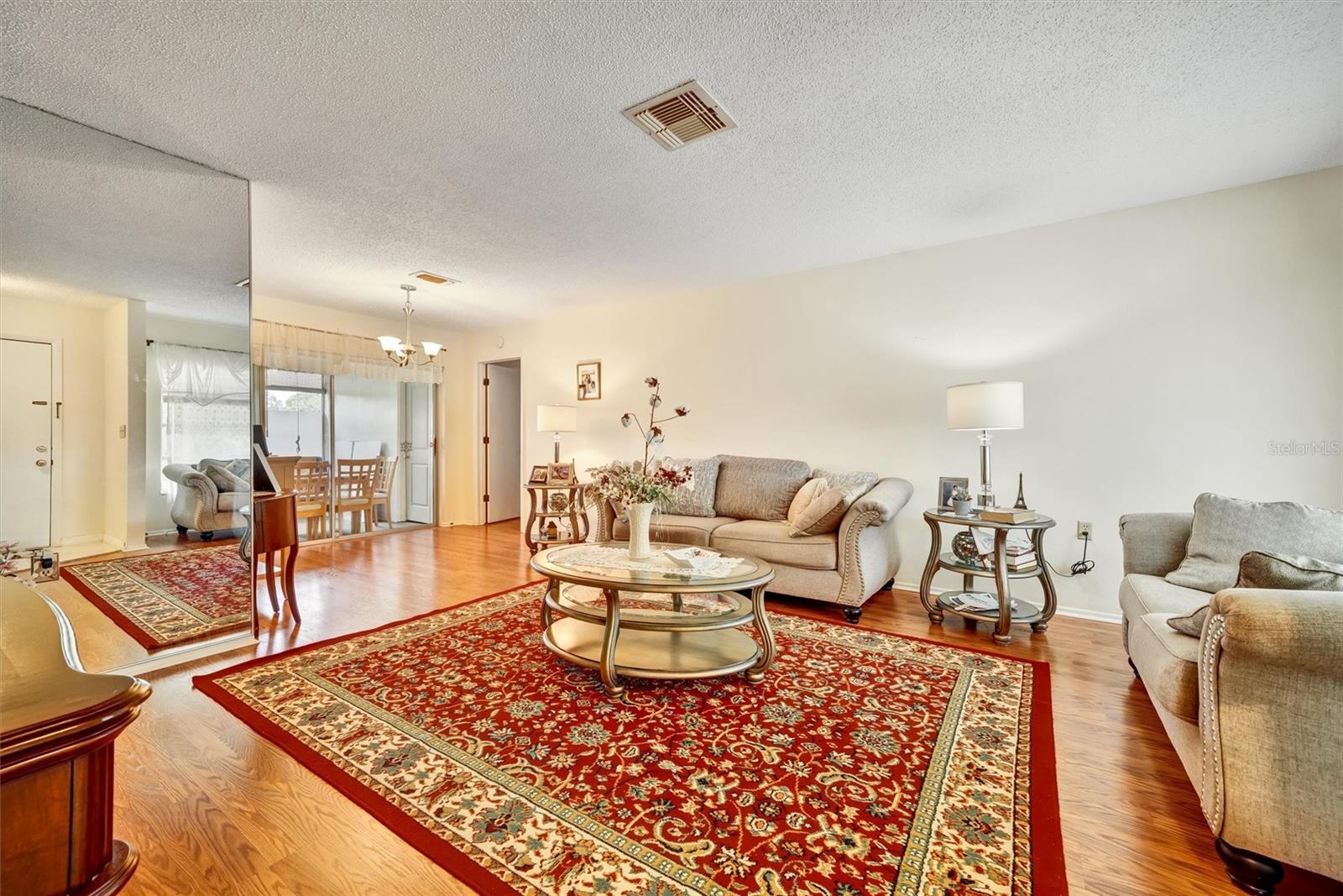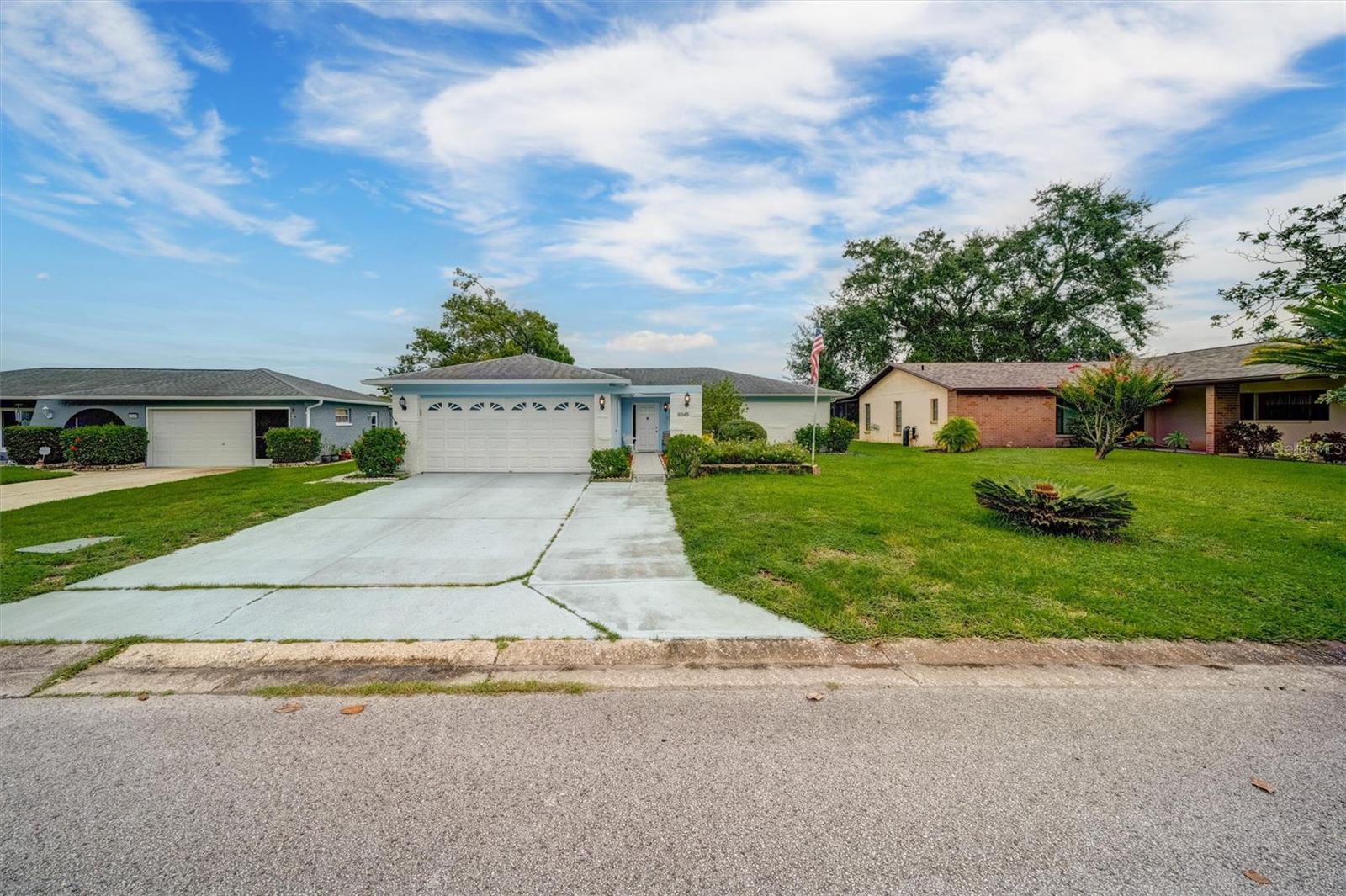 Welcome to TIMBER OAKS, 55+ Community. This one-story BLOCK Single house with no rear neighbors has 2 bedrooms, 2 baths, and a 2-Car Garage. Tile flooring throughout the kitchen, dining area and bathrooms. Wood laminate in bedrooms and living room. Kitchen and baths are completely remodeled. Garage is set up with storage and room for two cars. The Timber Oaks Community has a clubhouse which hosts many activities, as well as a pool, tennis / pickle ball courts, bocci and shuffleboard courts. All the amenities for a $55 per month HOA fee. Come see this home today!