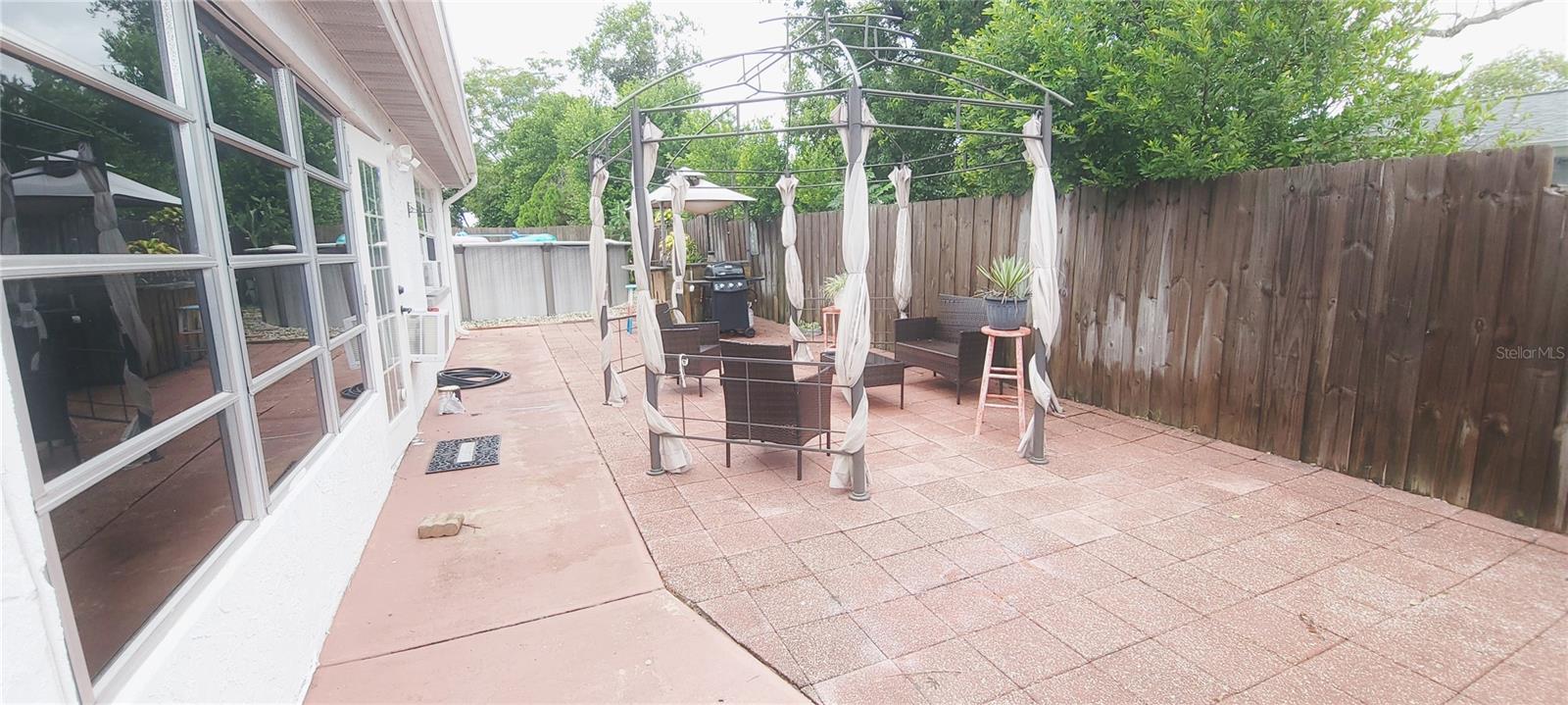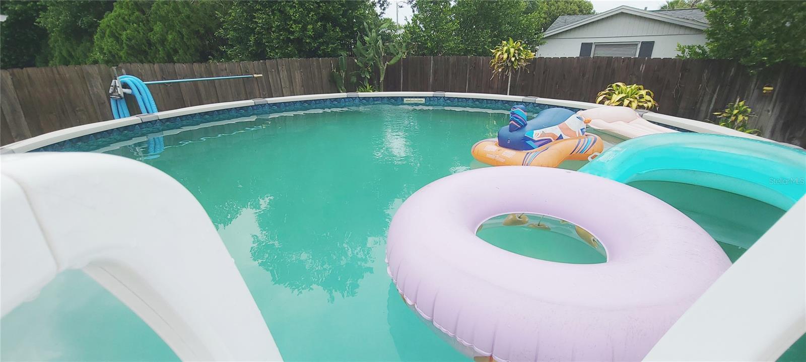 Picture a sun-drenched day just beginning for your family as you pull up to your new home in Port Richey. You had been looking for days, but the moment you saw the house on the fenced corner lot with its tropical landscaping, you knew the journey was worth it. Inside, the house felt like a breath of fresh air. The open-concept living area welcomes you with tile floors and beachy colors that amplify the natural light streaming in. You marvel at the updated kitchen, with its gleaming stainless steel appliances and smooth exotic granite countertops. This would be the heart of the home, where countless family dinners and holiday meals would be prepared. The split-bedroom floor plan allows for privacy. Each room is a blank canvas for their new lives. But the real magic was out back. The rear of the home opens to a large, enclosed lanai, a hallmark of Florida living. This is more than just a porch; it is a sanctuary where you can relax and enjoy yourself. A spacious open patio extends from the lanai to the pool area with a tiki bar and room for ample patio seating, and perfect for grilling and outdoor dining. The main attraction is a large, above-ground pool, always sparkling in the sunlight. You can immediately begin planning your summer days, imagining cannonballs and splash fights under the Florida sun. The fence surrounding the yard provided a sense of privacy and safety, ensuring your little slice of paradise is truly your own. In the evening, you can gather on the lanai. As the sun begins to set, casting a warm orange glow across the sky, you can already see your future unfolding. This house is more than just three bedrooms and two baths; it is a home with a large lanai, an open patio, and an above-ground pool—a place where you could truly begin your new life.