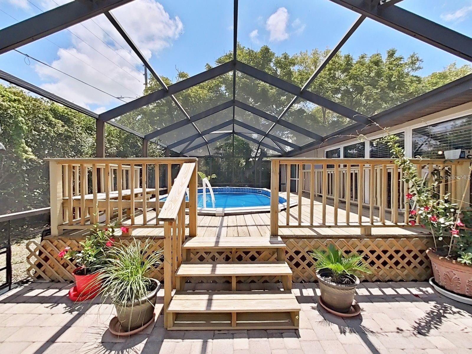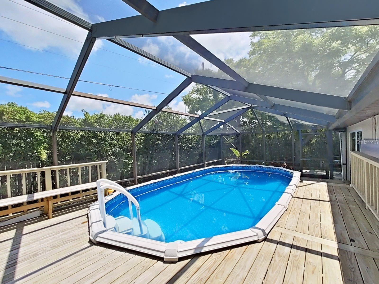 NEW PRICE!!! This is a very well maintained 2 bedroom, 2 bathroom 1 car garage home located in San Clemente East in Port Richey. Extras include a covered screen enclosed pavered front porch. A great way to start your day with a cup of coffee or end the day with what ever tickles your fancy. At the rear of the property Is a partially covered screened patio with above ground pool in caged screened area with wooden deck. Exterior lights allow for night swimming and other entertainment. This can be your favorite place to escape after a hectic day. Your little paradise. Back yard is also fenced for privacy. . The inside of home has also been well maintained. Updated double paned windows, newer newer appliances and ceiling fans. Flooring is ceramic tile and laminate. Florida room has central heat and air. The AC is brand new, installed in . Updated windows and quality ceramic tile. Has door out to the patio / pool area. This would make an excellent office or craft room etc.. Both Bedrooms also have updated windows and fans. Bathrooms have newer fixtutres and tile flooring. Washer and dryer are located in the garage which also has a sink and faucet. NO FLOOD insurance needed. Located down the street from shopping, restaurants and a short trip to the prettiest beaches around. Few minutes drive to historic down town New Port Richey and Sims Park where something is always happening on the weekends! As well attractive Tarpon Springs with its Sponge Docks, Anclote Beachy, Key Vista Park and many more attractions! Short drive to Tampa International Airport. Come see it today!