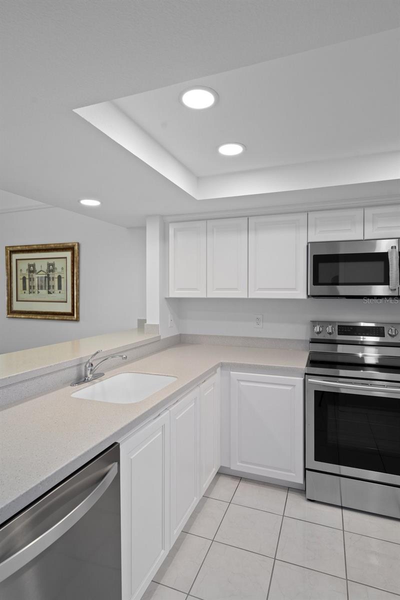 PENTHOUSE with DIRECT GULF OF MEXICO FRONTAGE. Gorgeously remodeled and FURNISHED, top floor unit in the sought after SAND PEBBLE community. This unit has been newly remodeled and is kept in immaculate condition. Gorgeous kitchen with solid surface counter tops and stainless appliances. Pass through to dining room. Built in display cabinets in dining room (under pass through). Great room with vaulted ceiling, skylight and plant shelf. Lanai has been enclosed to add additional air conditioned square footage (1025 base + lanai area= 1103sf heated). Direct, Southwest view of the Gulf of Mexico from kitchen, dining room, enclosed lanai and master suite. North east view of the water from the kitchen and guest bedroom. Master suite has a HUGE closet and En suite bath with new vanity, tops and updated walk in shower. Split bedroom with Guest bedroom toward the front of the unit Guest bath with new vanity, tops and updated tub/shower. Window in Master bedroom and sliders were replaced by previous owner. Tile in main area, kitchen and baths, carpet in each bedroom and on enclosed lanai. In unit washer and dryer. AC 2019, Hot water heater 2021. Crown Molding in great room and bedrooms. One reserved parking space UNDER BUILDING. One storage locker under the building. Roof replaced in 2022. RV/Boat/Kayak storage upon availability for an extra fee. Monthly fee includes: escrows for roof, escrows for exterior maintenance, landscaping, maintenance of all master amenities, 24 hour gate guard, manager, insurance on building (not interior of unit), flood insurance on building (not interior of unit), water/sewer, trash, basic cable and WIFI. Close to many waterfront restaurants, Historic Downtown New Port Richey, The Hacienda hotel, restaurants, breweries, shopping, night life, Simms Park (concerts, festivals), public beaches/parks, medical, shopping, water activities, about 20 min to Tarpon Aquarium and Tarpon Sponge Docks, approx 45 minutes to Caladesi Island and Honeymoon island, approx 60 min Clearwater Beach, approx 60 min to Tampa airport, Tampa Cruise Port, Theme parks, Sports arenas, Fine Dining and Theatre. NO PETS. NO SMOKING. Not age restricted. **AUDIO AND VIDEO MONITORING INSIDE UNIT**