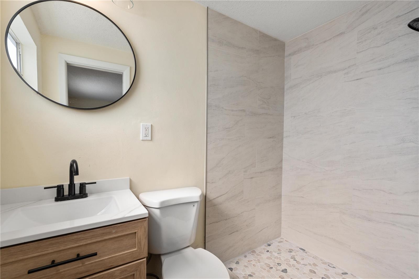Come home to this newly renovated 2 bedroom, 2 bathroom 1 car garage home in the heart of Port Richey. All new kitchen and bathrooms, new laminate flooring, fresh paint in and out AND a NEW ROOF in 2025. Entering the home is a spacious living room, dining room combination. The kitchen has all new cabinets, countertops, stone backsplash and stainless steel appliances. There is a screened and covered patio that goes out to a fenced backyard with storage shed. The primary suite has a private bath that has been completely redone with a tile shower, toilet, vanity and all new fixtures. The primary also has a walk in closet. The second bedroom utilizes the second bathroom/guest bathroom and has also been completely redone. This home is turnkey ready for you to move in before the Holidays!
