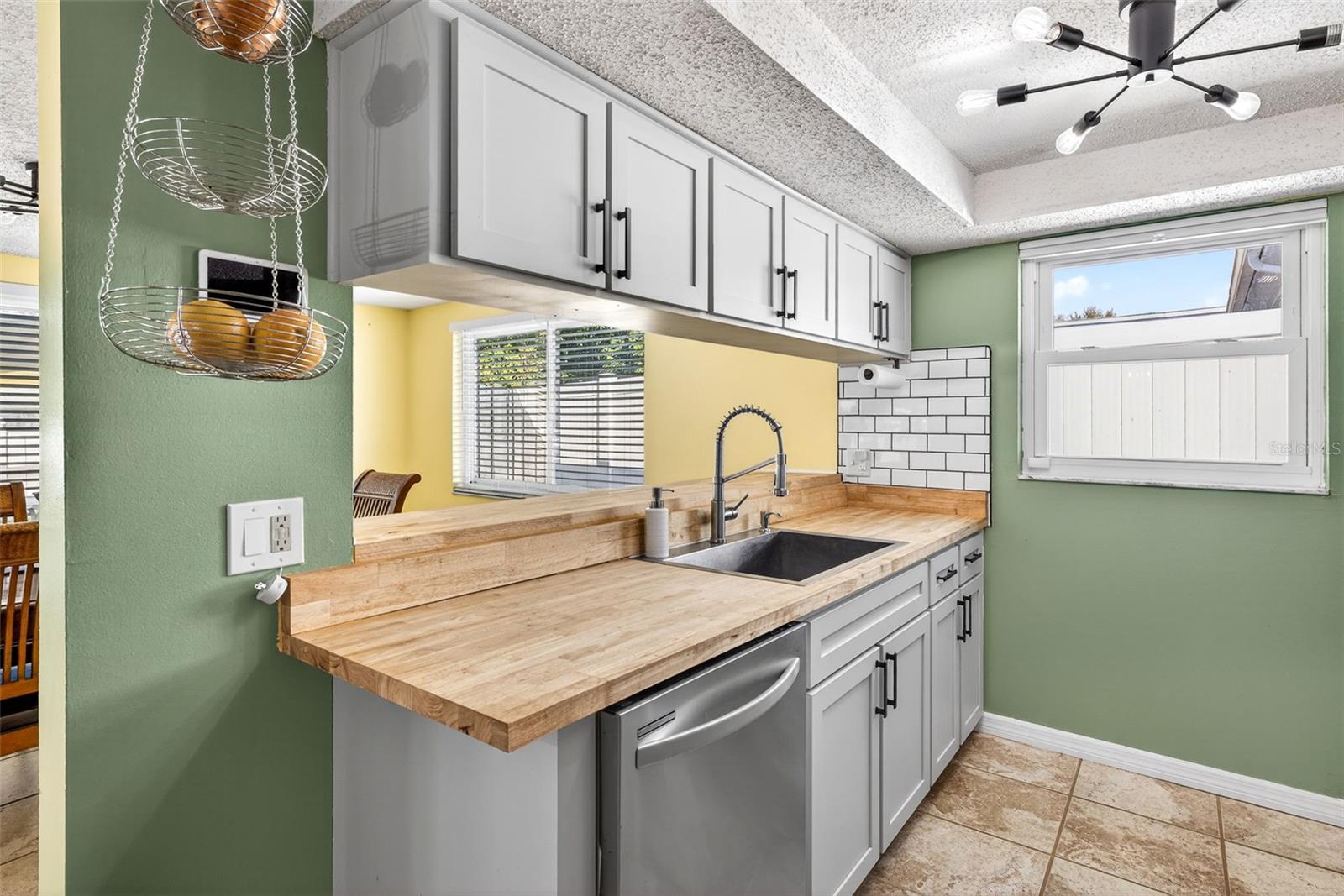 BEAUTIFUL TURN KEY HOME! Completely remodeled with love, this 2 bedroom, 2 FULL bath (no bathrooms in the garage), and 1 car GARAGE is ready for its new owner! ALL NEW WINDOWS! With a new kitchen and kitchen layout, nothing has been spared in this like-new home. Stainless Steel appliances, new cabinets, new lighting, and a butcher block countertop make this kitchen perfect for entertaining. Your primary bathroom has been remodeled with a new vanity, new flooring, and new lighting. This is a perfect entertaining house with large open areas, a great fenced in yard, and no carpet! *BONUS* side access carport perfect for keeping additional cars out of the Florida Sun and a water softener! Schedule a time today to see this beautiful home!