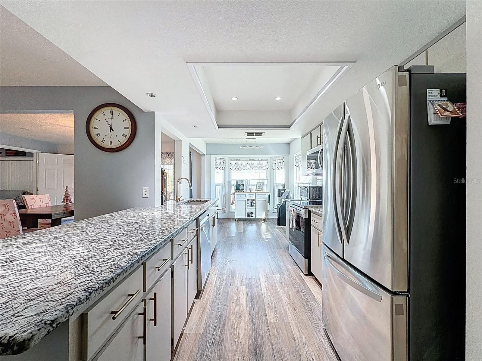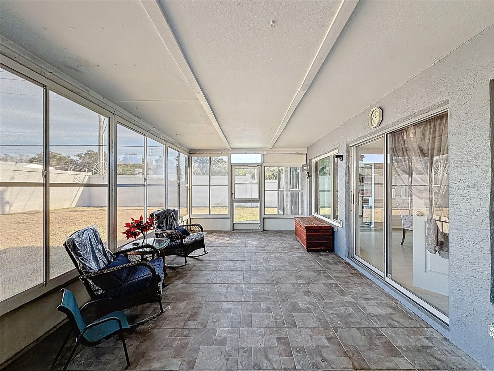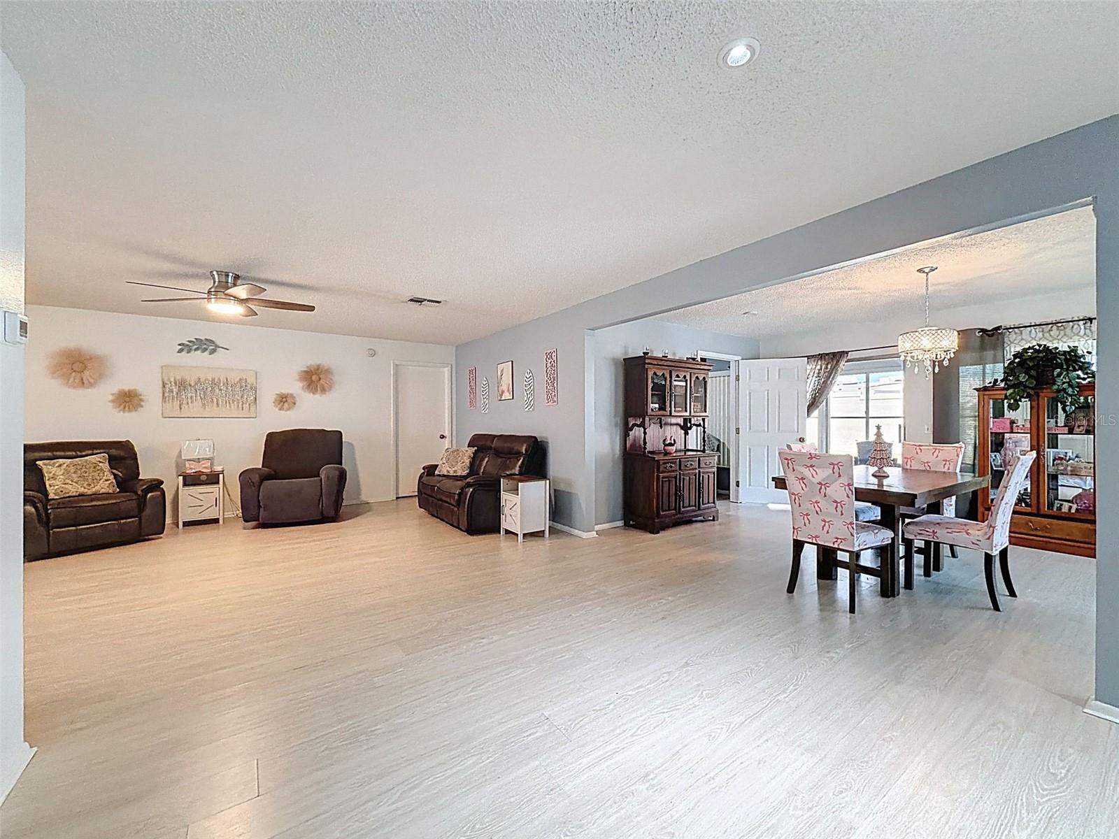 Welcome to this gorgeous, spacious, fully remodeled home located in the highly desirable 55+ Timber Oaks community! Sitting on an oversized lot with no rear neighbors and only one side neighbor, this 2 Bed & 2 Bath home with a bonus room offers great privacy and plenty of space to relax and enjoy. As you arrive, you’ll love the enclosed front patio—perfect for morning coffee. Step inside to an open, airy floor plan that’s ideal for everyday living and entertaining. New upgraded vinyl plank flooring runs throughout the main areas, paired with bright paint and a modern ceiling fan in the living room. Double sliding glass doors lead out to the screened lanai, making it a great spot to unwind or host friends on cooler days. The eat-in kitchen features bay windows, a large island made for gathering, recessed lighting, granite countertops, custom backsplash, a large sink with new faucet, and a spacious pantry with excellent storage. Just off the kitchen is a spacious dining area perfect for family dinners or entertaining. The flexible layout allows for up to three bedrooms. The owner’s suite includes new carpet, two walk-in closets, and a beautifully updated en-suite bathroom with dual sinks, granite countertops, a large mirror, and a shower with multiple shower heads. The second bedroom also features new carpet, a walk-in closet, and a new ceiling fan, located near the second full bathroom. You’ll also find a laundry room with a utility sink and a large 2-car garage with a newer remote door opener. New roof installed in 2023! Timber Oaks offers fantastic amenities, including a resort-style pool and hot tub overlooking the lake, clubhouse, fitness center, library, computer room, playground, outdoor kitchens, and more. Don’t miss out—this move-in-ready home is a great opportunity to enjoy easy living in a wonderful community!