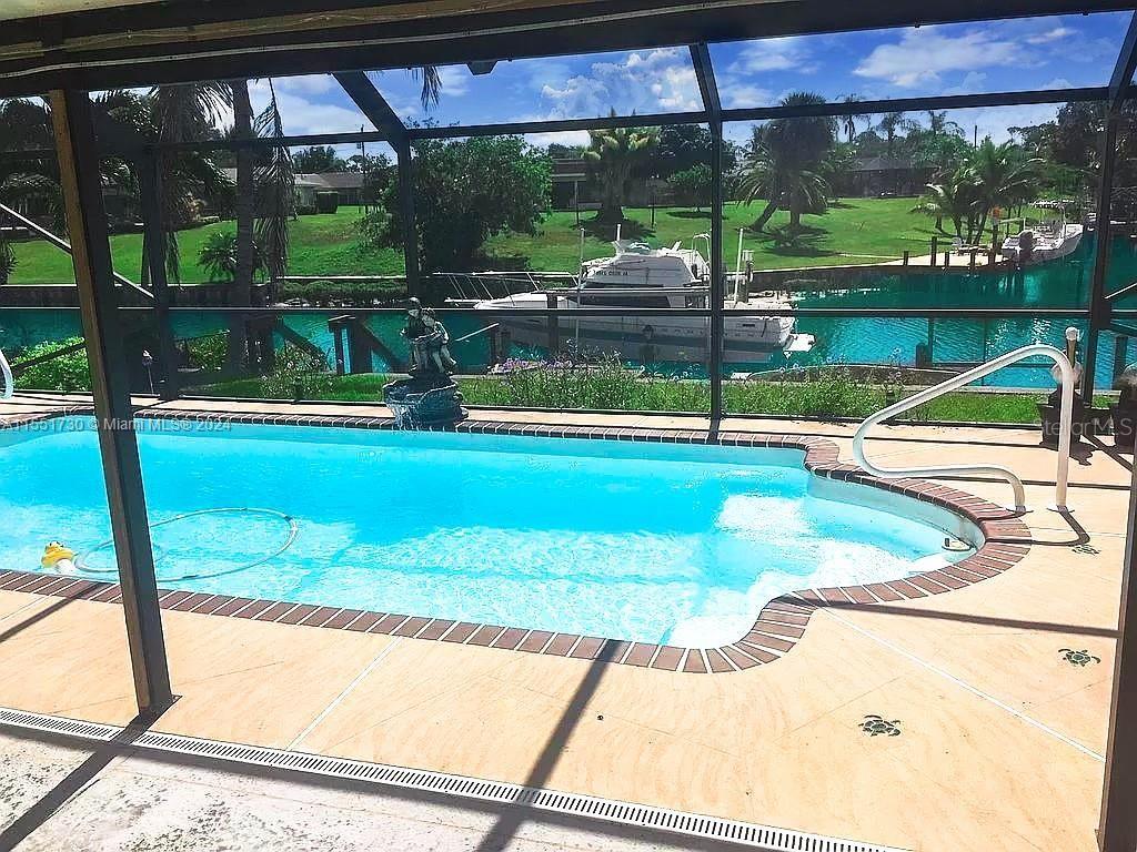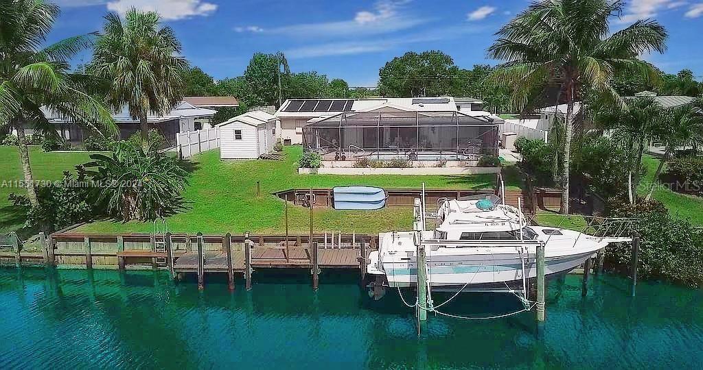 Ocean Access Large 3 bedrooms 2 baths Experience luxurious waterfront lifestyle at its finest with this totally renovated residence, ideal for avid boaters seeking the ultimate private navigable coast access . Open floor plan with all new upgraded fixtures gourmet kitchen Quartz countertops and stainless steel appliances. Rare prime location along a spacious fork of deep water, maneuvering your vessel is effortless with a full sea wall, expansive triple level dock, and heavy-duty davit boat lift. Beyond the navigable pristine waters, indulge in your pool & privacy within the fully fenced yard, ample space for trailers or motor homes. This stunning property is the epitome of waterfront elegance, unparalleled relaxation & recreation for discerning homeowners. NO HOA!