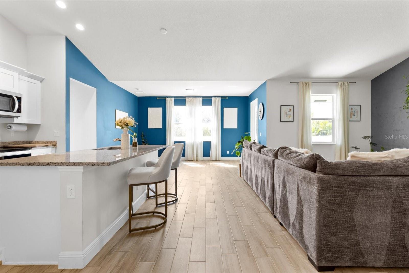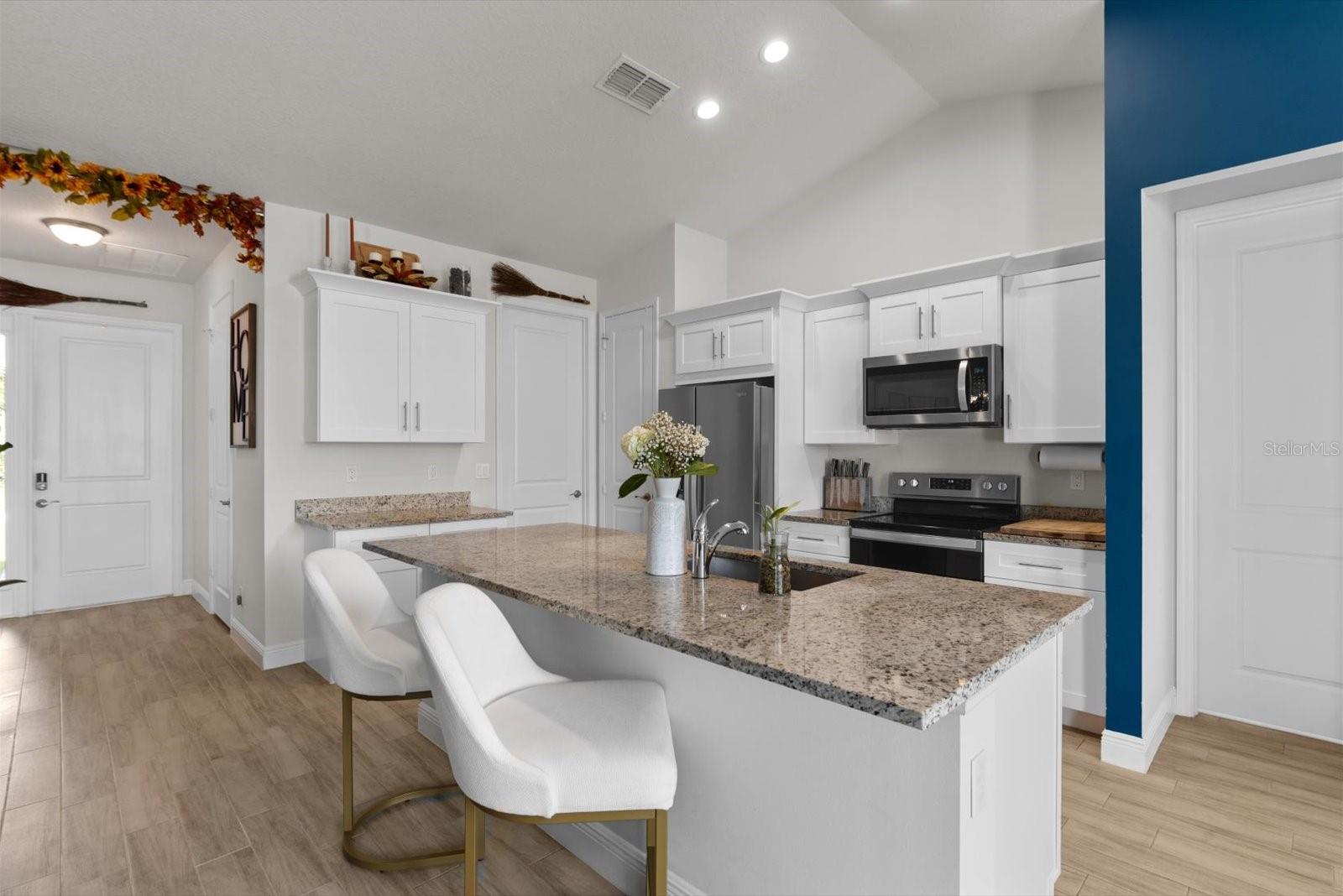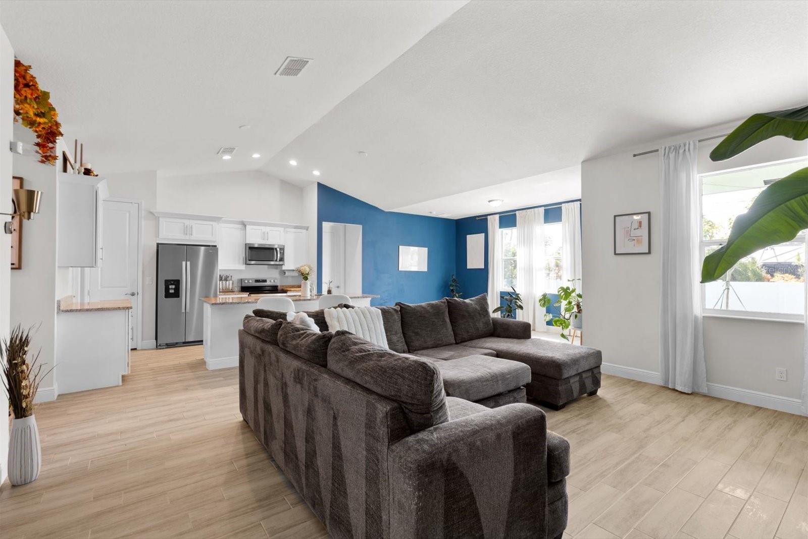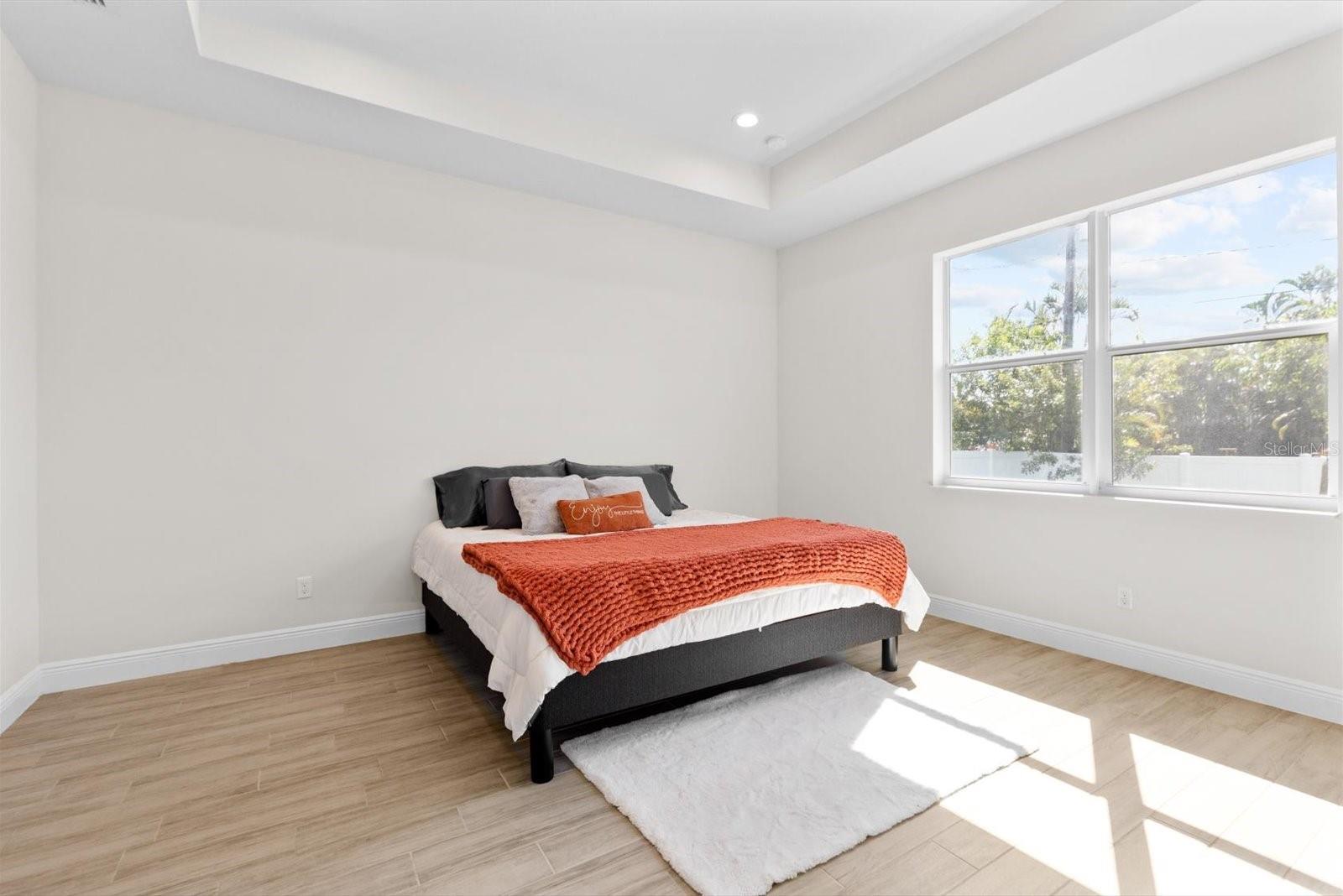 Amazing Majestic 4 Bedroom 2.5 Bath, 2 car garage, CBS home, in mint condition, built in 2022. Completely fenced, w/double access. Special features include security system-front door and back yard w/2 sensors, Google nest thermostat, Whirlpool W/D, wood plank ceramic tile,12' ceiling in main areas and 10' ceilings elsewhere, and impact windows throughout. Inviting kitchen w/ quartz countertops, wooden cabinets, and stainless-steel appliances. Oversized master bedroom with double walking closet, master bath w/double sinks, makeup vanity, walk-In steam shower and Jacuzzi. Located in a very desirable area, quiet neighborhood, 20 min from the beach, close to shopping and restaurants. This is a MUST see!
