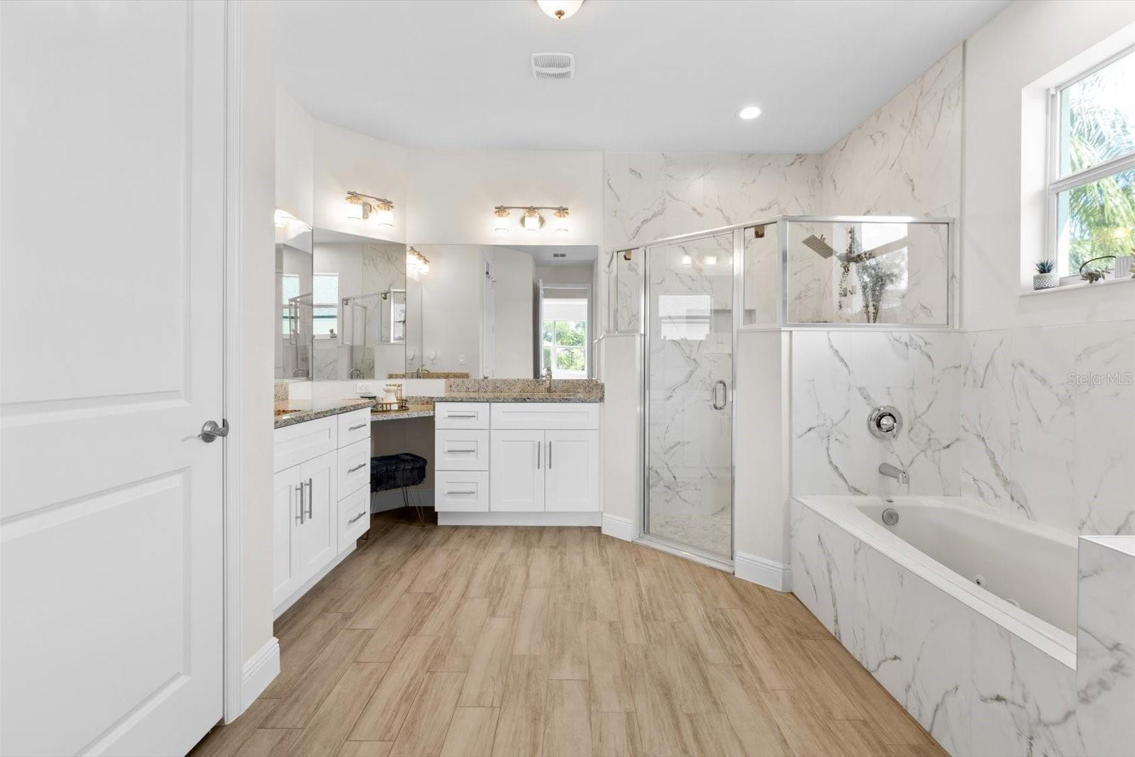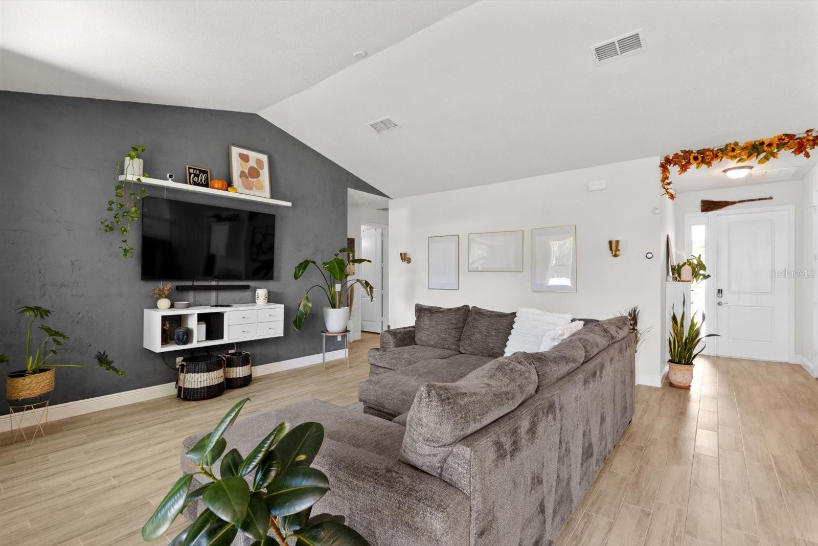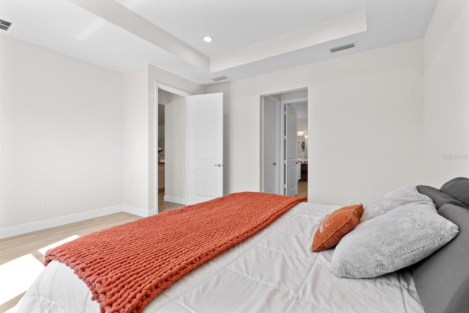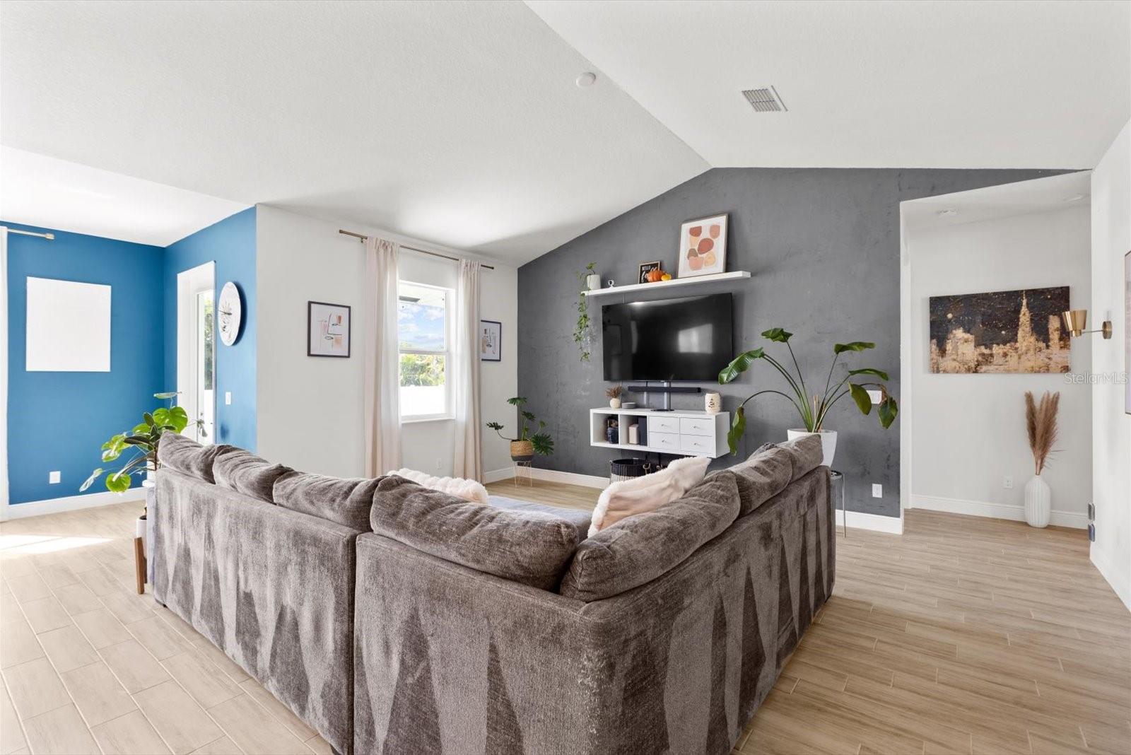 Amazing Majestic 4 Bedroom 2.5 Bath, 2 car garage, CBS home, in mint condition, built in 2022. Completely fenced, w/double access. Special features include security system-front door and back yard w/2 sensors, Google nest thermostat, Whirlpool W/D, wood plank ceramic tile,12' ceiling in main areas and 10' ceilings elsewhere, and impact windows throughout. Inviting kitchen w/ quartz countertops, wooden cabinets, and stainless-steel appliances. Oversized master bedroom with double walking closet, master bath w/double sinks, makeup vanity, walk-In steam shower and Jacuzzi. Located in a very desirable area, quiet neighborhood, 20 min from the beach, close to shopping and restaurants. This is a MUST see!