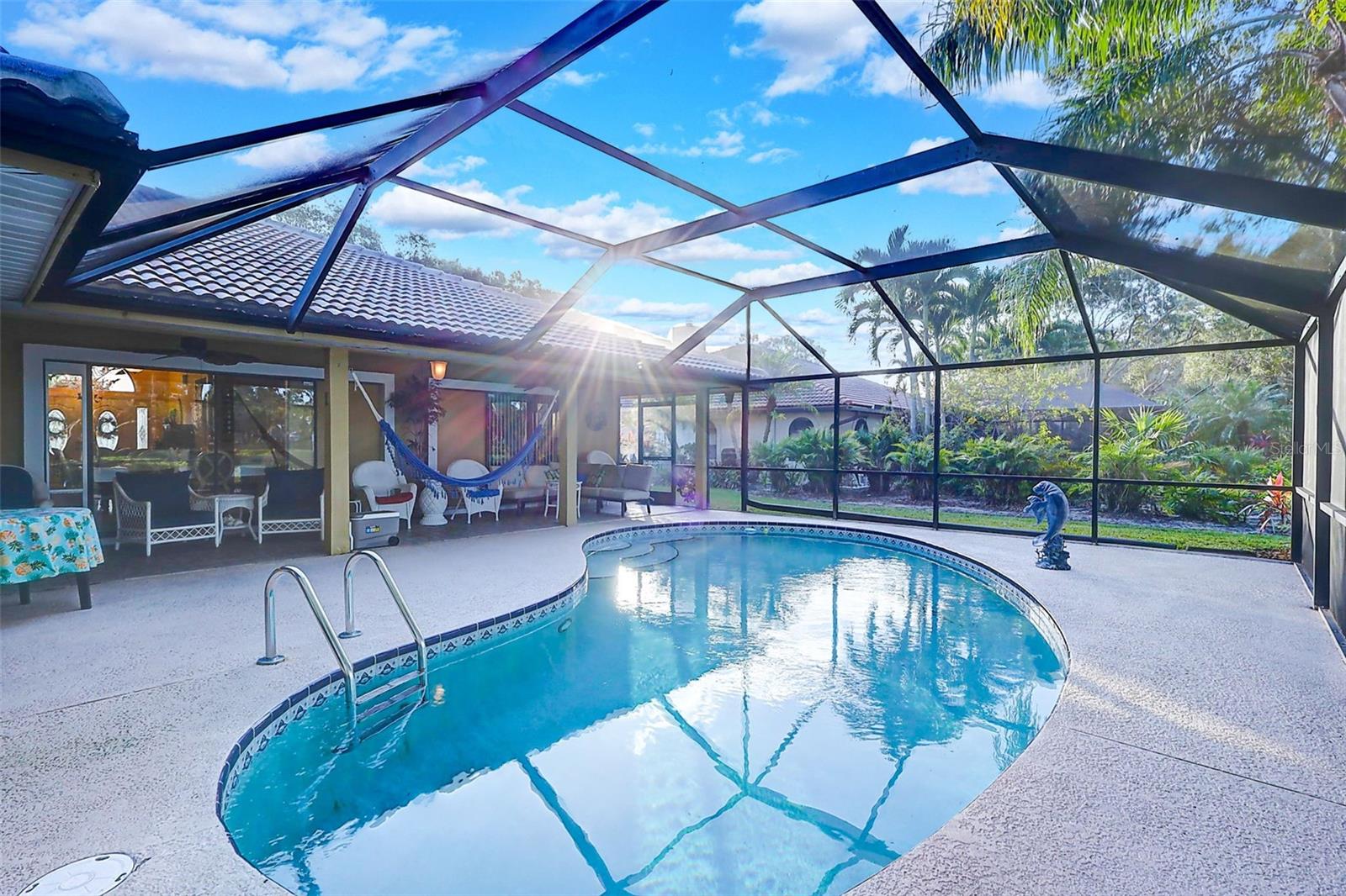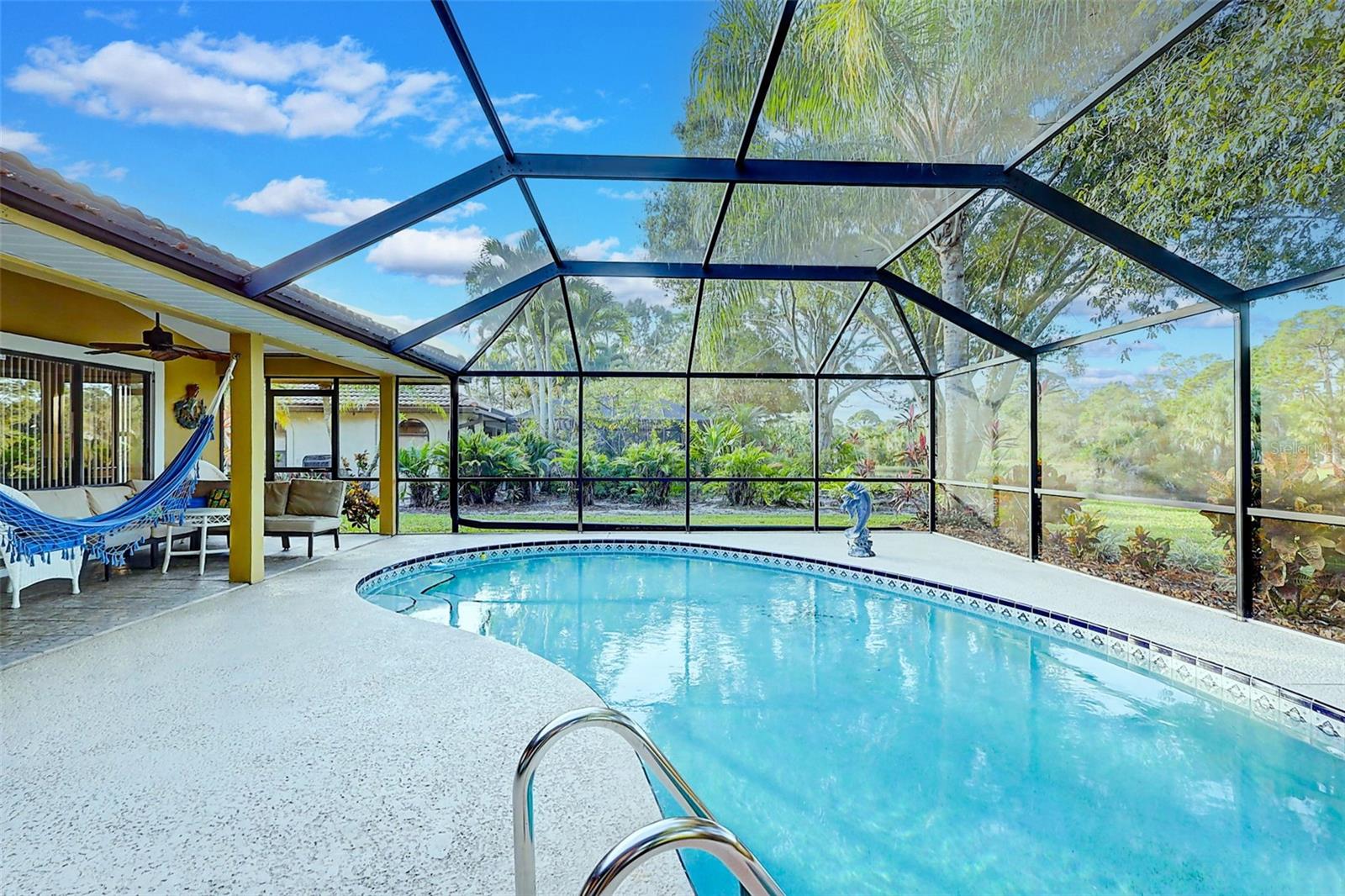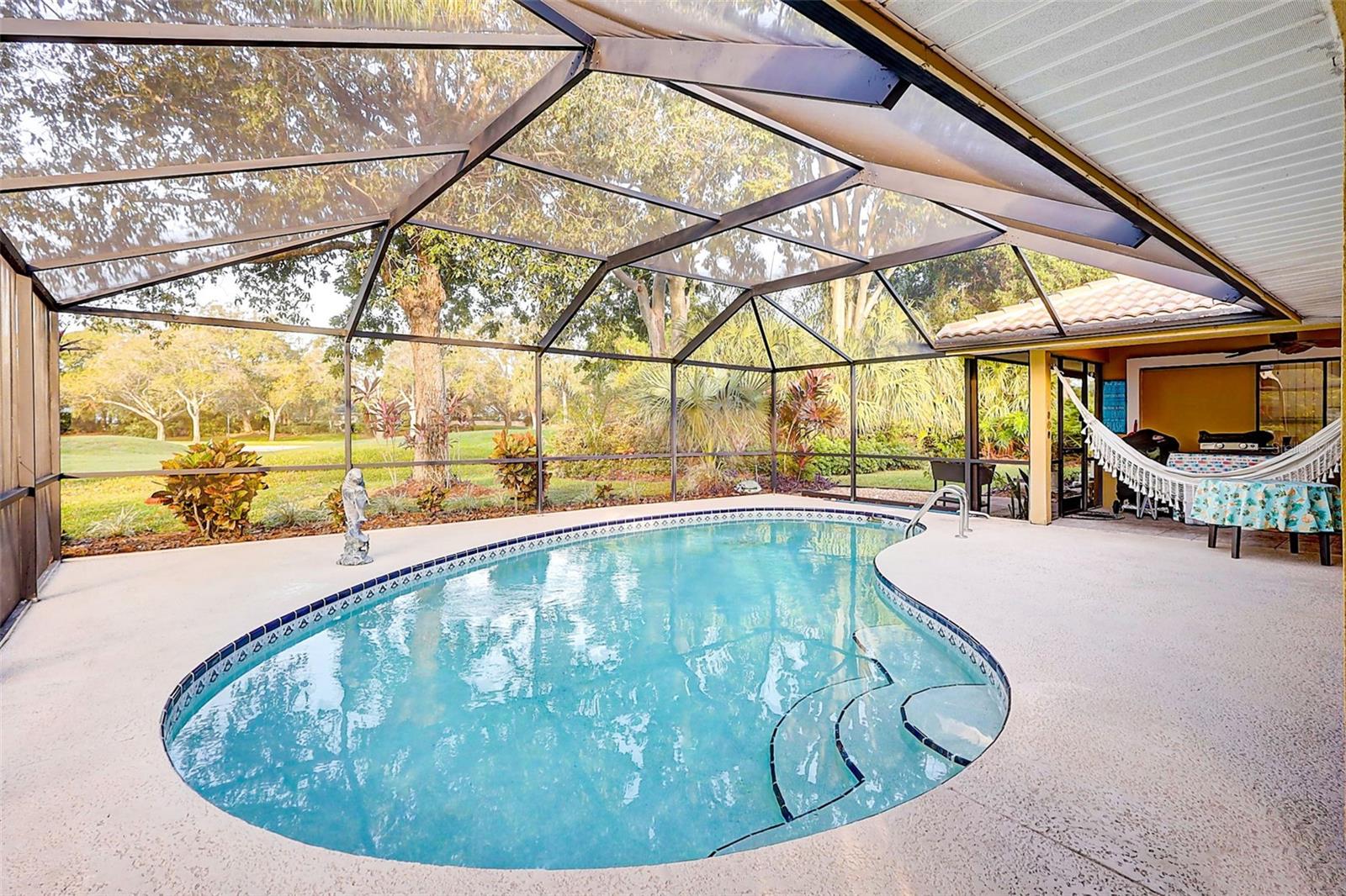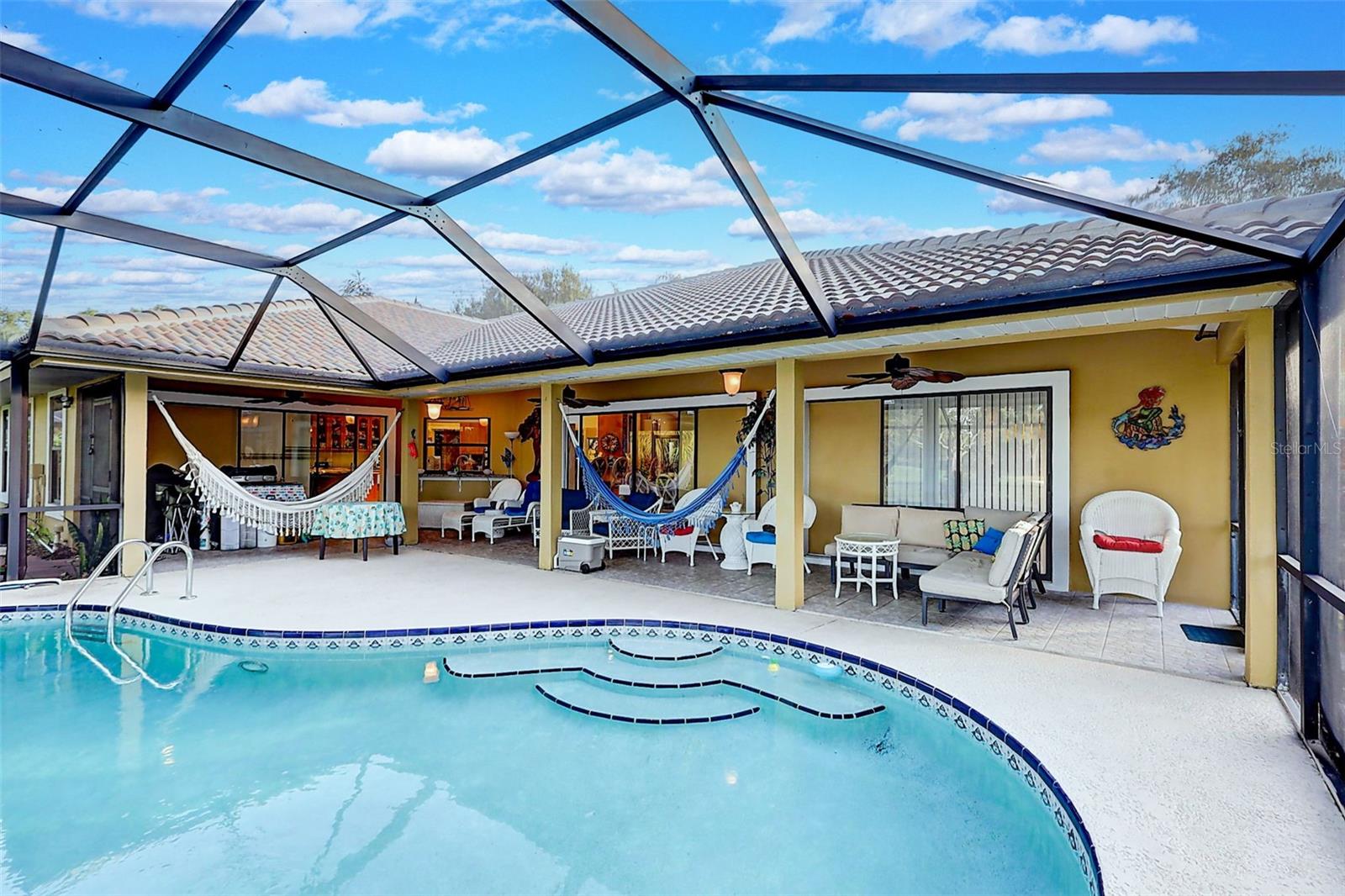 Welcome to the fabulous Country Club Estates located in St. Lucie West! Surrounded by the beautiful St. Lucie Trail Golf Club lies this meticulously maintained/updated, turn-key pool home! NO flood insurance required! This 4 bed, 2 full bath split bedroom/open floor plan offers 2,725 sqft of supreme living space with tile flooring, high ceilings and granite throughout! Enjoy your morning coffee on your private, recently re-screened lanai with peaceful privacy and an in-ground pool complete with a pond view and NO rear neighbors! Space for entertaining? Absolutely! The luxurious gourmet kitchen checks every box! Boasting custom solid wood cabinets and a butcher block island, this kitchen makes family events a breeze! Your spacious owner's suite with engineered hardwood flooring is sure to impress as it makes way to your HUGE primary bathroom featuring a step-in shower, separate tub, new tile plank flooring (updated flooring pics coming soon) and dual sinks! The humongous living room offers tons of additional space for entertaining or browsing movies on a lazy Sunday afternoon. Bring the golf cart! The garage features a golf cart parking space with separate double doors. Relax and rest assured with a brand new tile roof (March 2023) and hurricane window coverings! LITERALLY MOVE IN AND DO NOTHING! This all ages community is exactly what you've been looking for! Sleep soundly with full assurance as this community offers a 24hr gated entrance. Just a stone throw away from schools, shopping, dining, award-winning beaches, golf, nightlife and airports! This centrally located gem will not last!
