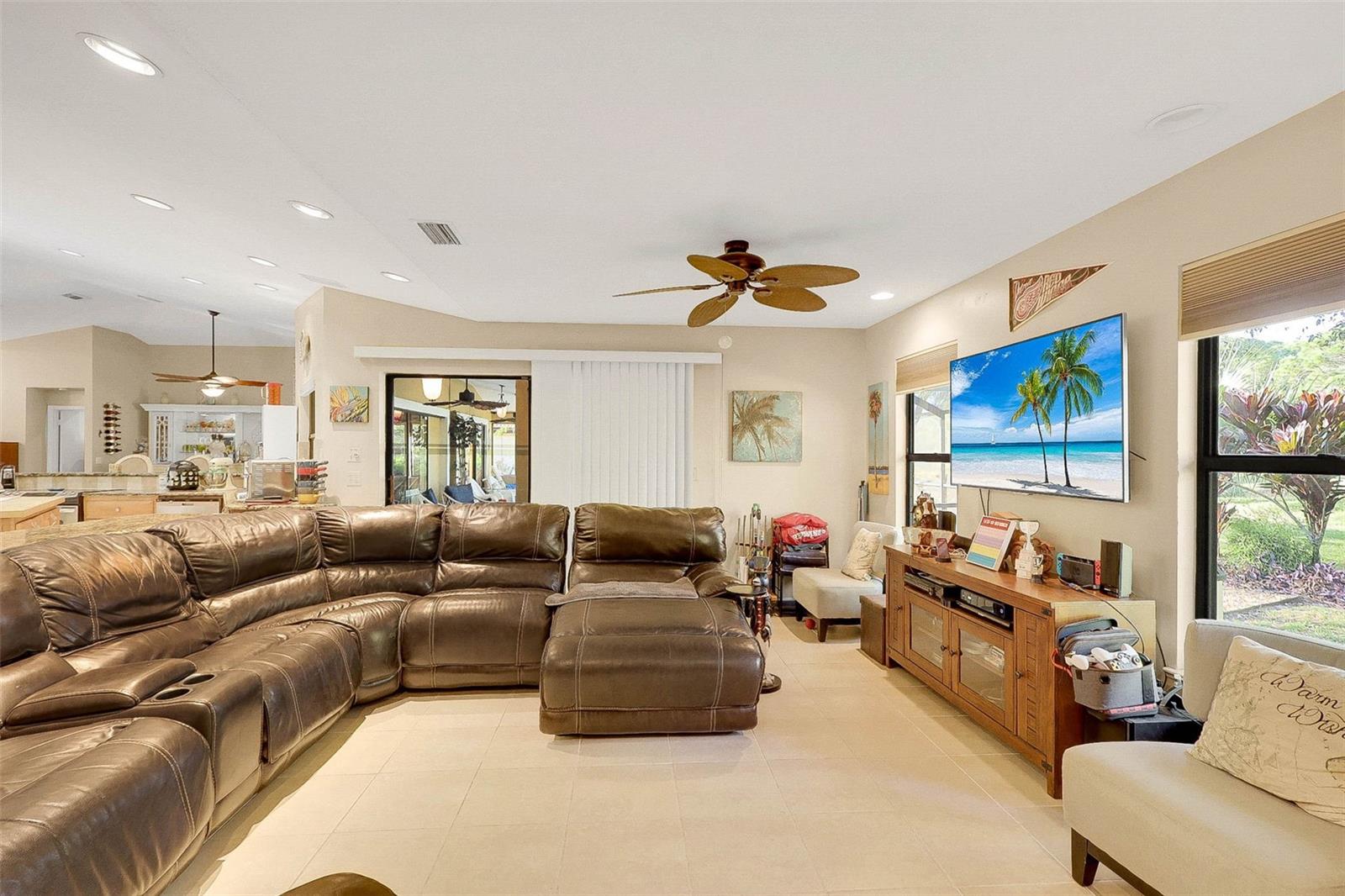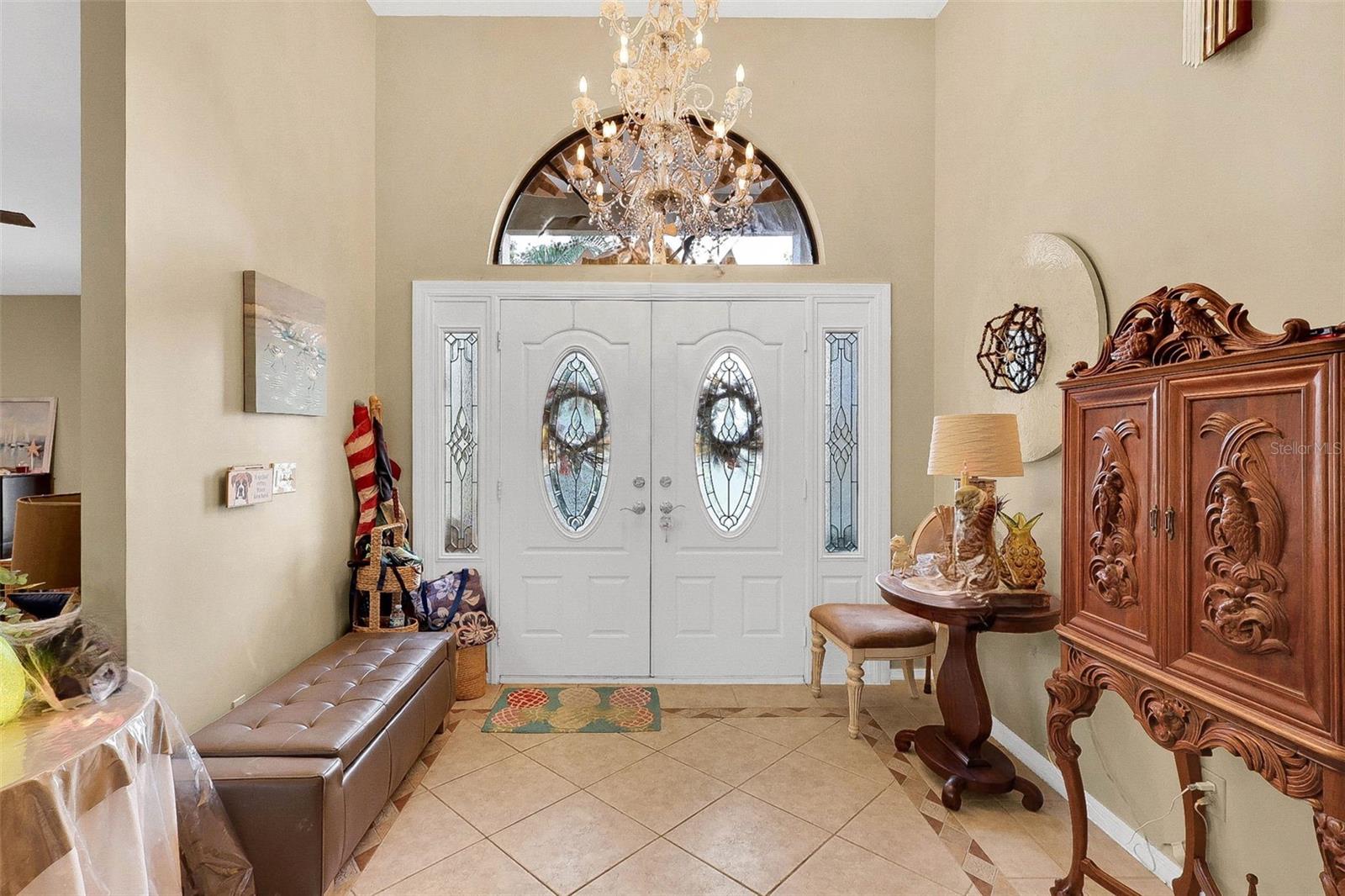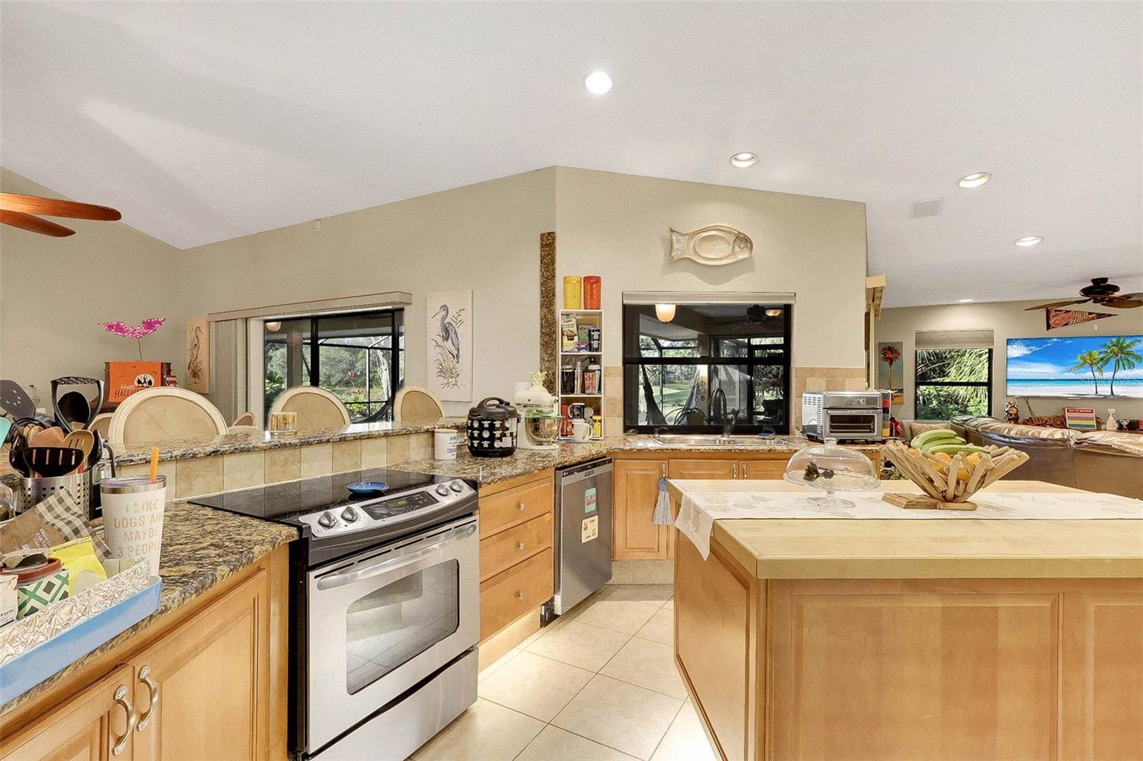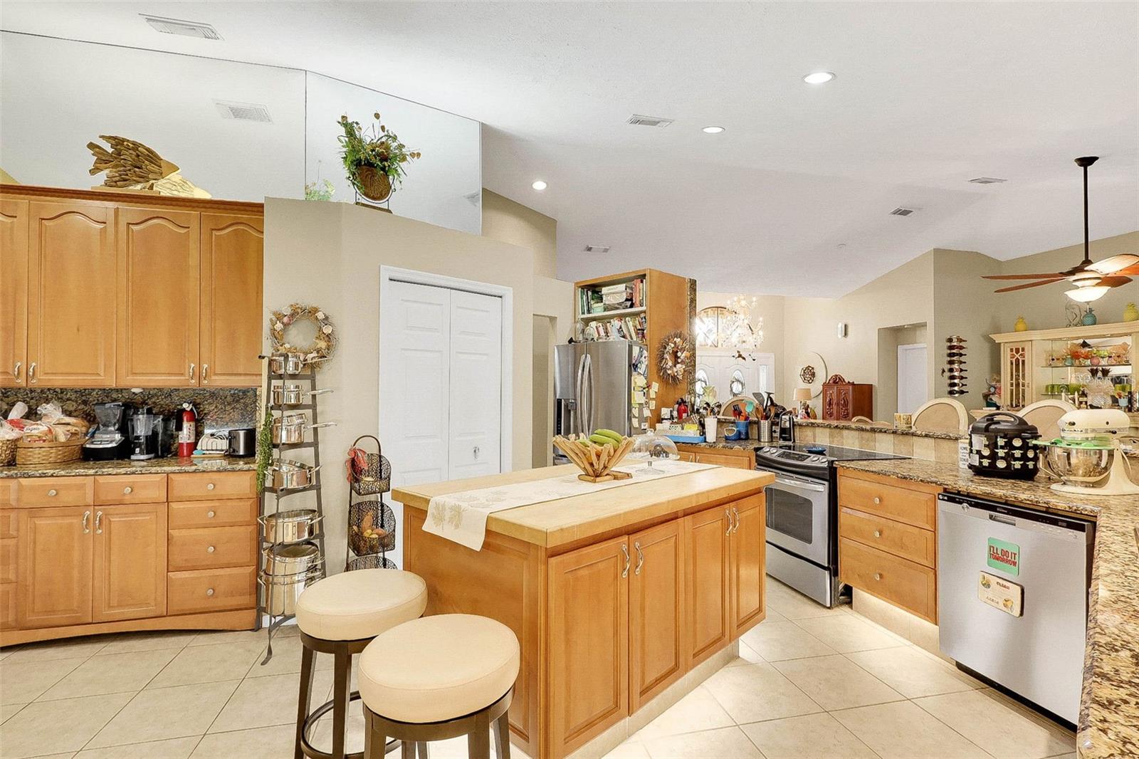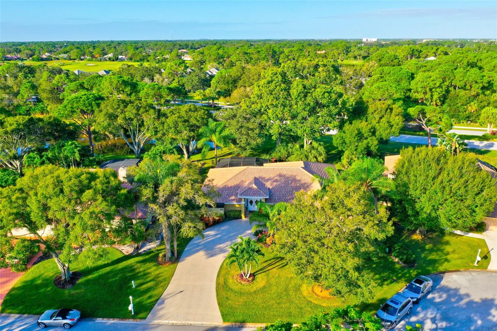 Welcome to the fabulous Country Club Estates located in St. Lucie West! Surrounded by the beautiful St. Lucie Trail Golf Club lies this meticulously maintained/updated, turn-key pool home! NO flood insurance required! This 4 bed, 2 full bath split bedroom/open floor plan offers 2,725 sqft of supreme living space with tile flooring, high ceilings and granite throughout! Enjoy your morning coffee on your private, recently re-screened lanai with peaceful privacy and an in-ground pool complete with a pond view and NO rear neighbors! Space for entertaining? Absolutely! The luxurious gourmet kitchen checks every box! Boasting custom solid wood cabinets and a butcher block island, this kitchen makes family events a breeze! Your spacious owner's suite with engineered hardwood flooring is sure to impress as it makes way to your HUGE primary bathroom featuring a step-in shower, separate tub, new tile plank flooring (updated flooring pics coming soon) and dual sinks! The humongous living room offers tons of additional space for entertaining or browsing movies on a lazy Sunday afternoon. Bring the golf cart! The garage features a golf cart parking space with separate double doors. Relax and rest assured with a brand new tile roof (March 2023) and hurricane window coverings! LITERALLY MOVE IN AND DO NOTHING! This all ages community is exactly what you've been looking for! Sleep soundly with full assurance as this community offers a 24hr gated entrance. Just a stone throw away from schools, shopping, dining, award-winning beaches, golf, nightlife and airports! This centrally located gem will not last!