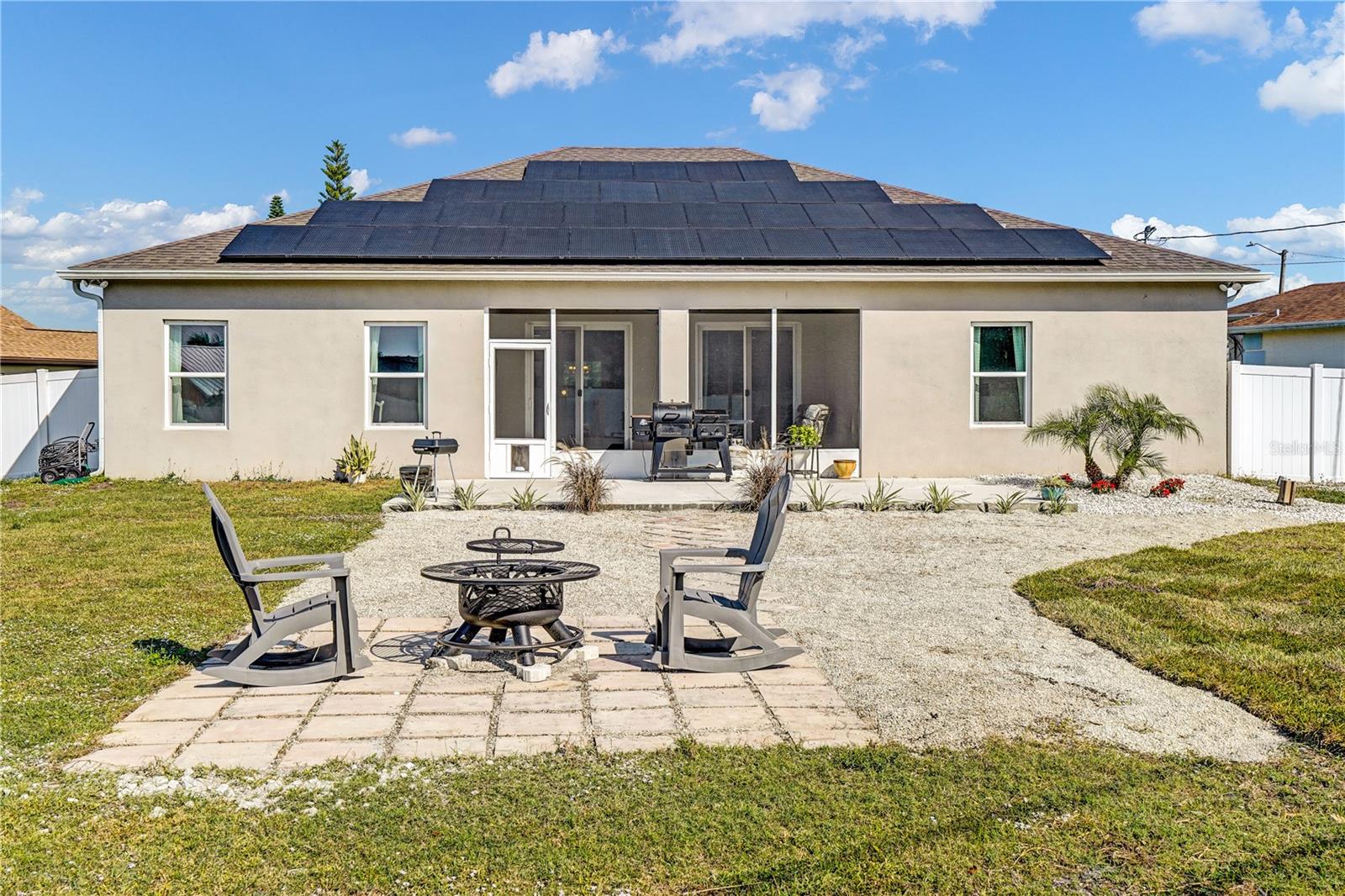 Experience true Florida living in this beautifully maintained Maronda built 4-bedroom, 3-bath home nestled on over a 1/3rd acre lot in beautiful Port St. Lucie. Designed for comfort, style, and modern efficiency. Step inside to soaring 9 ft ceilings, elegant rounded-corner finishes, and a bright, open layout that feels both spacious and inviting. The home features a 3-car garage. A culinary kitchen, featuring granite countertops, a spacious island, and ample room for cooking and gathering. Enjoy peace of mind with impact windows throughout, offering enhanced safety, security, and energy savings. The luxurious primary suite elevates everyday living with recessed tray ceilings and an oversized walk-in shower, creating a spa-like retreat right at home. Best of all, the fully owned solar panels power nearly 100% of your electricity, giving you incredible long-term savings and eco-friendly living. A rare blend of space, craftsmanship, and efficiency—this home is the perfect place to live your best lifestyle. Roof 2021, AC 2021, Water Heater 2021, Solar Panels 2023-Power bill $50 average.