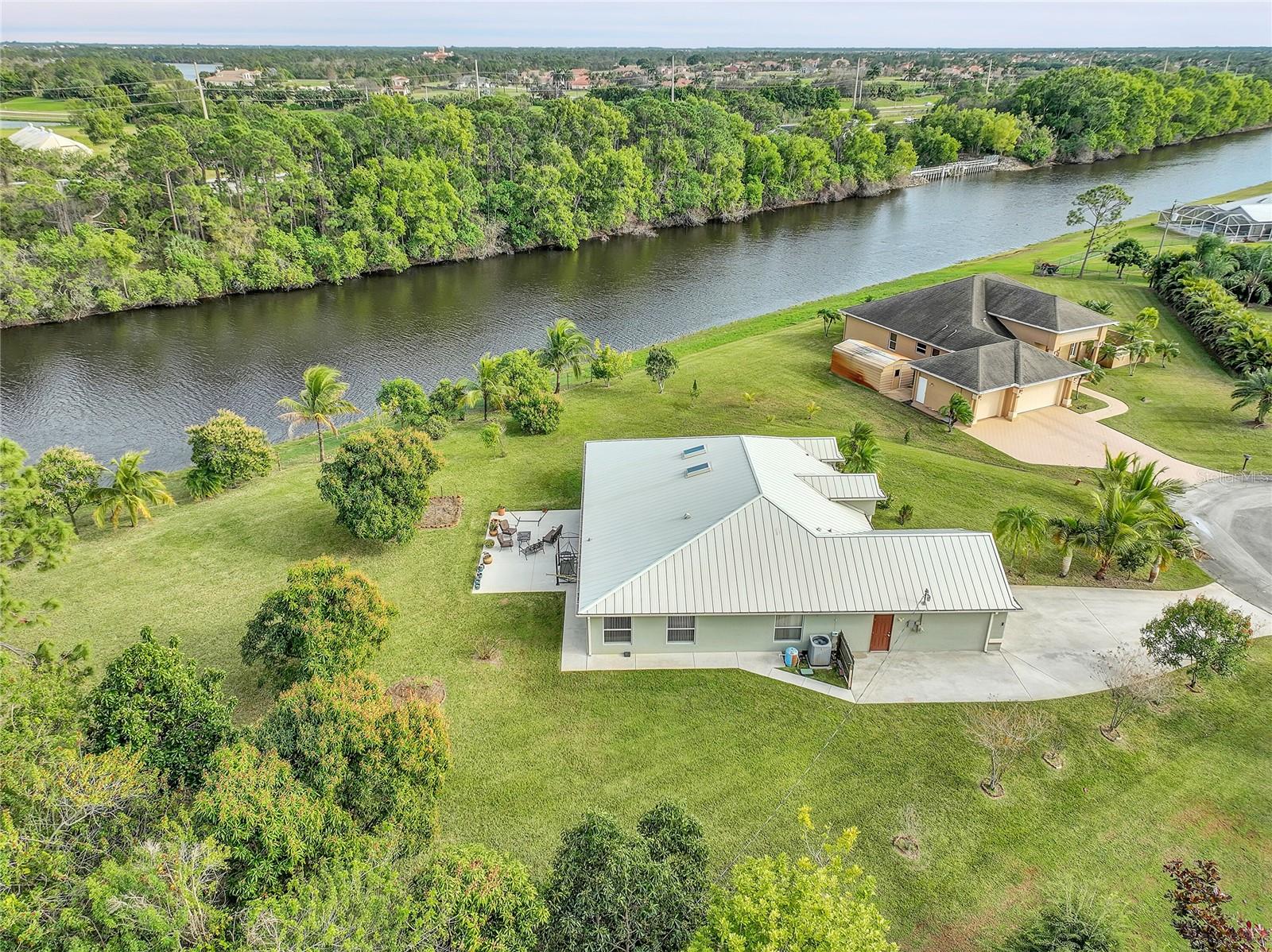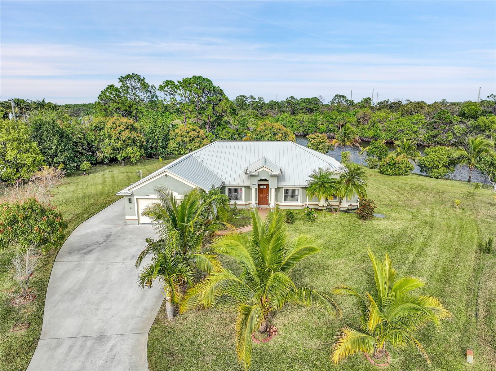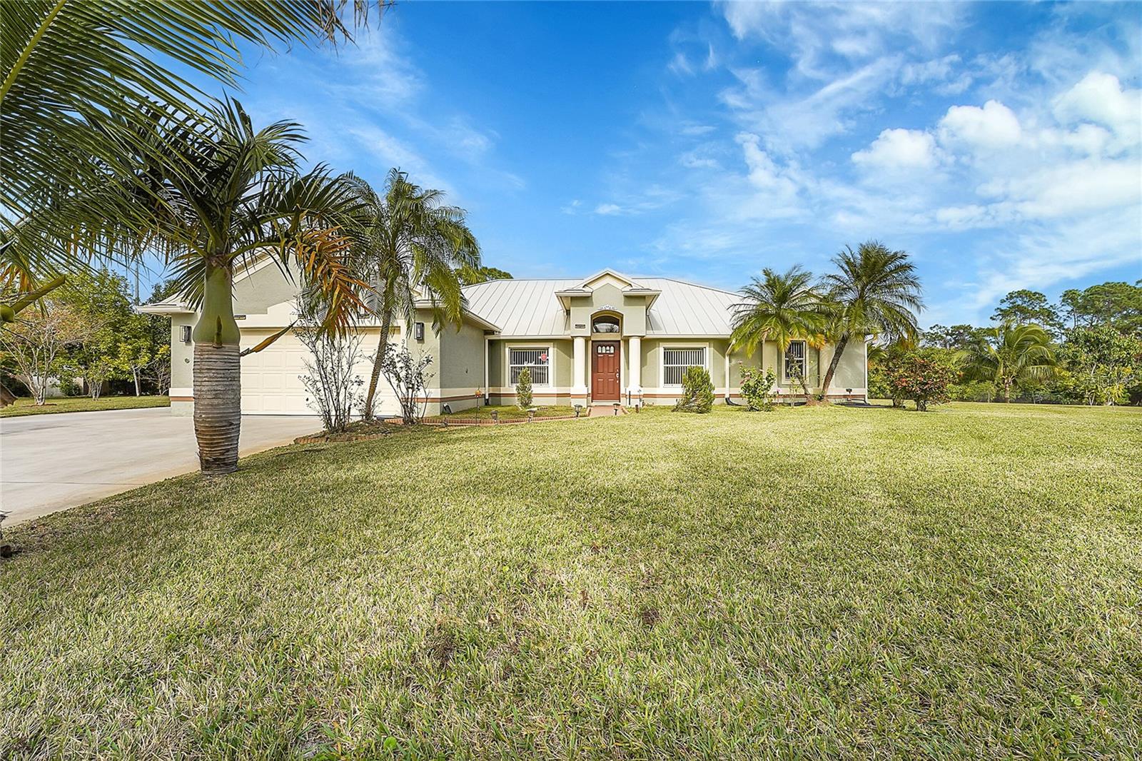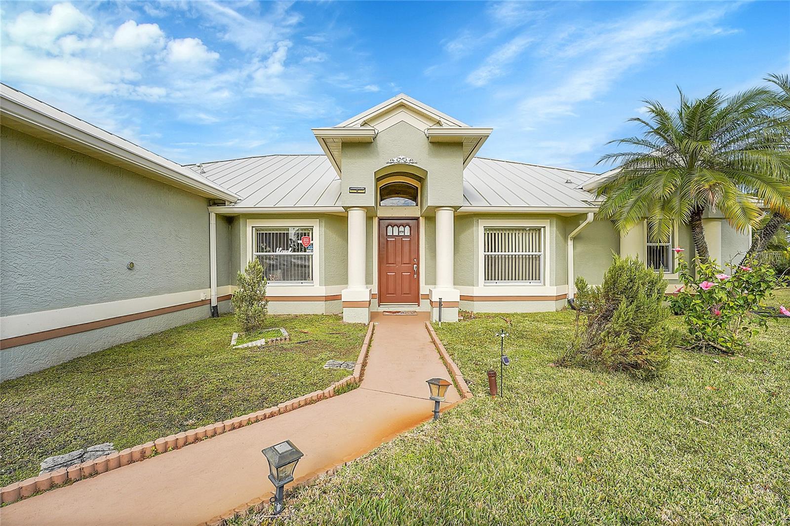 Discover your dream home! This stunning 4-bedroom, 2-bathroom home is located on a peaceful cul-de-sac with no HOA and sits on a spacious 0.43-acre lot. The backyard is truly an oasis, featuring lush greenery, fruit trees, and plenty of space to enjoy nature. You’ll also love the canal access, perfect for fishing, boating, or simply unwinding with serene water views. With over 2,605 sq. ft. of living space, this home boasts an oversized master suite with a private sitting area, an office/nursery, and a large walk-in closet. The upgraded master bathroom includes a spa-style tub and a large shower. The chef’s kitchen is a true centerpiece, complete with granite countertops, stainless steel appliances, and an island that’s perfect for both cooking and entertaining. Step outside to the covered lanai, where you can relax and enjoy your personal retreat surrounded by nature. This property also features a durable metal roof, offering longevity and added protection. Conveniently located near highways, shopping, and dining, this property offers the perfect blend of privacy, space, and convenience.
