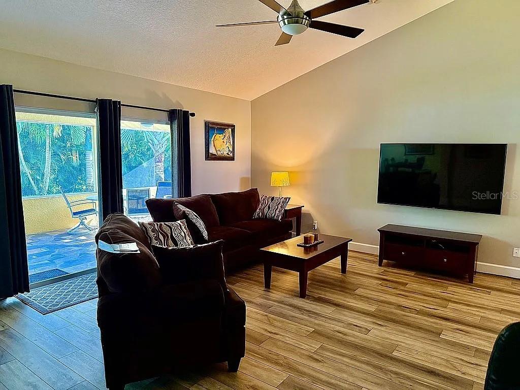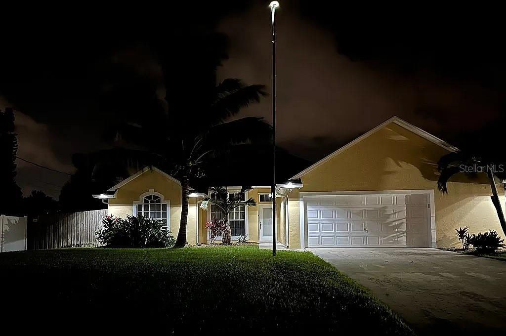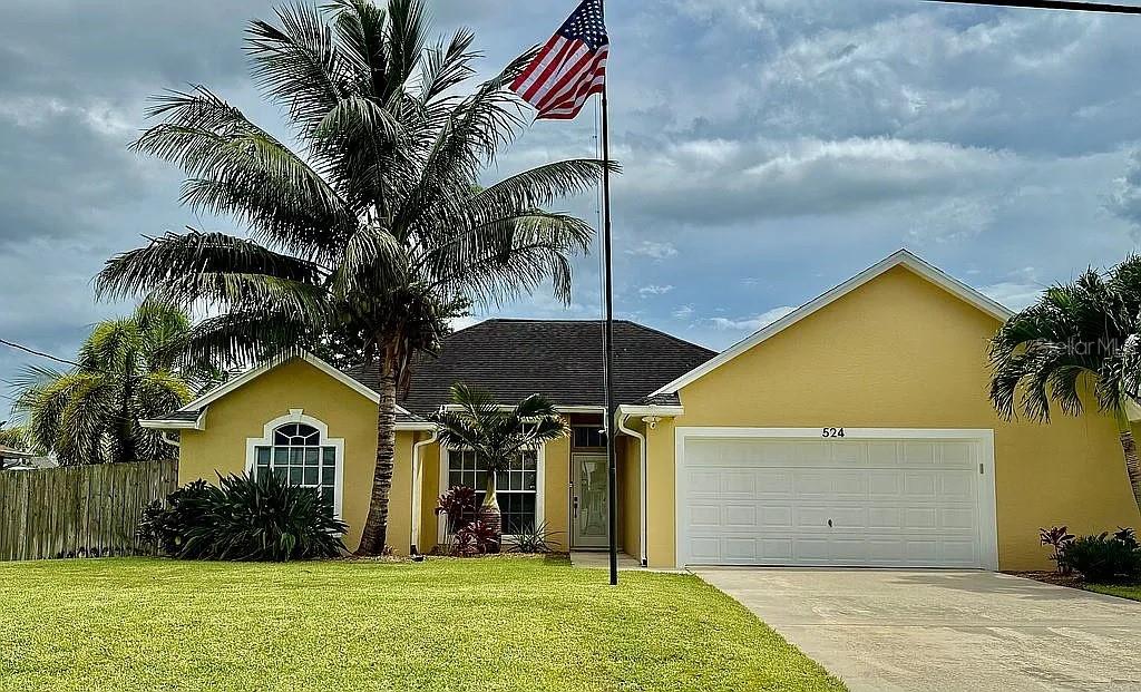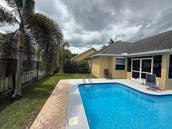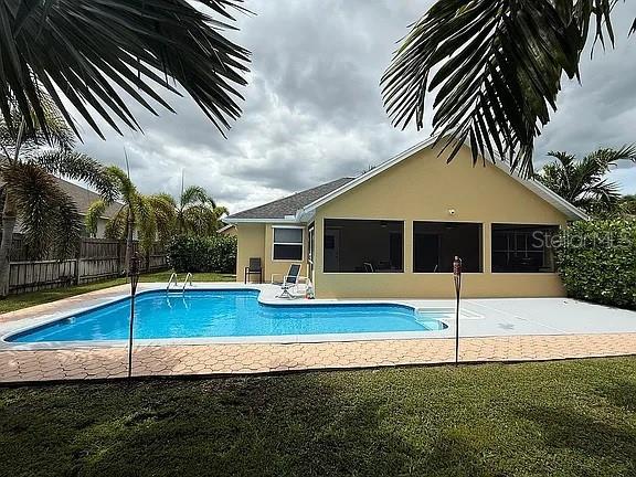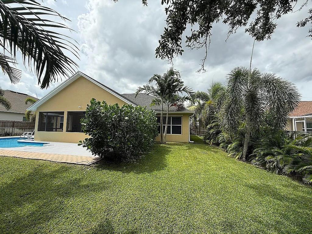 3 Bedroom 2 Bath Waterfront Home with a Private Pool Oasis No HOA in Prime PSL Location. Tucked away in a quiet Port St. Lucie this move-in ready home blends comfort, space, and convenience. Featuring solid CBS construction and a desirable canal-front lot, this property offers peace, privacy, and easy access to both I-95 and the Turnpike. Inside, you'll find 1,477 sq ft of light-filled living space with soaring ceilings and large windows throughout. The open layout is enhanced by luxury vinyl plank flooring, with tastefully updated bathrooms and a neutral color palette thanks to fresh interior and exterior paint. Step outside to your own backyard retreat—complete with a screened lanai and sparkling inground pool, perfect for relaxing or entertaining. The primary suite offers direct pool access, while the oversized 2.5-car garage adds space for storage, projects, or extra parking. All Major systems are newer including roof, A/C, water heater, irrigation (with well pump), and pool pump are all less than 7 years old. City water, septic, and all appliances included—just bring your personal touch. No HOA, no restrictions—just easy Florida living at its best the way its supposed to be!