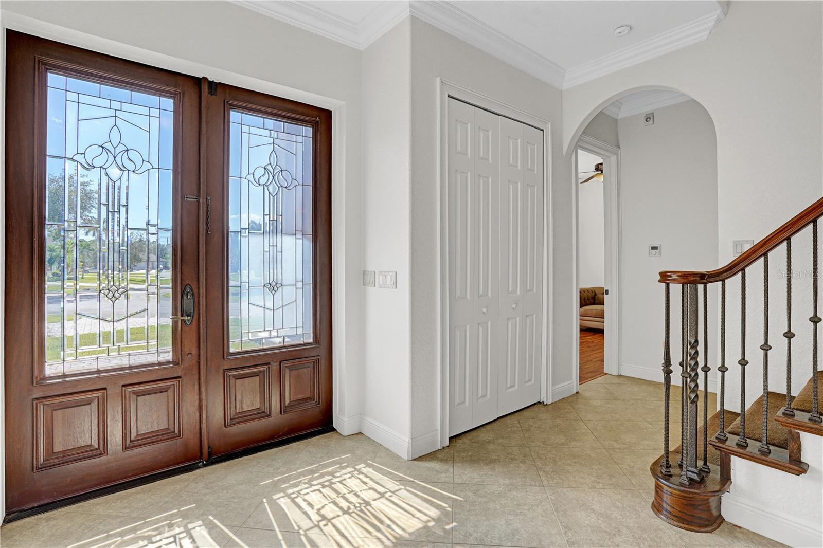One or more photo(s) has been virtually staged. Stunning and sprawling 4100+ sq ft Mediterranean style home. Features include 6 bedrooms and 3 full bathrooms, a home generator, new roof, new AC, fully fenced yard, oversized garage and an expansive outdoor kitchen. Oversized screened in covered patio with preserve/canal views. This home is an entertainer's paradise and would be great for a large family or multi generational living, with two bedrooms on the first floor next to a full bathroom with walk in shower. Master bedroom and 3 more bedrooms upstairs with one being oversized (25x25) and currently set up as a media room. Chef's kitchen with a 5 burner wolf gas range, cherry wood cabinetry and a counter seating. Spacious living room features a small wet bar, archways and tile flooring. Split zone AC. 10' ceilings and crown molding throughout the entire home. Bedrooms are spacious in size and all feature laminate flooring. Primary bedroom has 2 walk in closets with built ins. Primary bathroom features a sauna, standalone tub, separate shower with rainfall showered and dual vanities. Plenty of flexibility with 6 total, generously sized bedrooms. Outdoor kitchen is expansive with a refrigerator, stove, microwave, sink and plenty of counter space. Electric hurricane shutters and accordions for the patio provide peace of mind for storms. Epoxy coated garage floor. Tankless water heater. Fully fenced yard. Must see to appreciate fully. Call today for a private showing.