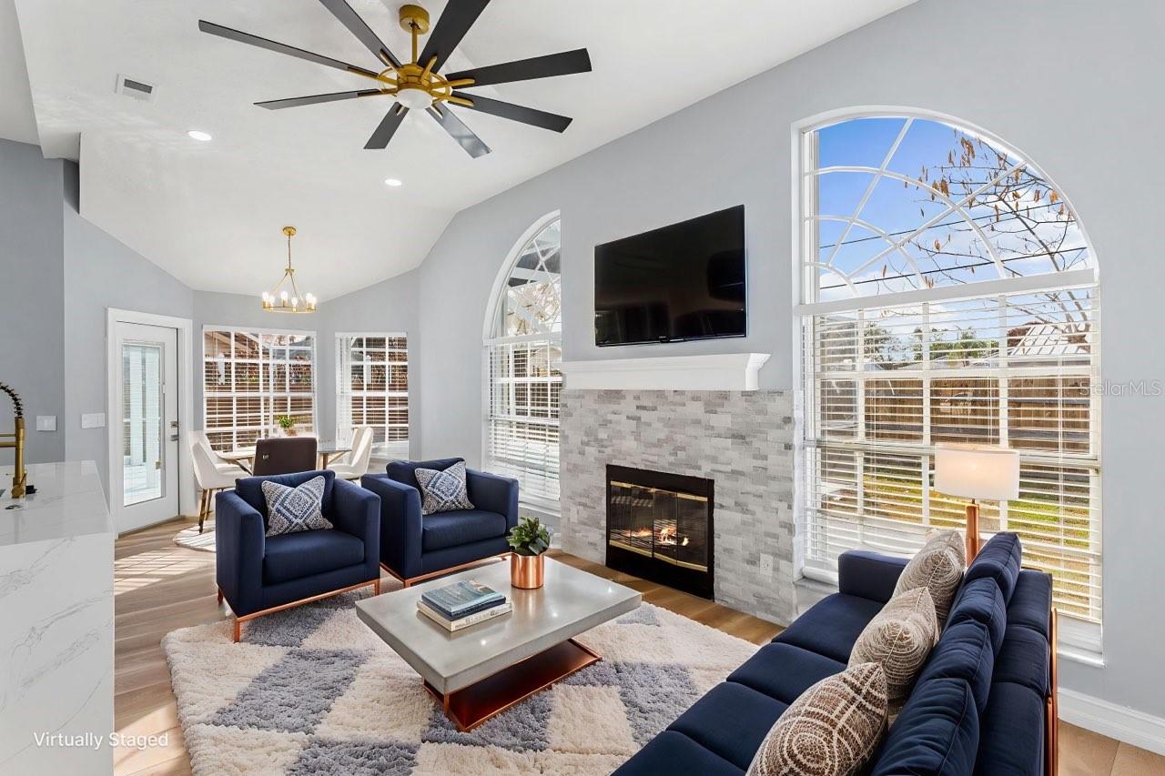 Beautiful Fully Renovated 3bed 2bath + Pool w/covered patio & Screen Enclosure + Fireplace, & 2 CG. Fully Renovated w/tasteful, updates inside & outside that include: New Roof, AC, Smart Wi-Fi throughout, inclusive of: Fans & Lutron Lighting Control,USB & UTC outlets,Pop-up outlets, massive kitchen counter w/ huge bar top,New SS Appliances,Shaker Soft Close cabinets in Kitchen & Baths,Lots of Cabinet & Storage Space.Quartz Countertops,Cathedral ceilings,New Solid-Core Doors,Baseboards, Trim.New Baths,Luxury Vinyl Wood Plank Floors,Fresh Int & Ext Super Premium Paint,New LED Lights/Fixtures,Smoke &CO detectors,Toilets,Faux Wood Blinds w/ lots of Lighting throughout. New Screened in pool area. New Epoxy Garage Floor,Large Driveway for Lots of Parking.This Home Has It All and Wont Last Long!