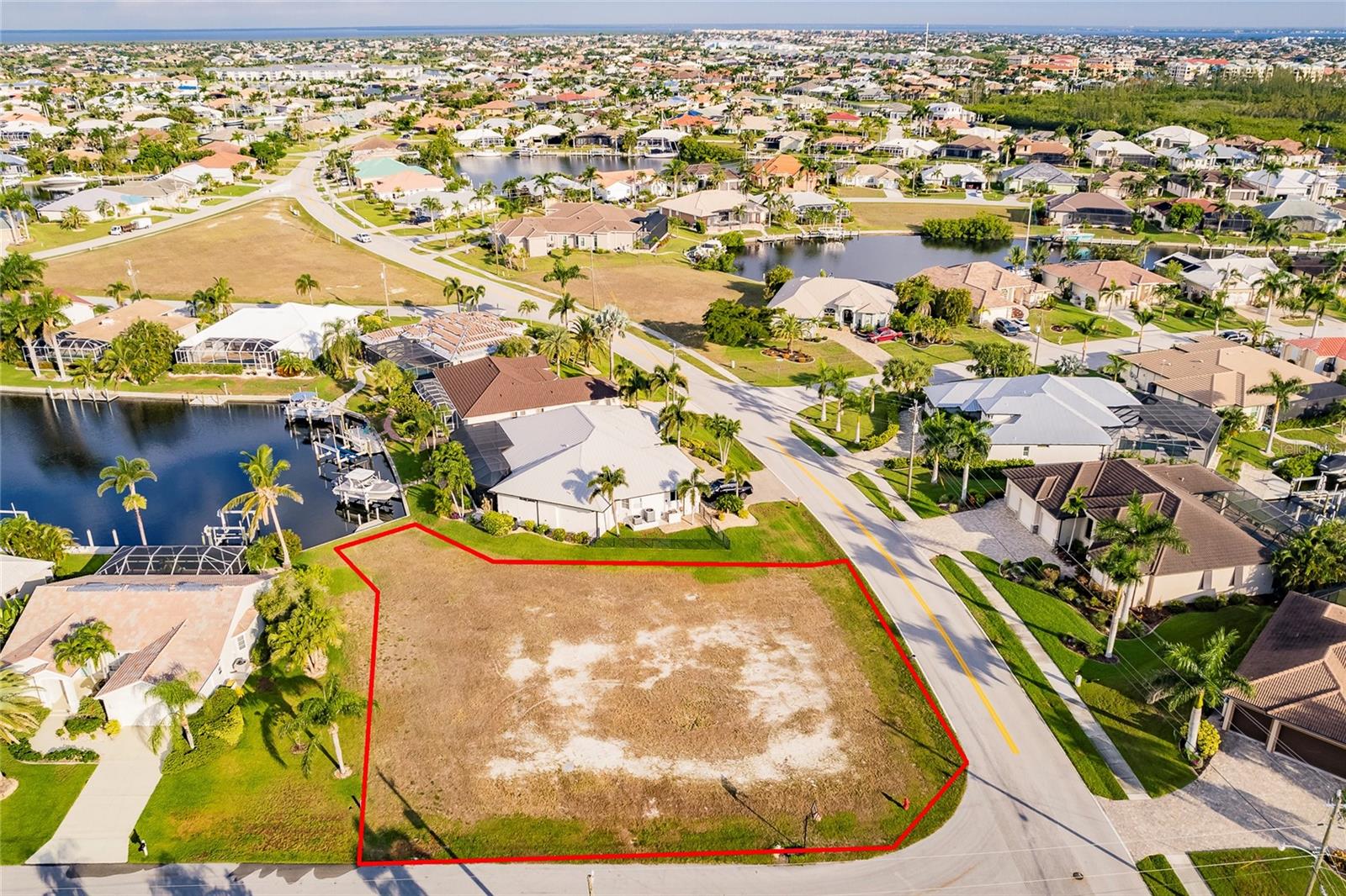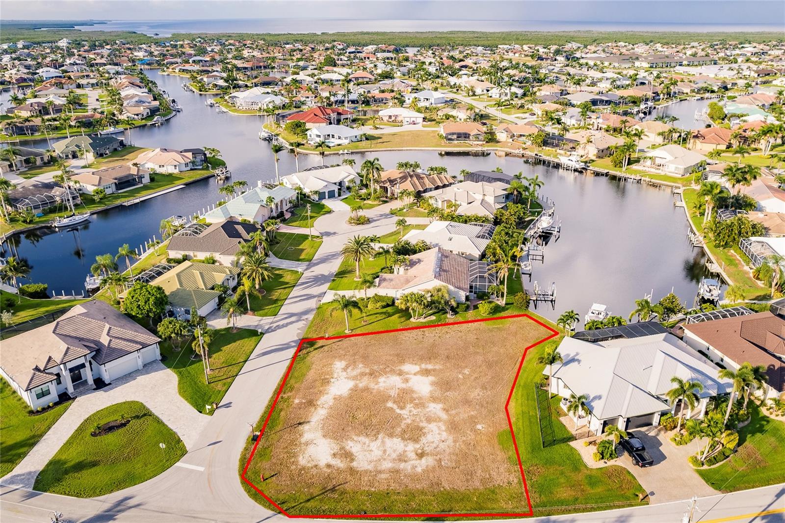 Build your dream home on this oversized sailboat waterfront corner lot located in the heart of the waterfront deed restricted community of Punta Gorda Isles. This lot is a rare find - almost half acre!. Surrounded by beautifully maintained upscale homes, this oversized lot is cleared and has access to public water & sewer, electric, and cable/internet services. This property boasts 40 feet of water frontage with long view down wide saltwater waterway, plus concrete dock, and a concrete seawall that is maintained by the City of Punta Gorda. Sailboat access directly to Charlotte Harbor and then on to the Gulf of Mexico. Proximity to local waterways such as the Peace and Myakka Rivers, beaches, dining, shopping, and golf courses makes this property ideal for the Florida lifestyle. And you are minutes to historic downtown Punta Gorda and popular Fishermen’s Village with quaint shops and cafes. So, don’t wait to start living the Florida dream.
