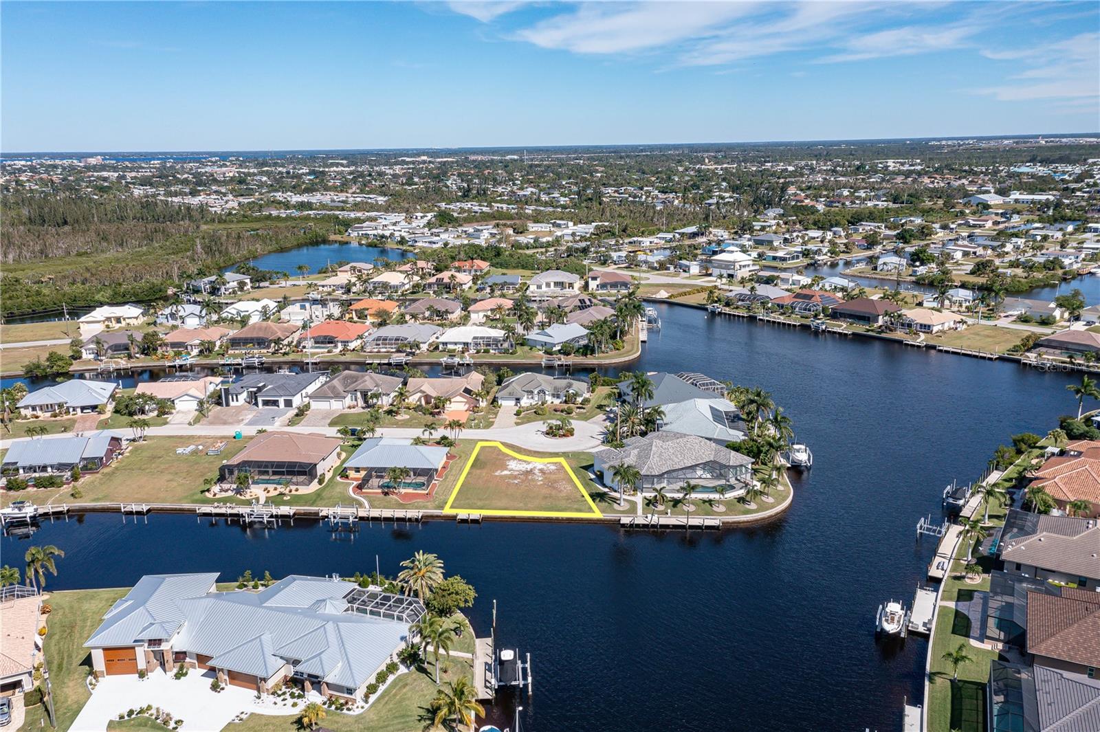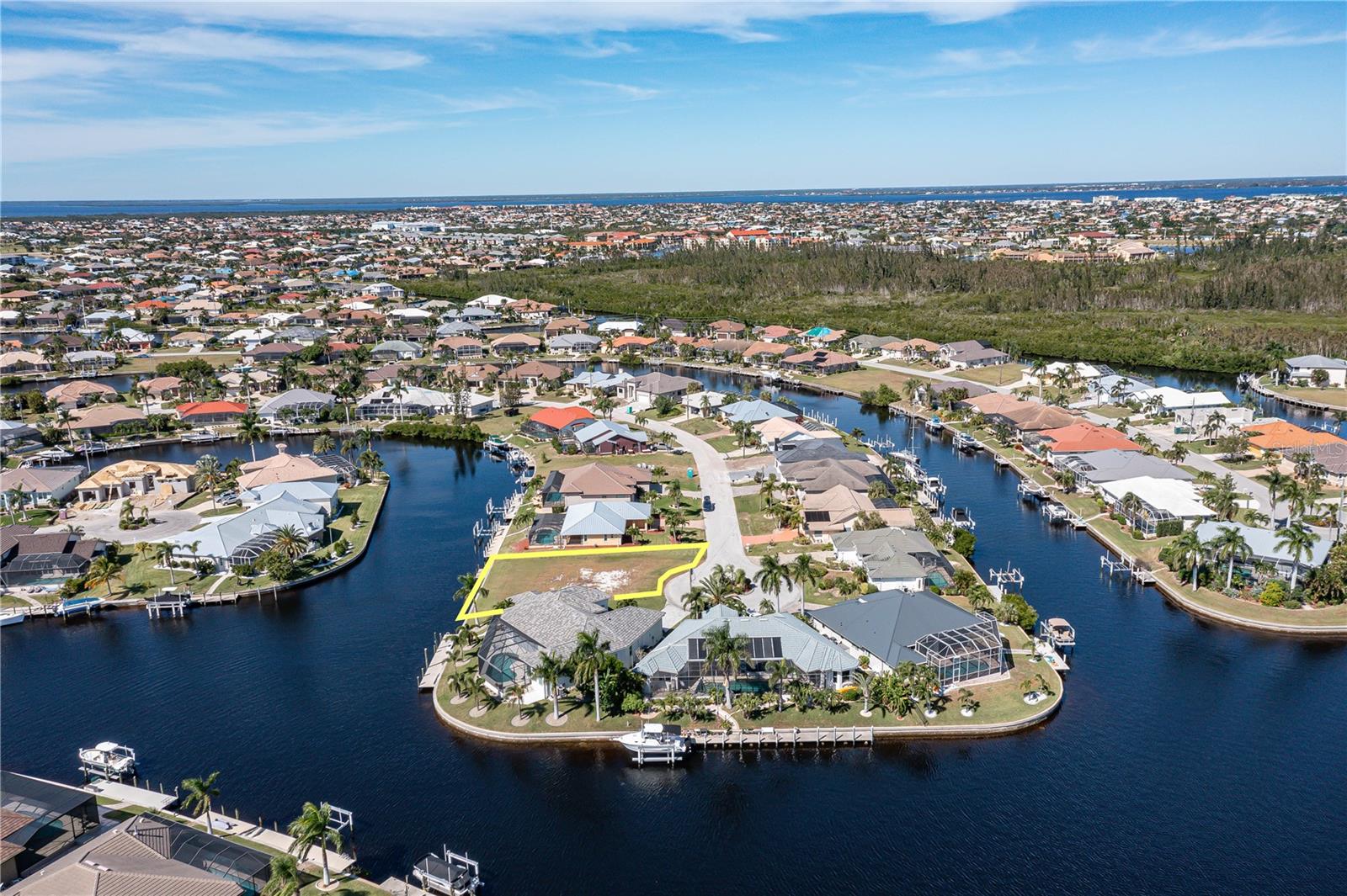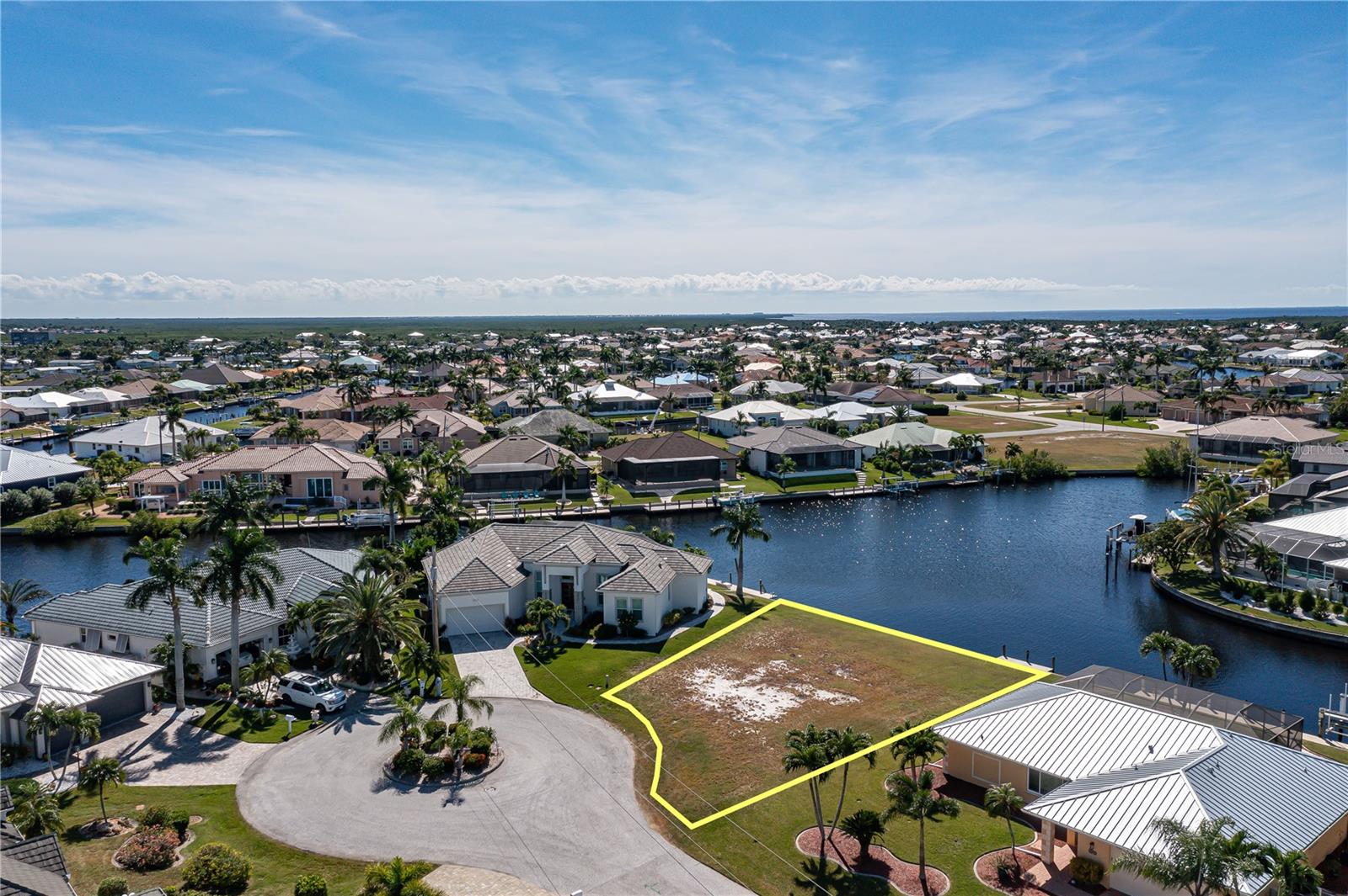 VACANT LOT IN PGI W/105FT OF SEAWALL, SW REAR EXPOSURE & SAILBOAT ACCESS TO CHARLOTTE HARBOR. Located on a quiet cul-de-sac in Punta Gorda Isles surrounded by custom homes, this lot is more than just a piece of land; it’s the first step in crafting the idyllic waterfront lifestyle you’ve always envisioned. Lot has an enviable & unobstructed view of a wide canal basin. Keep your boat docked at your private concrete dock that is already in place along the 105ft of concrete seawall. Property is a blank canvas for realizing your dream of a custom-built, waterfront home. The southwestern rear exposure promises sun-drenched afternoons, an abundance of natural light to flood your future home, and glorious sunsets. Imagine the possibilities of sitting on your lanai, overlooking your pool & the canal basin view beyond while enjoying yet another spectacular sunset framed by your boat and a few perfectly placed palm trees. Lot has city water & sewer available. Claim your spot in paradise. It's time to anchor your dreams & let your life in Florida set sail.