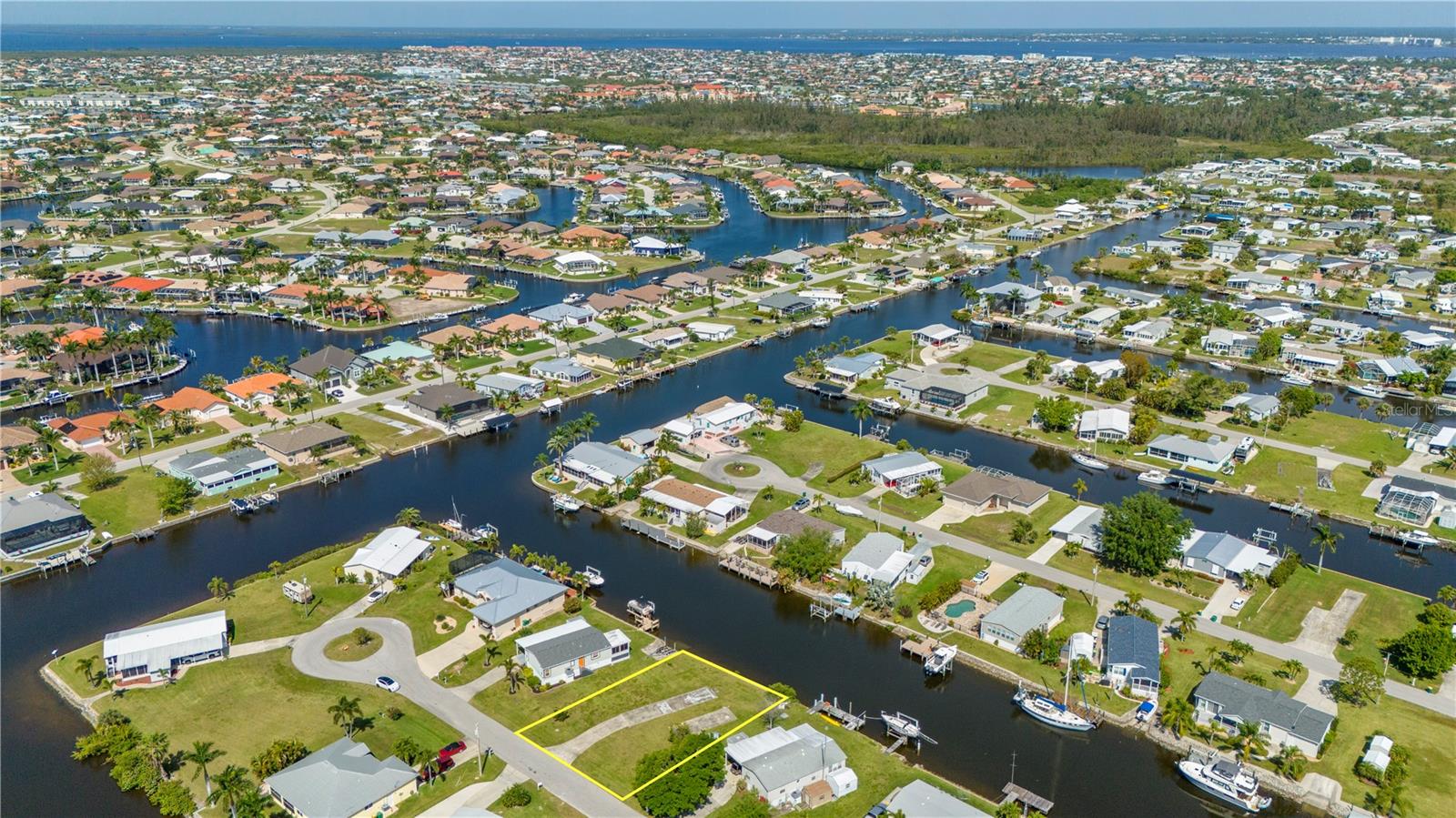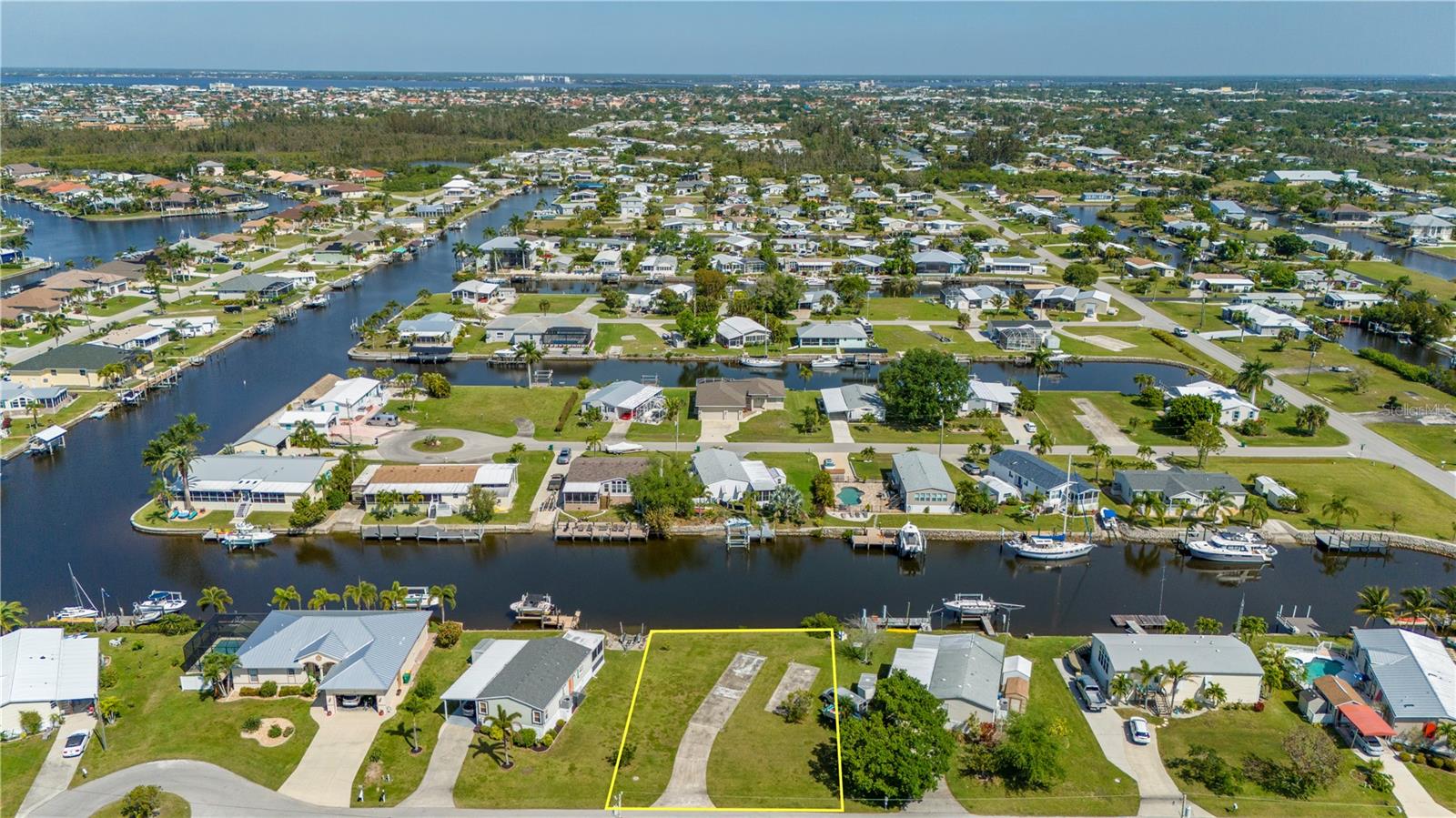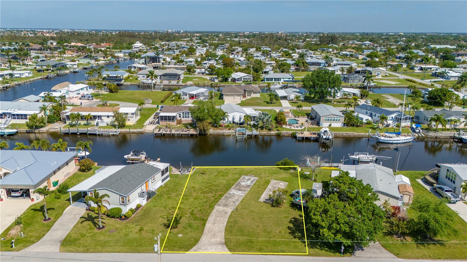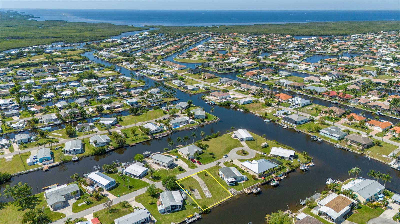 Sailboat access lot with a quick 12 minute ride out to Charlotte Harbor and beyond. With no trees to contend with and a active water meter onsite, you can start to build your dream home very easily(site built, manufactured or modular home zoning). Lot has a rip rap seawall with a concrete cap overlooking a wide canal for nice views and easy docking your yacht. Located on a short cul de sac street just 3 miles from downtown Punta Gorda and all it has to offer. Ride by and see for yourself...